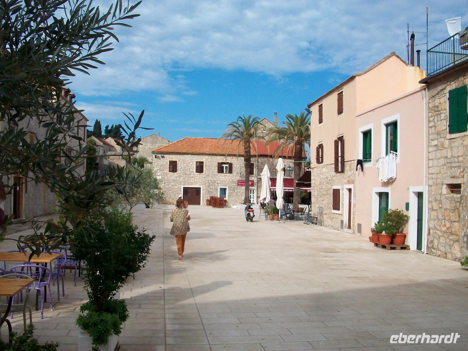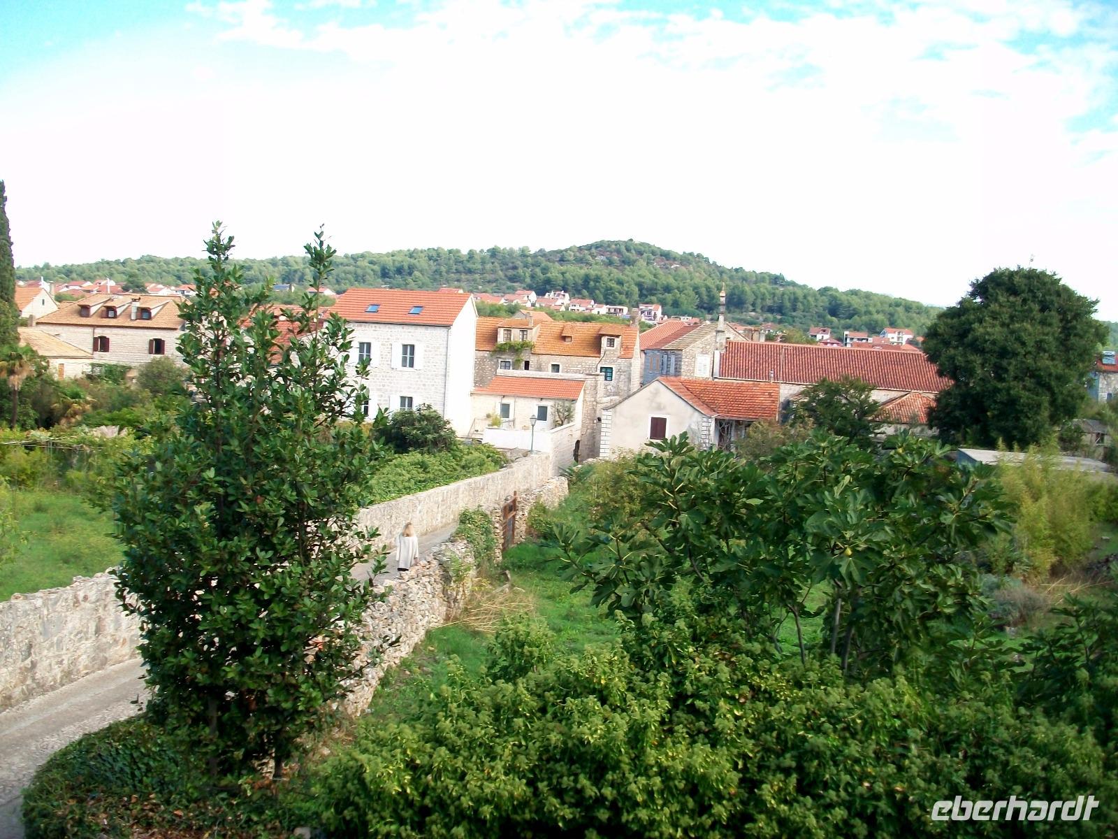 Hier angelangt sehen wir die nächsten knappen zwei Stunden von der schmalen Inselstraße aus das ursprüngliche Leben in den kleinen Dörfern die vom Tourismus verschont blieben. Manch verlassenes Haus zeugt von der Landflucht der Menschen und macht uns nachdenklich, aber bald haben wir das Feld von Starigrad erreicht, eine weite fruchtbare Ebene die seit der Antike ununterbrochen landwirtschaftlich genutzt wurde und mit den uralten, noch aus griechischen Zeiten stammenden Trockenmauern, auf der UNESCO - Liste steht; Weltkulturerbe sozusagen im Vorüberfahren.