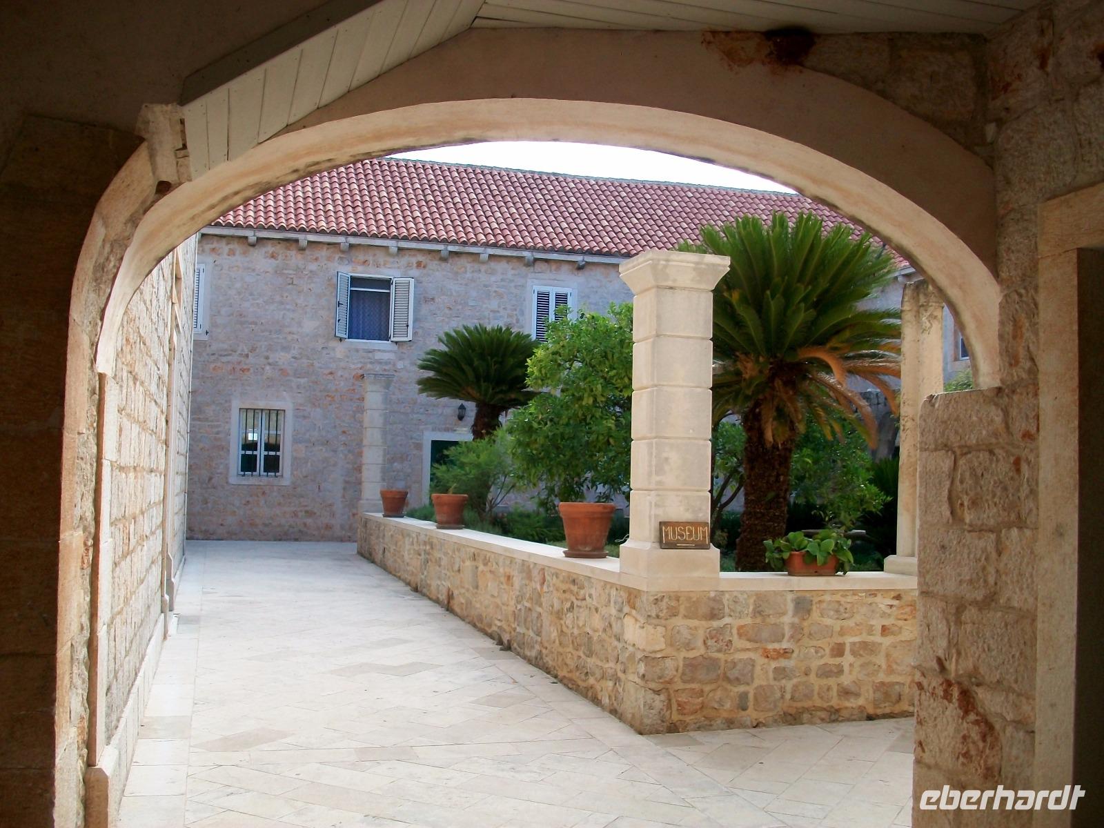 25.9.2017. Unser heutiger Ausflug führt uns ins Nachbarland Montenegro. Wir haben uns viel vorgenommen, also starten wir etwas früher. Zunächst gelangen wir auf die Straße oberhalb von Dubrovnik, von hier haben wir einen wirklich einmaligen Blick auf diese Adriaperle, dann geht es weiter in Richtung Süden. An der Grenze dauert es etwas, aber bald sind wir in Montenegro unterwegs, auch hat Milijan, unser örtlicher Führer, zu uns gefunden. Mit ihm erkunden wir zuerst die weitausladende Bucht von Kotor mit ihren Inseln um dann die geschichtsträchtige Stadt selbst kennen zu lernen. Durch schmale Gassen und vorbei an der Kathedrale gelangen wir zum Schifffahrtsmuseum und tauchen hier tief in die Geschichte des alten Cattaro ein. Noch etwas Freizeit und dann wagen wir den Aufstieg mit dem Bus auf über 1 000 Meter. Das ist nun ein besonderer Genuss; Bucht und Stadt werden kleiner und wir kommen den Wolken näher. Oben im einsamen Gebirgsdorf Njeguši gönnen wir uns eine Mittagspause bei leckeren Schinken, Käse und einem Glas kräftigen Rotwein um dann solchermaßen gestärkt wieder hinab zu fahren. Noch einmal zeigt sich uns das Panorama und erneut zeigt Roy, unser Chauffeur, hier seine große Meisterschaft der Busbeherrschung. Wir halten alle den Atem an wenn ein Auto oder gar ein Bus uns auf dieser engen Straße entgegen kommt, staunen wie souverän Roy diese Schwierigkeiten meistert und uns ohne Probleme durch diese Situationen bringt, fabelhaft!