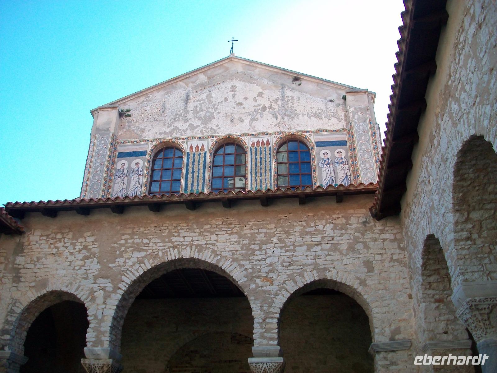 Durch eine schmale Gasse gelangen wir zum absoluten Höhepunkt den Porec zu bieten hat, der Euphrasius - Basilika und dem integrierten Bischofspalast. Nun geht es ganz tief in die Geschichte zurück; als das Christentum noch ganz jung war entstanden die ersten Teile dieses Gotteshauses, in den darauffolgenden Jahrhunderten wurde immer wieder etwas angebaut und so gleicht dieser Besuch auch einer Zeitreise durch viele Epochen, beeindruckend!