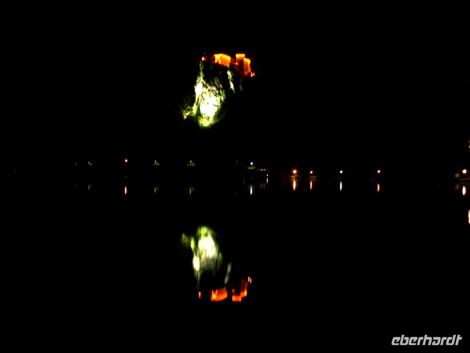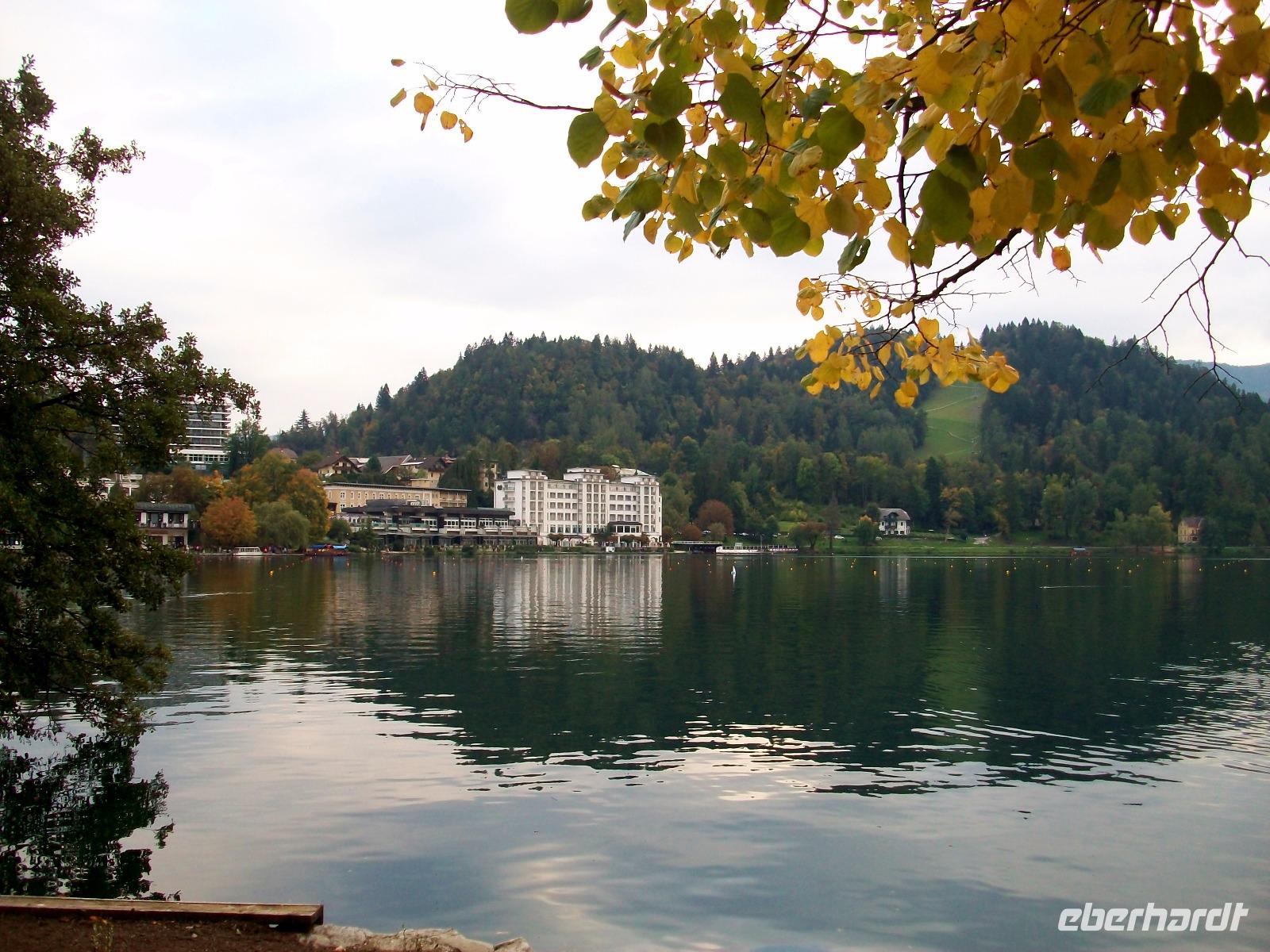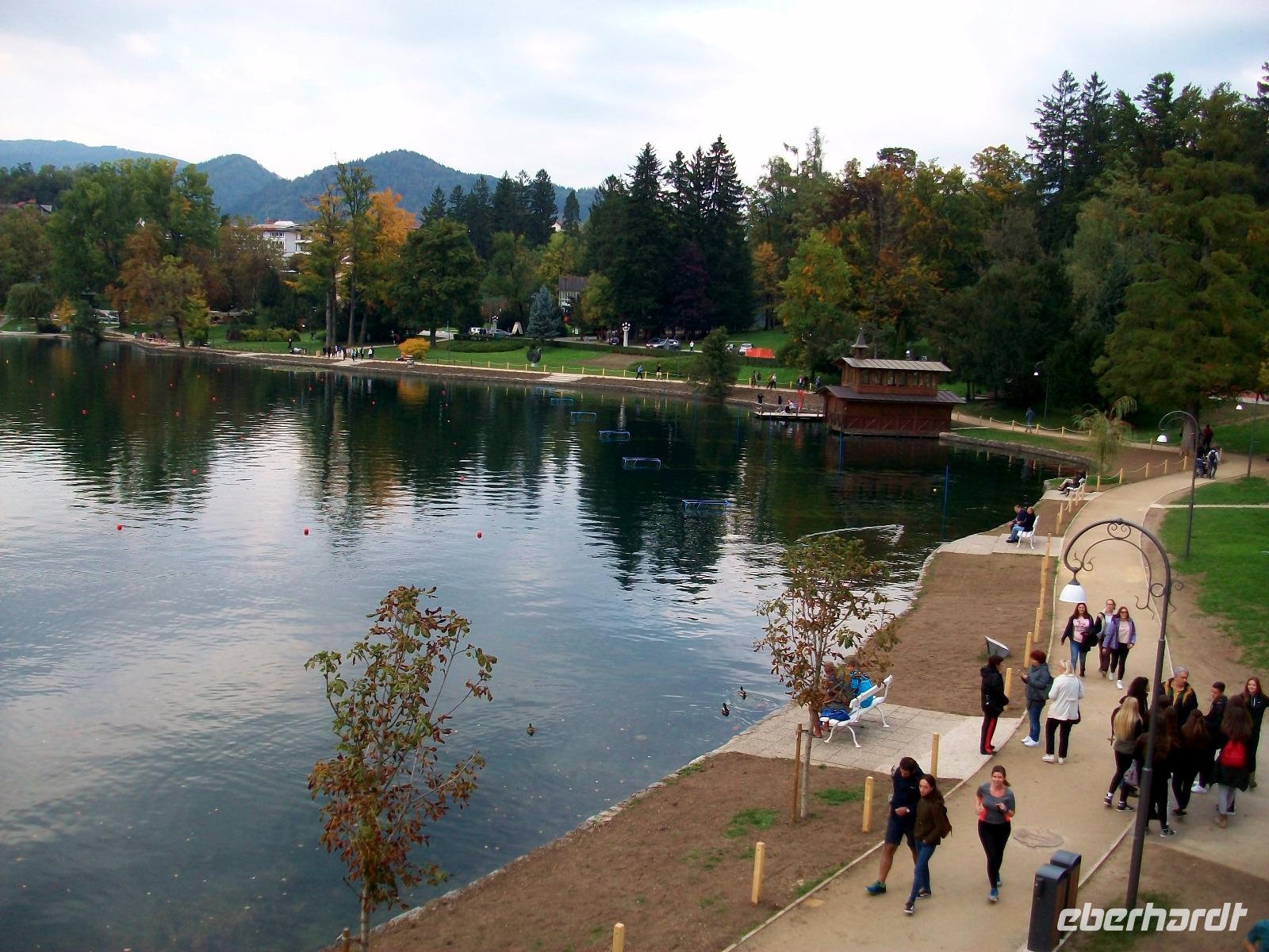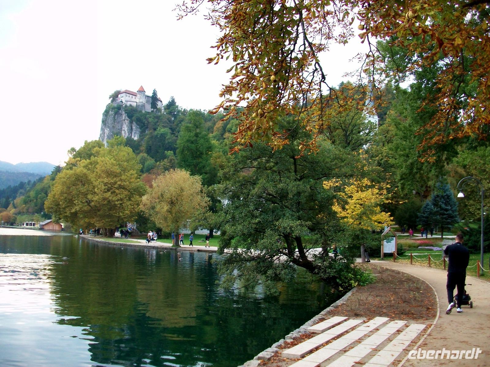 Am Nachmittag jedoch müssen wir nun endgültig Abschied von der Küste nehmen und erreichen bald Slowenien. An Ljubljana vorbei und entlang der Karawanken gelangen wir zu einem letzten reizvollen Ort, Bled. Malerischer kann ein Ort nicht liegen! Umrahmt von einer einzigartigen Bergkulisse, am Rande eines romantischen Sees mit Insel und Kirche, begrüßt uns hier ein Herbstnachmittag mit viel Sonne und einer bunten Laubfärbung. Da wird der Bummel zum Genuss und nach dem Abendessen lohnt noch ein Weg hinunter zum See, denn über allem thront die Burg die magisch angestrahlt, über dem See zu schweben scheint.