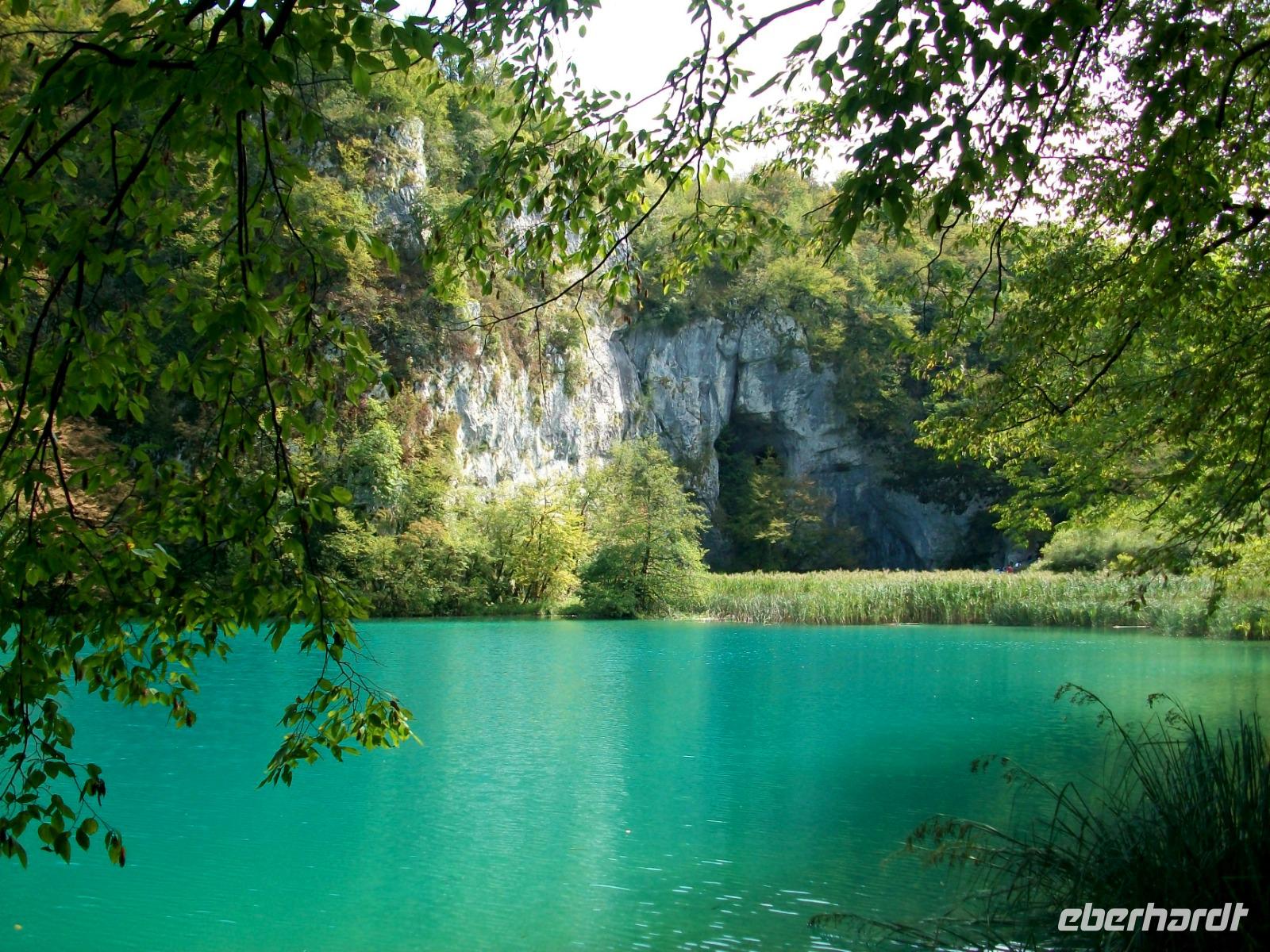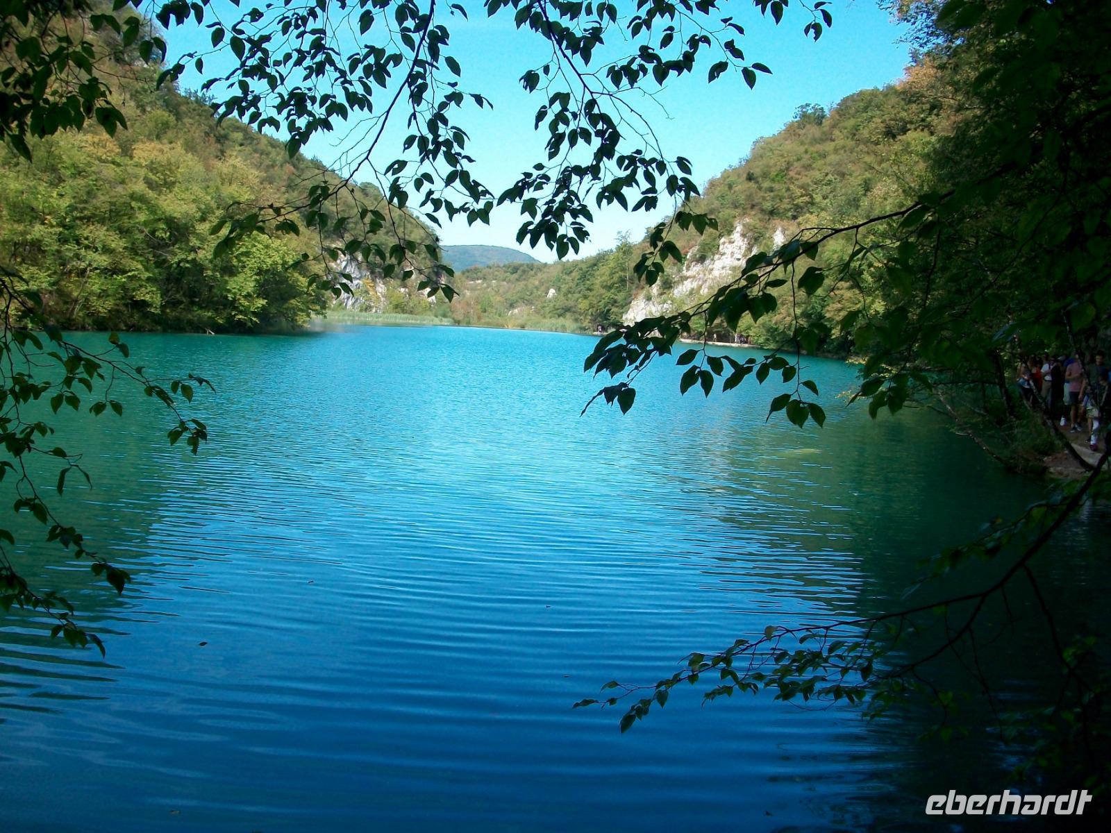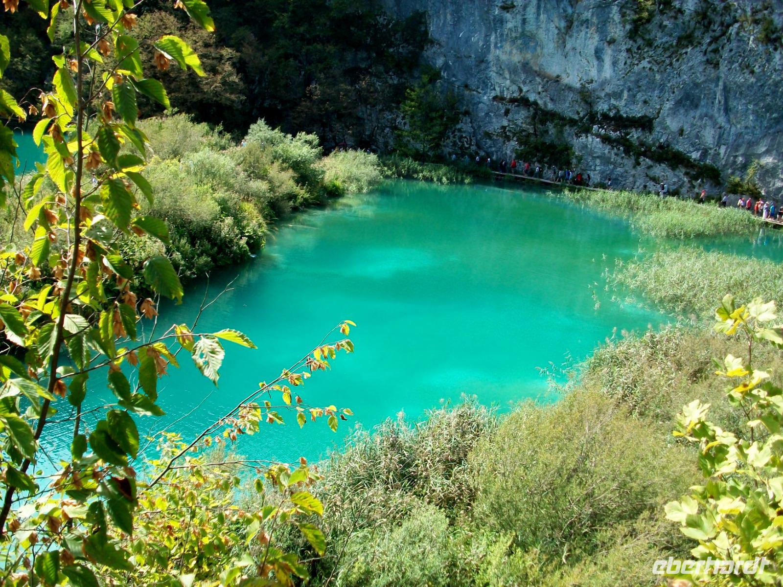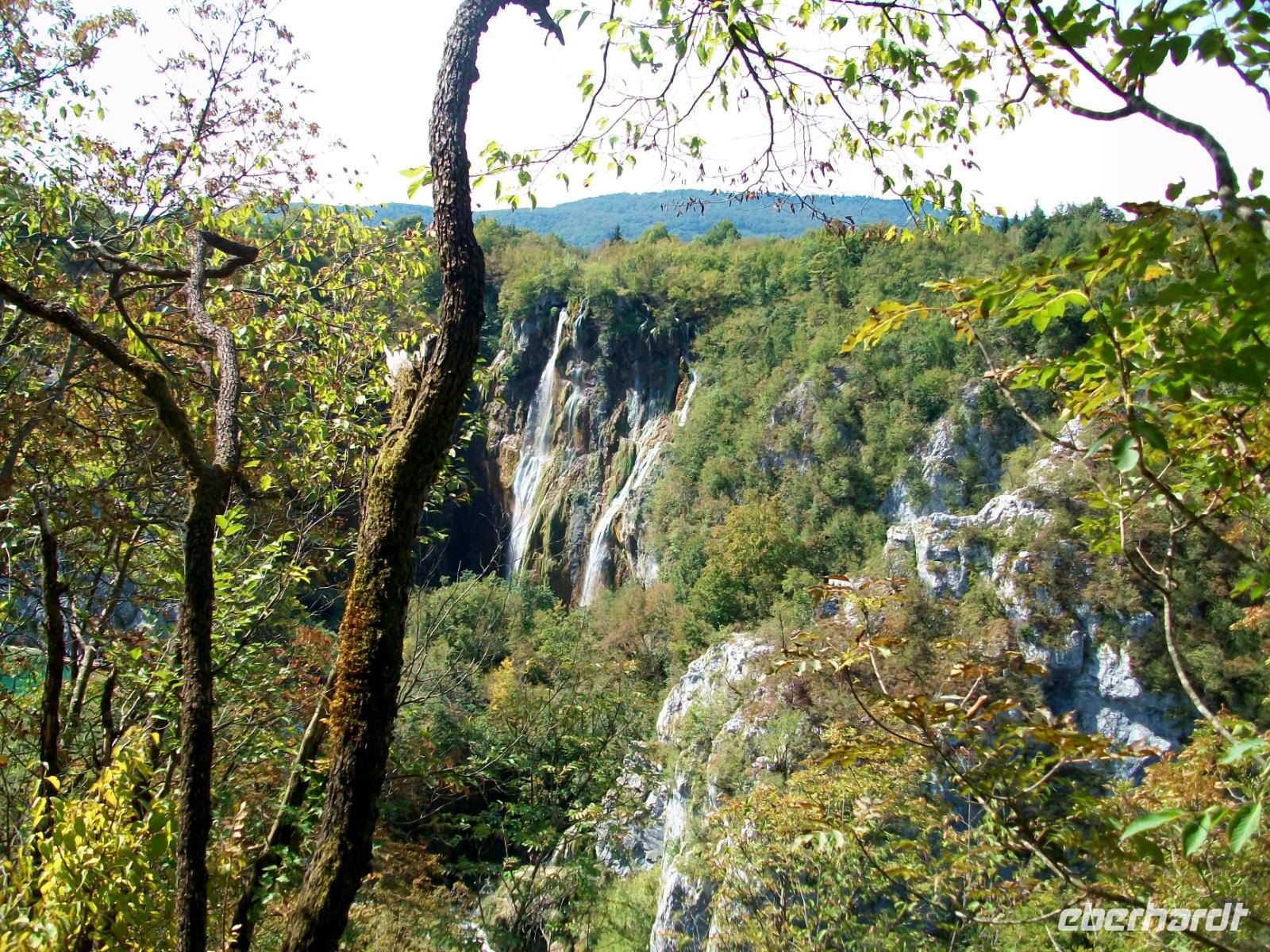 10.9.2018. Nach der quirligen Hauptstadt wollen wir uns an diesem Tag ein schönes Stück Natur anschauen. Mein erster Blick aus dem Fenster zeigt mir dass es auch heute schönes Wetter geben wird und somit starten wir gegen neun mit Vorfreude auf dieses besondere Ereignis. Unser Weg führt uns zunächst über die Autobahn die wir beim Ort Karlovac aber schon wieder verlassen. Dann geht es über Land und vom Bus aus sehen wir die dünnbesiedelte und dennoch faszinierende Gegend. Gegen Mittag treffen wir an unserem Ziel ein; hier gönnen wir uns zunächst einen kleinen Mittagsimbiss und dann geht es hinein in den Park. Schon von oben sehen wir den Großen Wasserfall und wir halten den Atem an welch ein gigantisches Schauspiel sich vor unseren Augen abspielt. Der Weg hinunter führt uns an den Fuß des Falles, auch hier ist er ein Ereignis. Beim Hinuntergehen sahen wir schon die türkisblaue Farbe der Seen, und als wir an den Ufern entlanggehen, erscheint uns diese Farbe fast unwirklich. Auf den verbindenden Knüppeldämmen kommen wir ganz nah an die Kaskaden heran; die Wege führen immer aufwärts bis wir den Koziaksee erreicht haben. Hier legen wir nun ungewollt eine Pause ein denn wir müssen auf das Schiff warten welches uns hinüber zum anderen Ufer bringen wird. Als wir es schließlich betreten können wird die Überfahrt zum Genuss, langsam gleiten die Ufer am Boot vorbei.