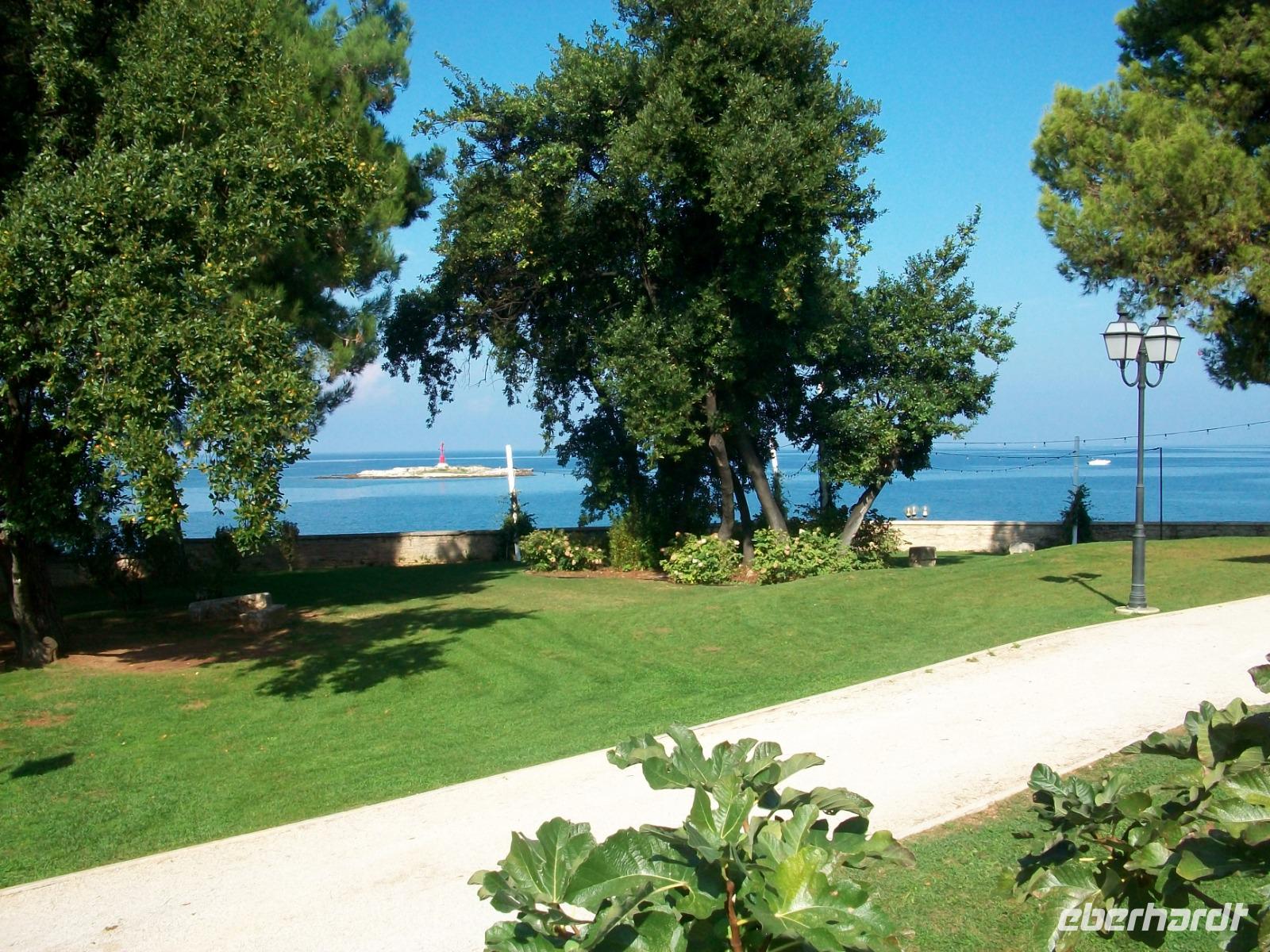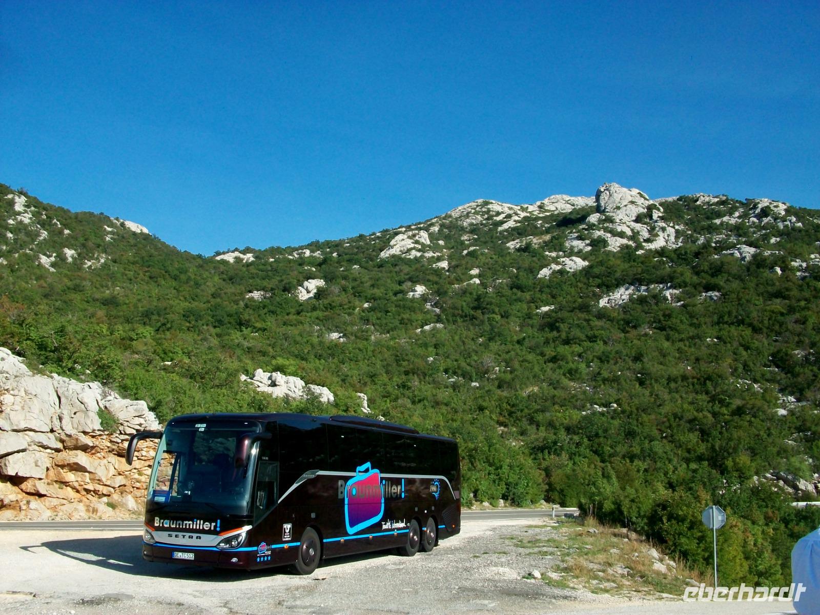 Gegen Mittag geht es weiter; unsere Fahrt führt uns immer entlang der Küste. Viele schöne Perspektiven breiten sich vor unseren Augen aus: das Meer mit den Inseln zur Linken, das gigantische Gebirgsmassiv des Velebits zu unserer Rechten - es gibt immer etwas zu sehen. Bald taucht vor uns das mächtige Ucka Gebirge auf, hier beginnt die Halbinsel Istrien. Wir verschwinden in den Tunnel und als wir wieder auftauchen sind wir schon im Inneren der Halbinsel angelangt. Eine letzte schöne abendliche Impression begleitet uns bei der Fahrt nach Porec zu unserem Hotel wo wir diesen ereignisreichen Tag beschließen.