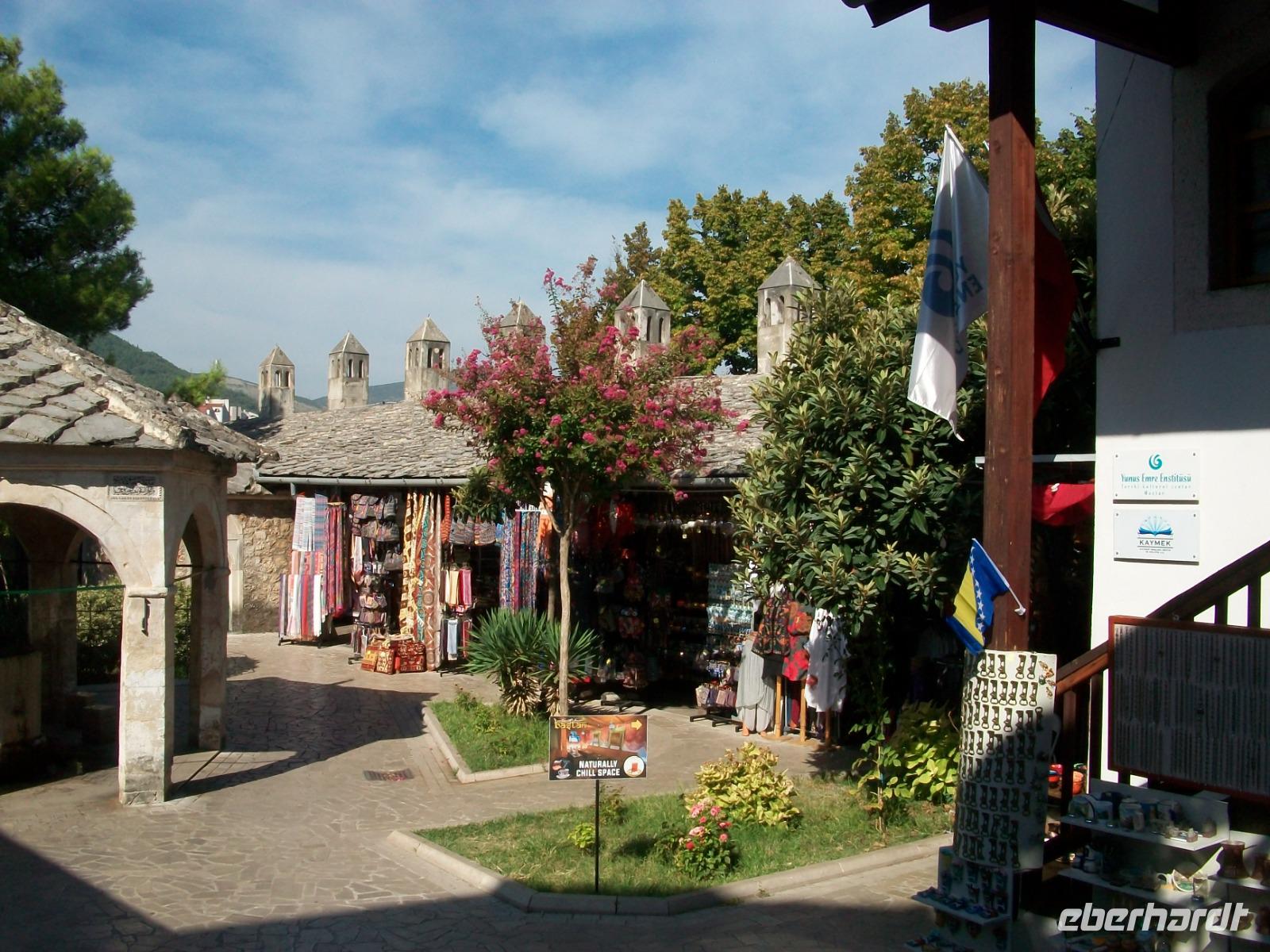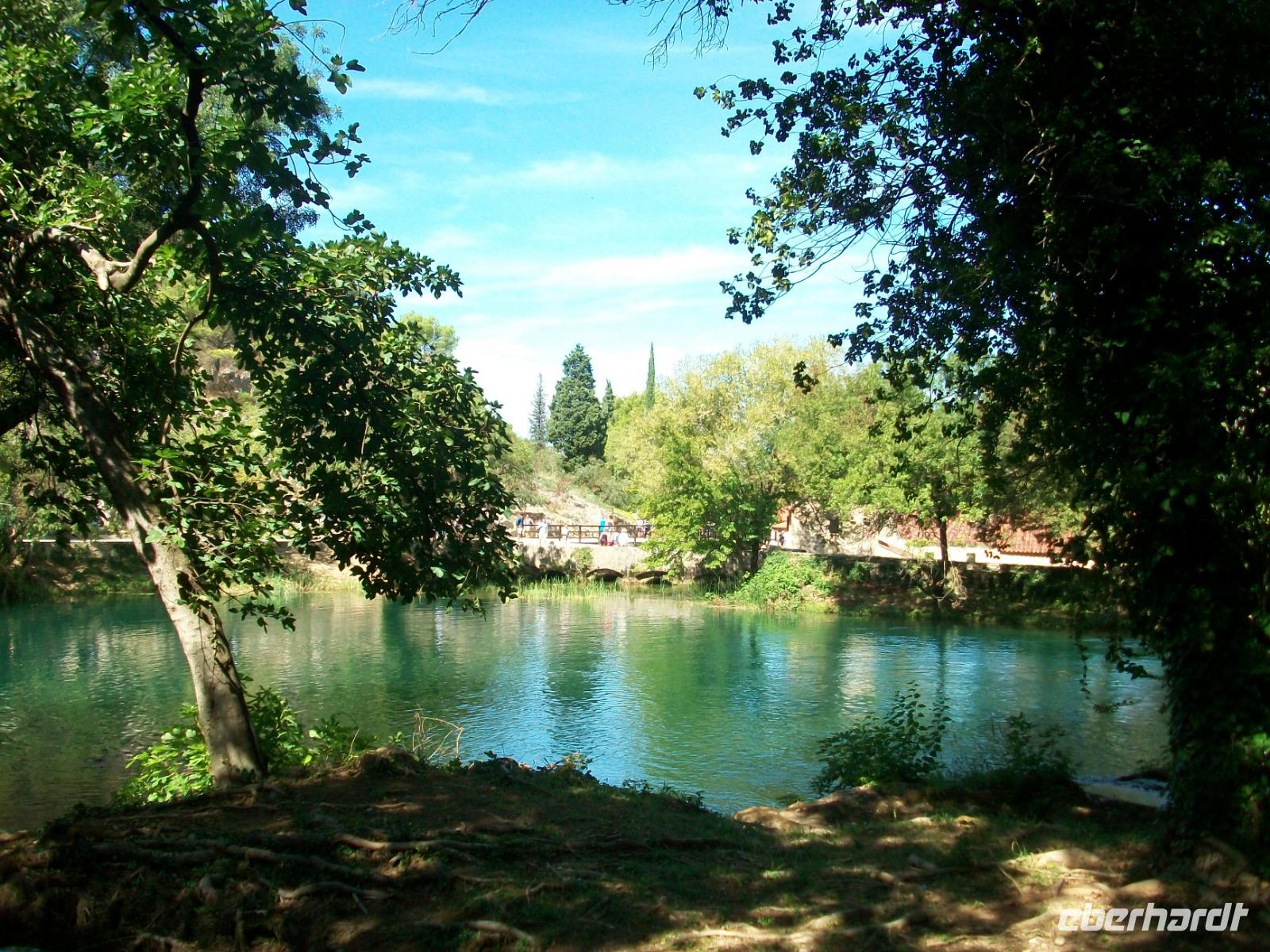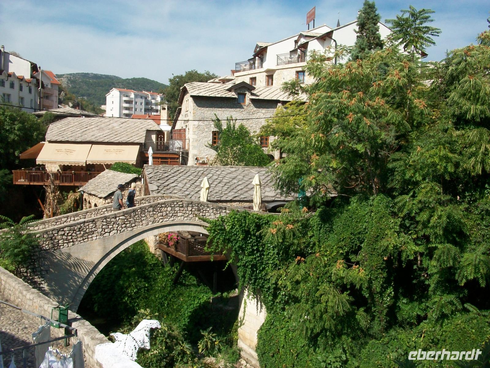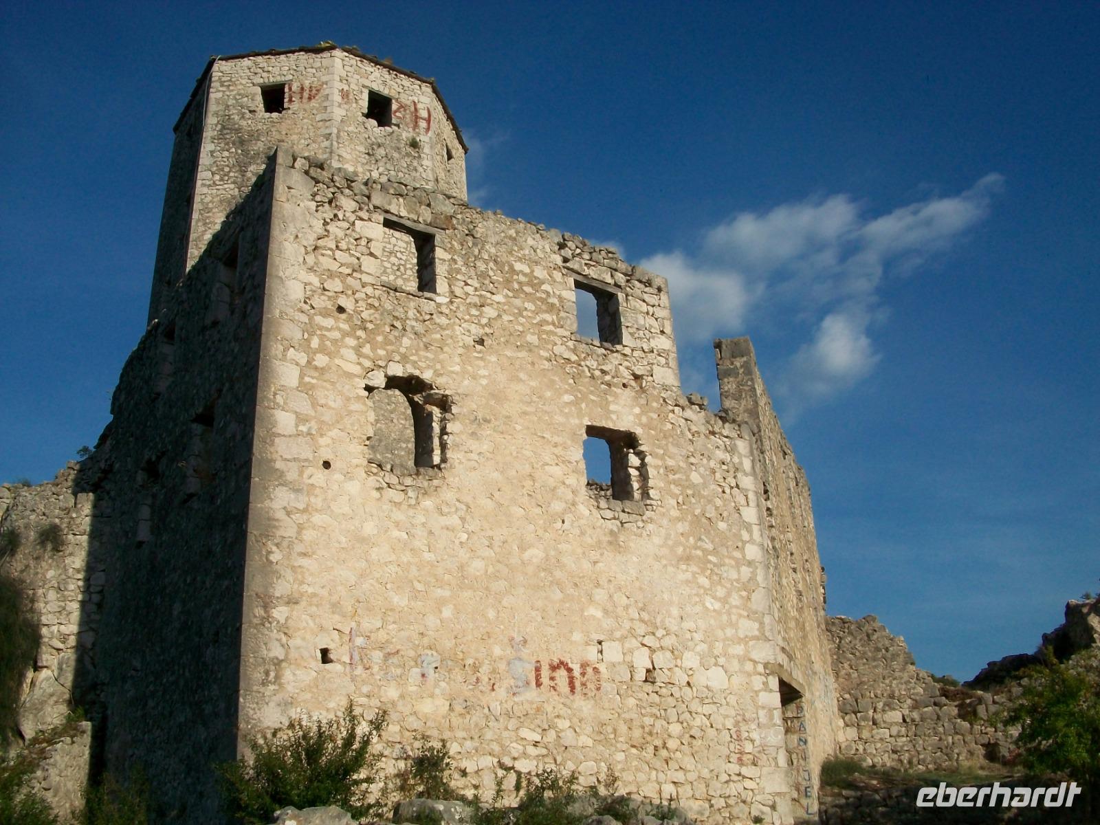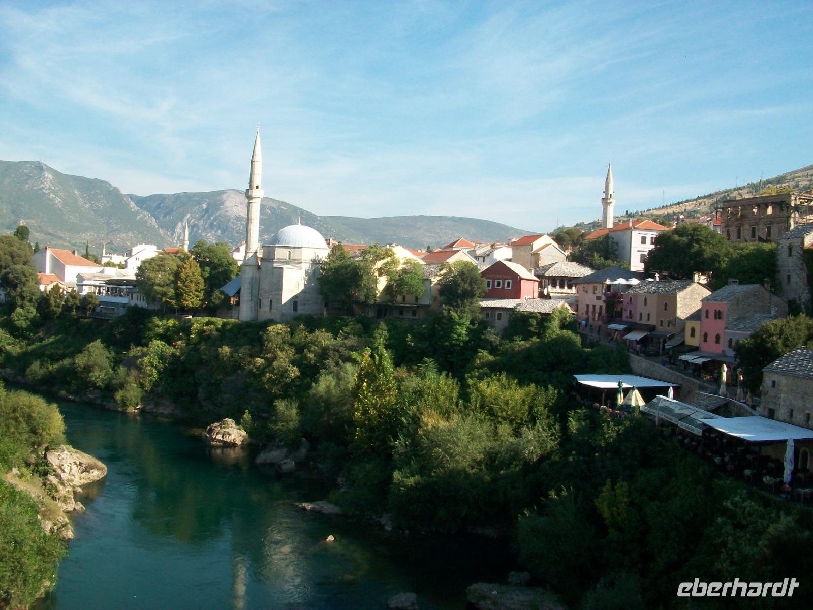 Nach dem Grenzübertritt gelangen wir bald an die Neretva und von Fern sehen wir schon osmanische Architektur auf unserem Weg: es ist der Ort Pocitelj. Die Nachmittagssonne bescheint dabei eine wirklich reizende Szenerie. Beim Spaziergang hinauf zur Festung breitet sich ein wunderschönes Panorama vor unseren Augen aus; tief unten schlängelt sich der Fluss durchs Tal, beiderseits sind die türkischen Häuser zu sehen und in der Mitte thront das spitze Minarett der Moschee. Hier sind wir nun im Morgenland angelangt; die osmanische Herrschaft drückte dieser Gegend ihren Stempel auf und das macht den Besuch der Herzegowina so reizvoll.