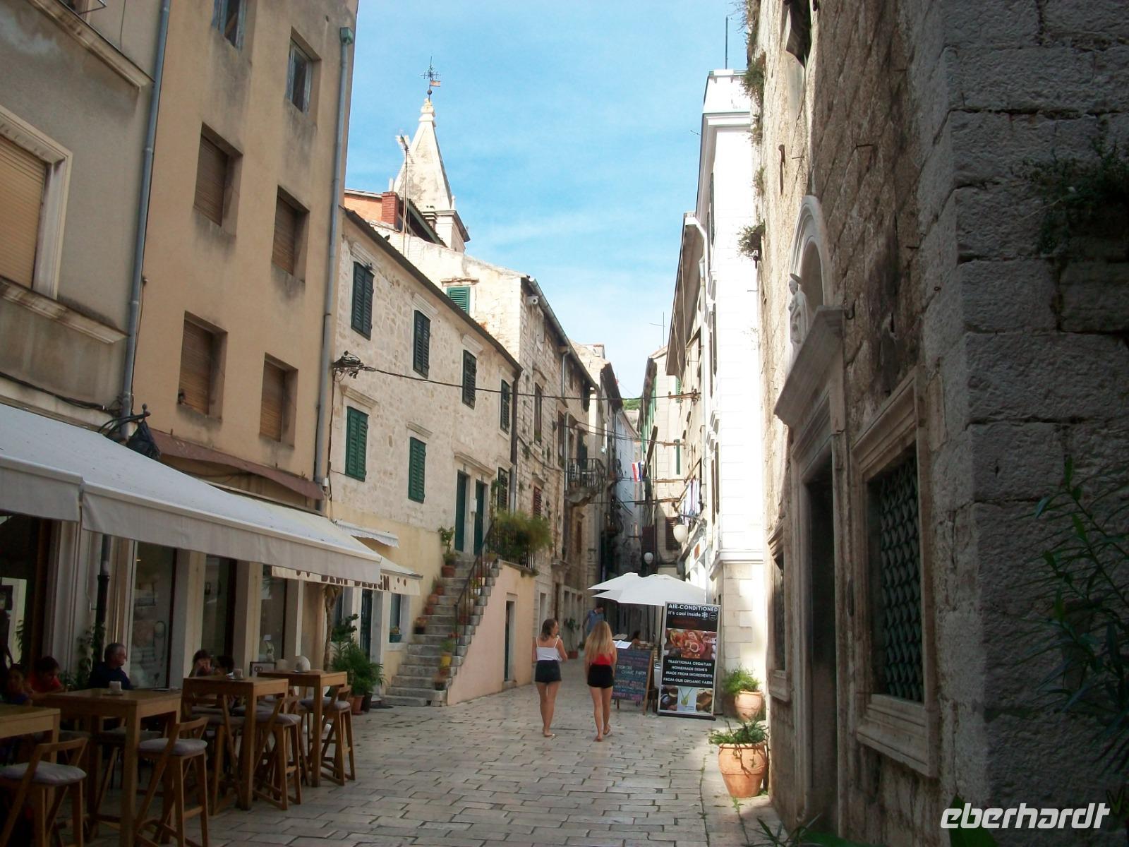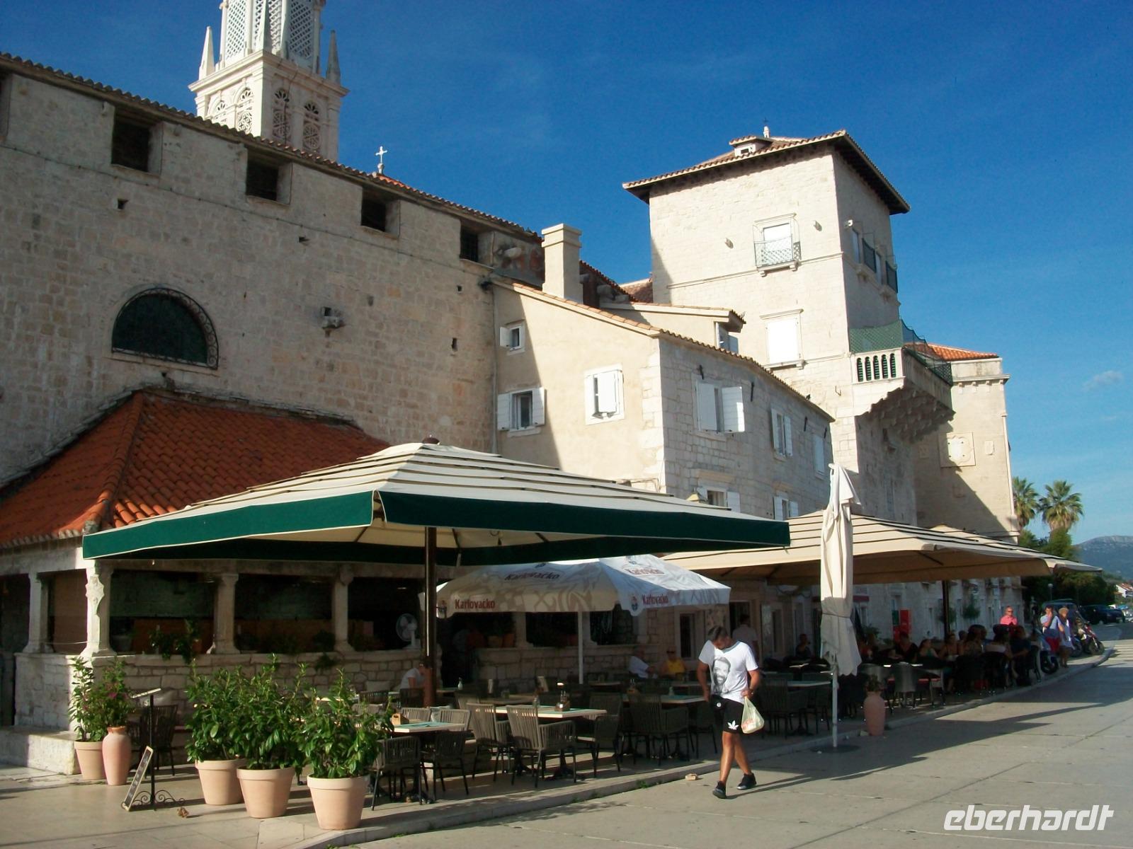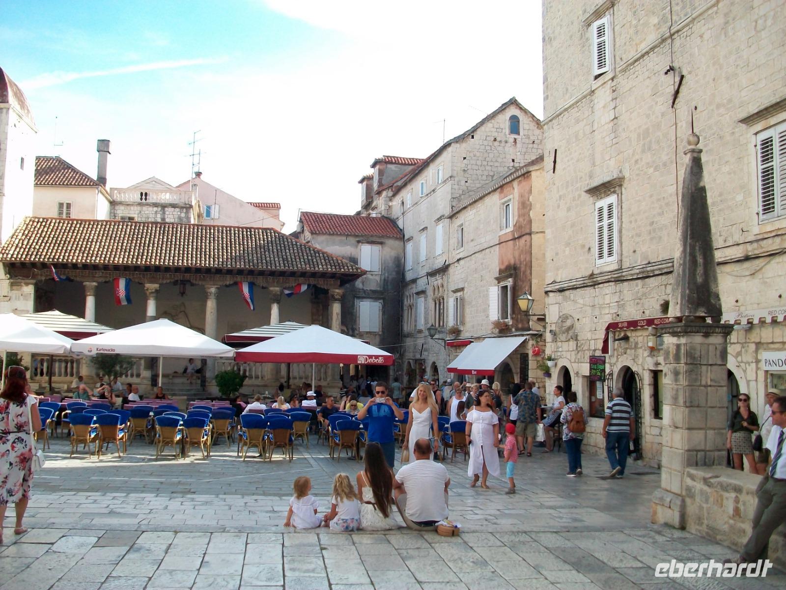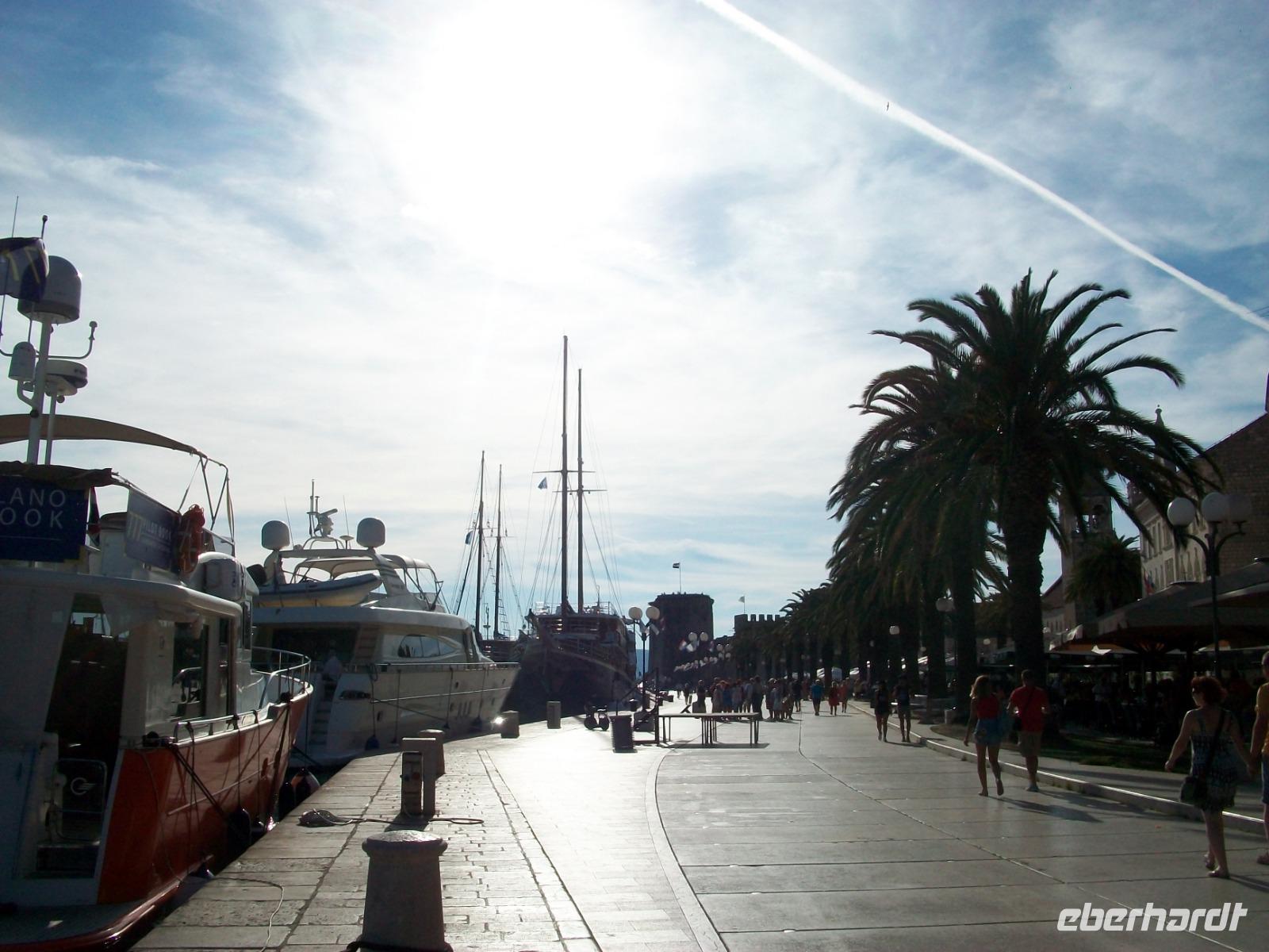 Nach diesem Besuch geht es nun direkt an die Adria. An malerischen Küstenorten vorbei gelangen wir nach Trogir. Hier scheint die Zeit stehengeblieben zu sein; die Venezianer hinterließen uns schmale Gassen, belebte Plätze und eine wunderschöne Promenade. Mit Marica gehen wir hier auf Erkundung, wir staunen über die uralte Architektur und wähnen uns im Mittelalter bei dem Rundgang den wir unternehmen.