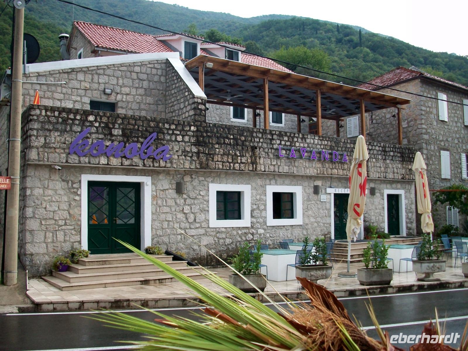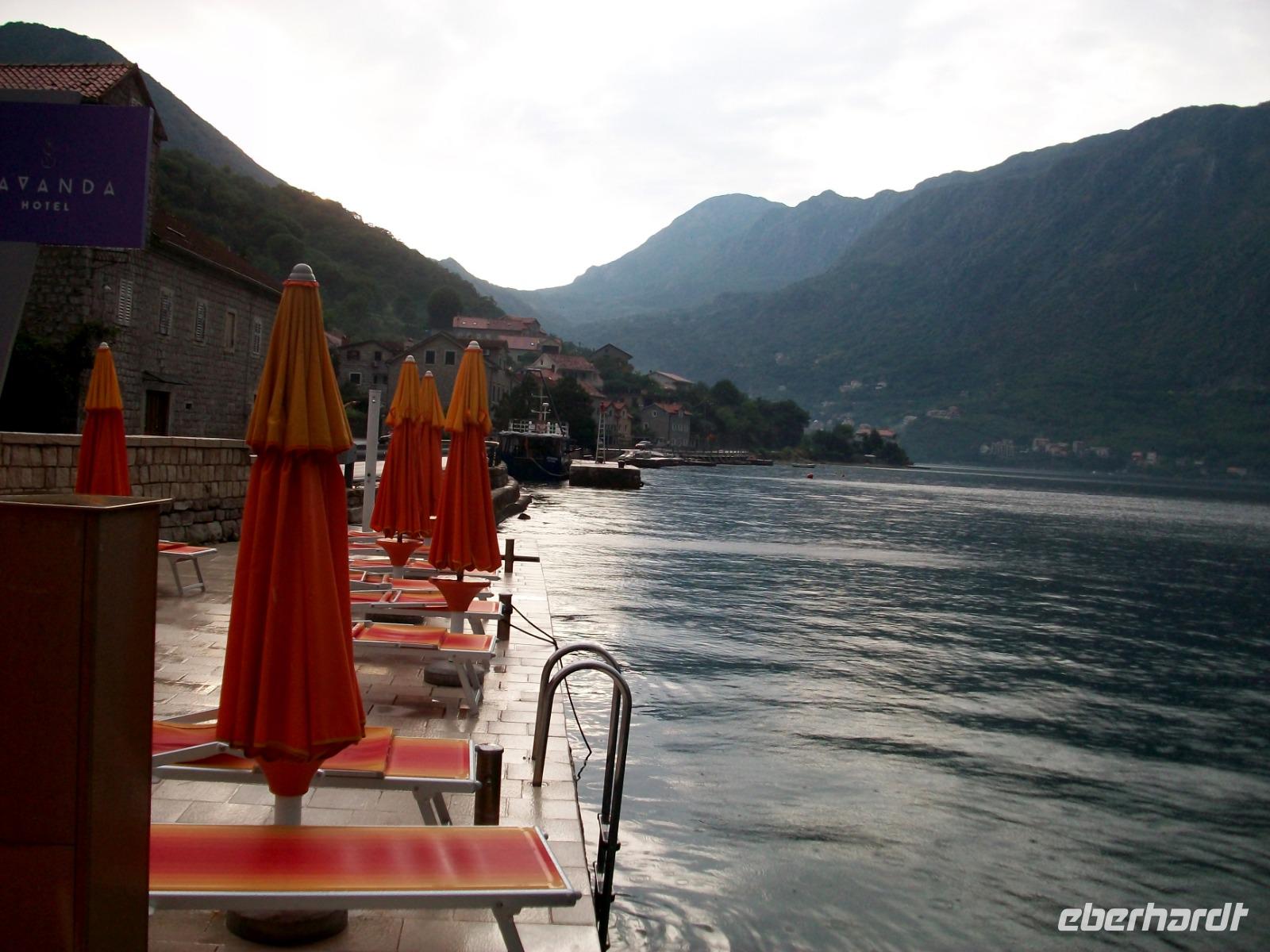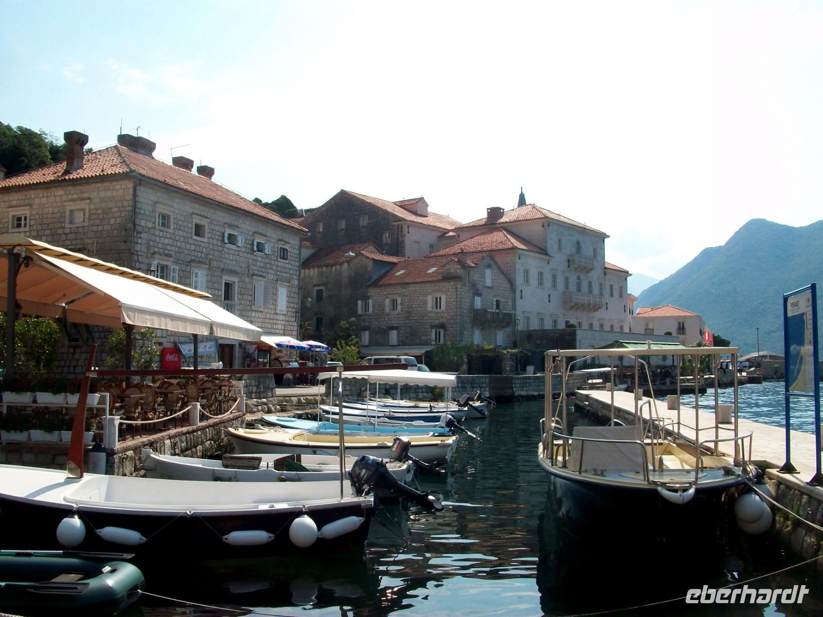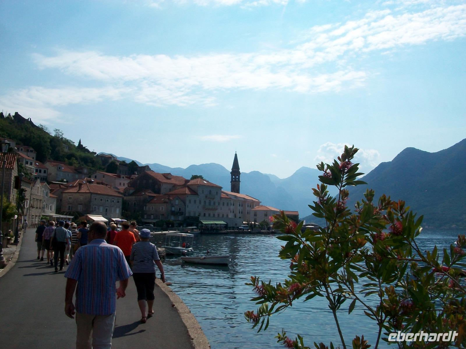 An Tivat vorbei gelangen wir am Nachmittag nach Budva. Auch hier erwartet uns noch einmal viel Historie und beim kleinen Rundgang sehen wir all die schöne mittelalterliche Architektur dieser Stadt. Dann fahren wir nach Lepetane zur schmalsten Stelle der Bucht; eine Autofähre bringt uns hinüber zur anderen Seite und in einem urigen Restaurant erwartet uns eine kleine Stärkung: würziger Njeguši - Schinken, Käse und leckeres selbstgebackenes Brot.