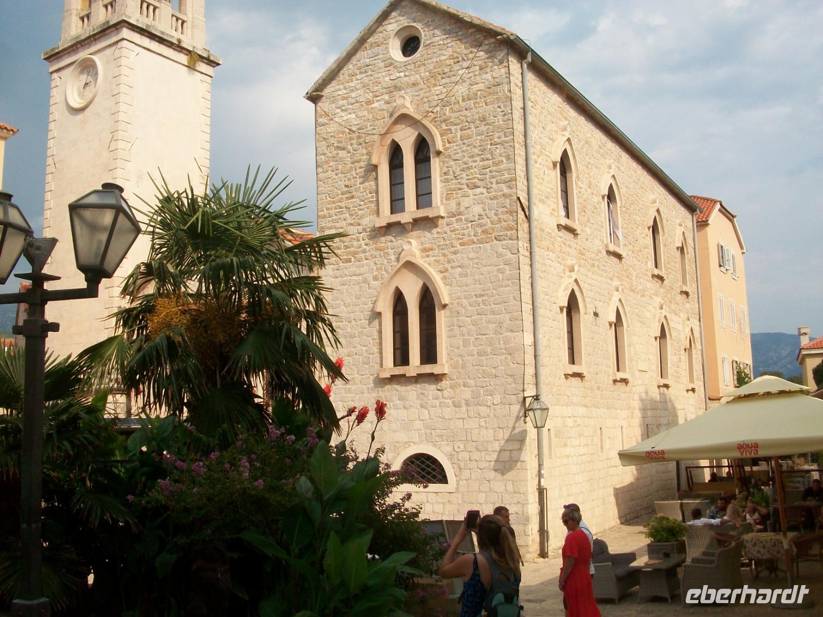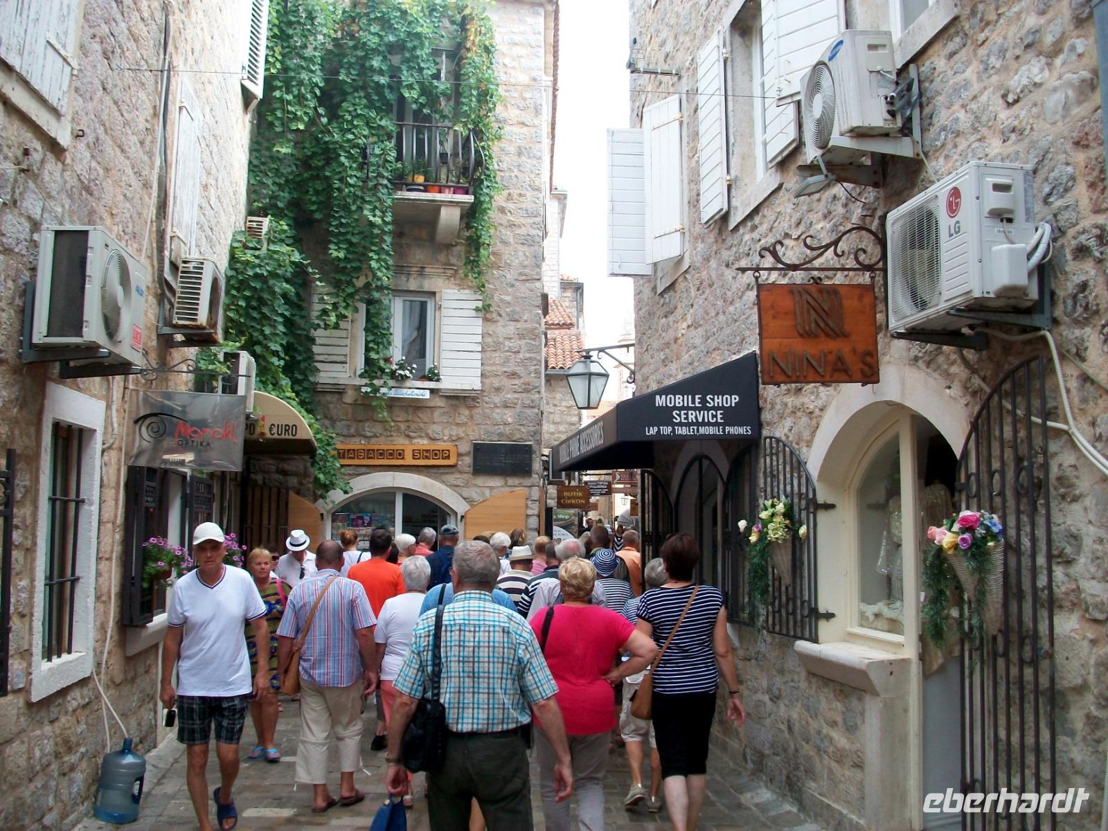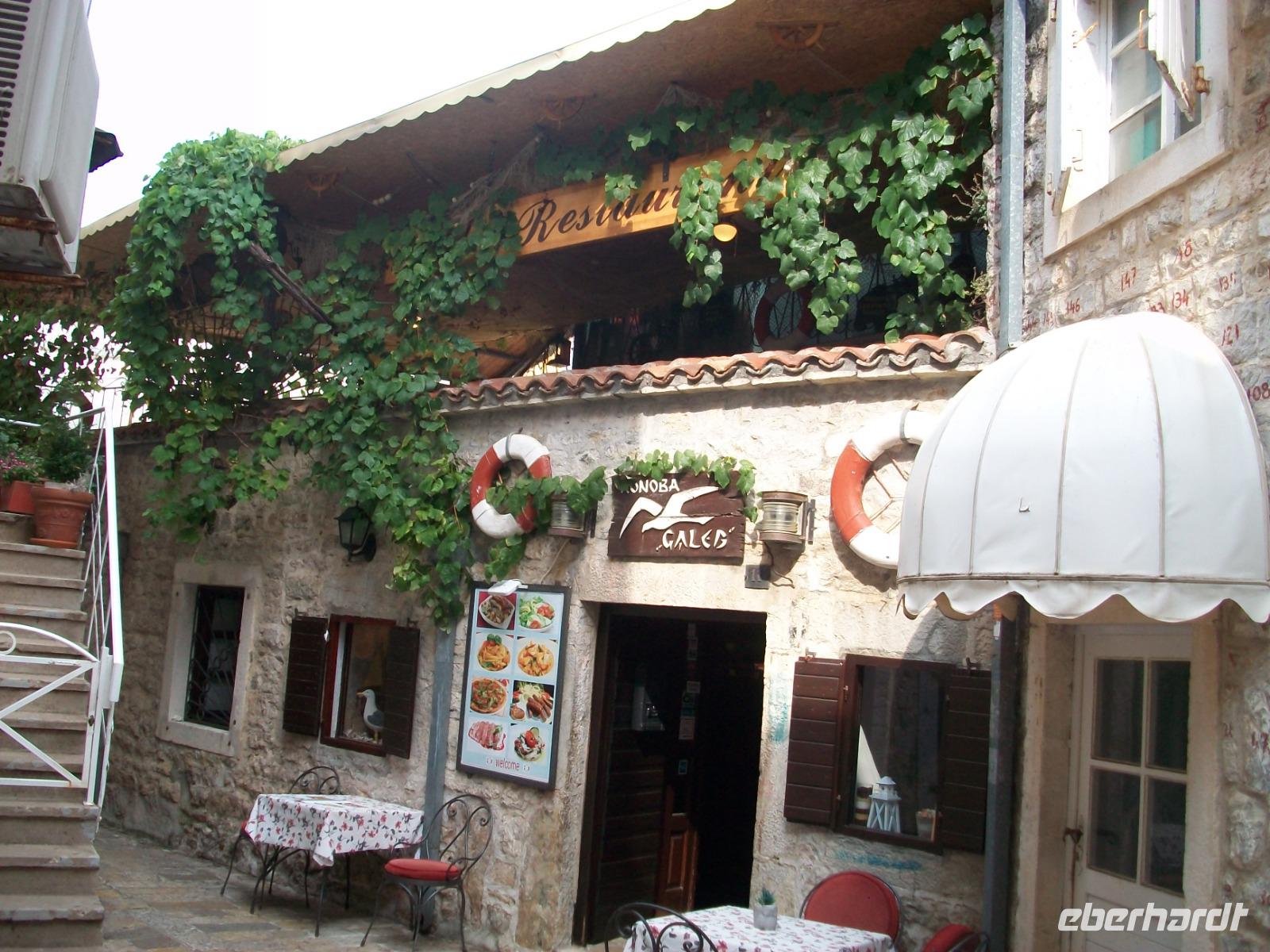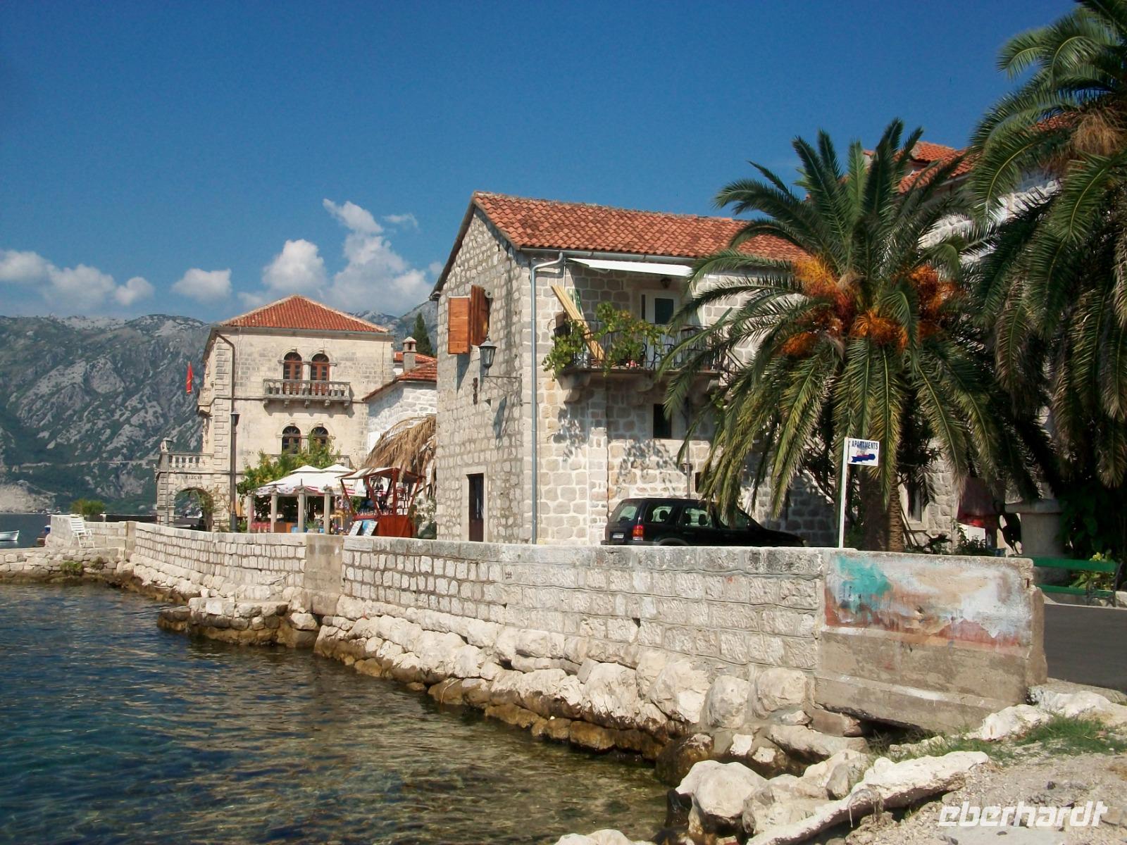 An Tivat vorbei gelangen wir am Nachmittag nach Budva. Auch hier erwartet uns noch einmal viel Historie und beim kleinen Rundgang sehen wir all die schöne mittelalterliche Architektur dieser Stadt. Dann fahren wir nach Lepetane zur schmalsten Stelle der Bucht; eine Autofähre bringt uns hinüber zur anderen Seite und in einem urigen Restaurant erwartet uns eine kleine Stärkung: würziger Njeguši - Schinken, Käse und leckeres selbstgebackenes Brot.
