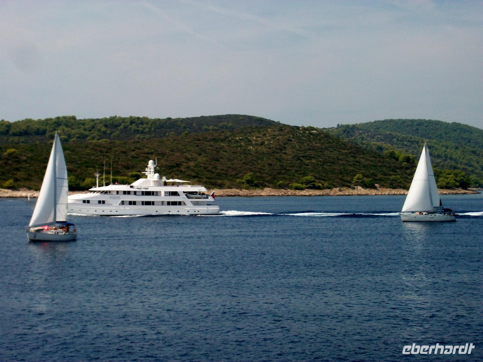 Direkt an der Promenade befindet sich unser Hotel; hier haben auch zahlreiche Jachten festgemacht, denn Hvar ist auch ein Ort der „Reichen und Schönen".