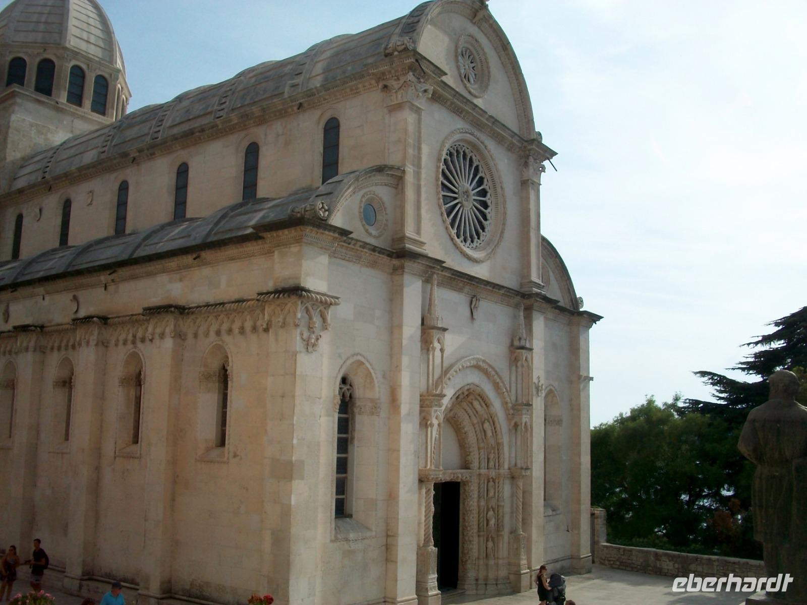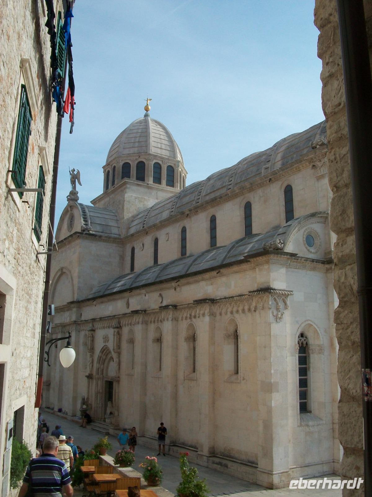 Nach dem Besuch spazieren wir gemeinsam entlang der schönen Promenade zum Anleger der Fähre. Das Schiff hat auch schon angelegt und wir müssen auch gar nicht lange warten um an Bord gehen zu können. Nun steht uns noch eine gemütliche Seereise bevor; vom Sonnendeck aus genießen wir die Überfahrt mit allen Zügen. Nach zwei Stunden ruhiger Fahrt legen wir schließlich in Split an. Nun heißt es erst einmal das Gewühl der Hafenstadt hinter uns zu lassen; der Weg führt hinauf in die Berge und zur Autobahn die uns einem weiteren Höhepunkt entgegen bringt: Šibenik. Auch hier werden wir schon erwartet; Robert heißt unser Guide und er wird uns nun diesen Ort zeigen. Die schmalen Gassen, die schönen Plätze und die zahlreiche Kirchen - fast schon ein gewohntes Bild, aber dennoch immer wieder reizvoll. Die Führung endet an der Hauptattraktion der Stadt, der Jakobskathedrale. Einmalig der Stilmix von Gotik und Renaissance, wunderschön die Fassade mit dem Fries aus Köpfen, sehenswert die Proportion des Baus - einfach ein Meisterwerk das mit Recht auf der Liste der UNESCO steht. Nach dem Besuch führt uns der Weg nach Zadar zum Hotel wo wir auch diesen schönen Tag beschließen.