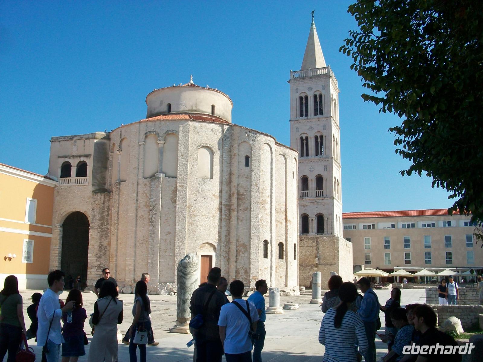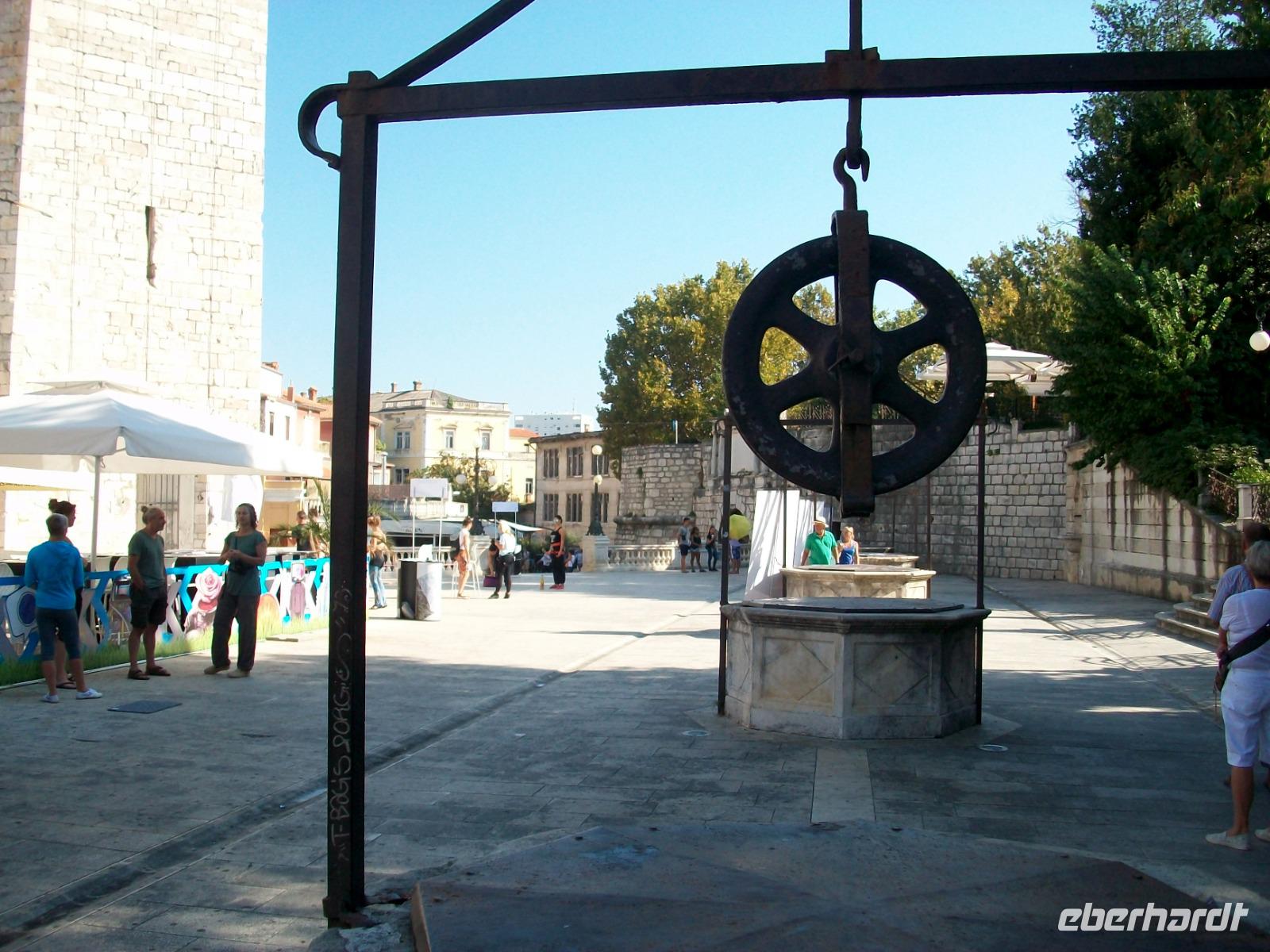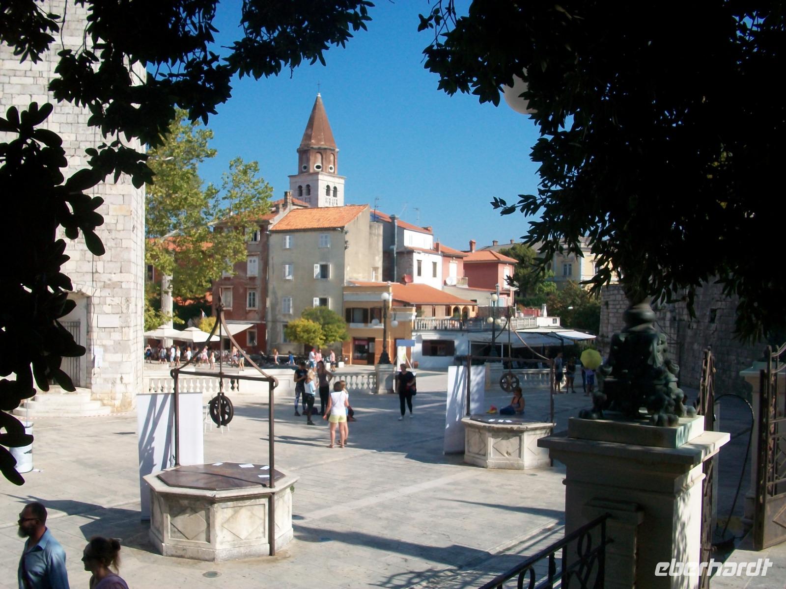 Dann bummeln wir ganz gemütlich entlang der schönen Promenade, sehen die Rotunde der Donatskirche, den Turm der Kathedrale und gelangen schließlich zum Platz der Fünf Brunnen. Meri weiß so manch interessante Geschichte zu erzählen; am Hauptplatz endet schließlich die Führung und wir genießen noch etwas Freizeit in Zadar.