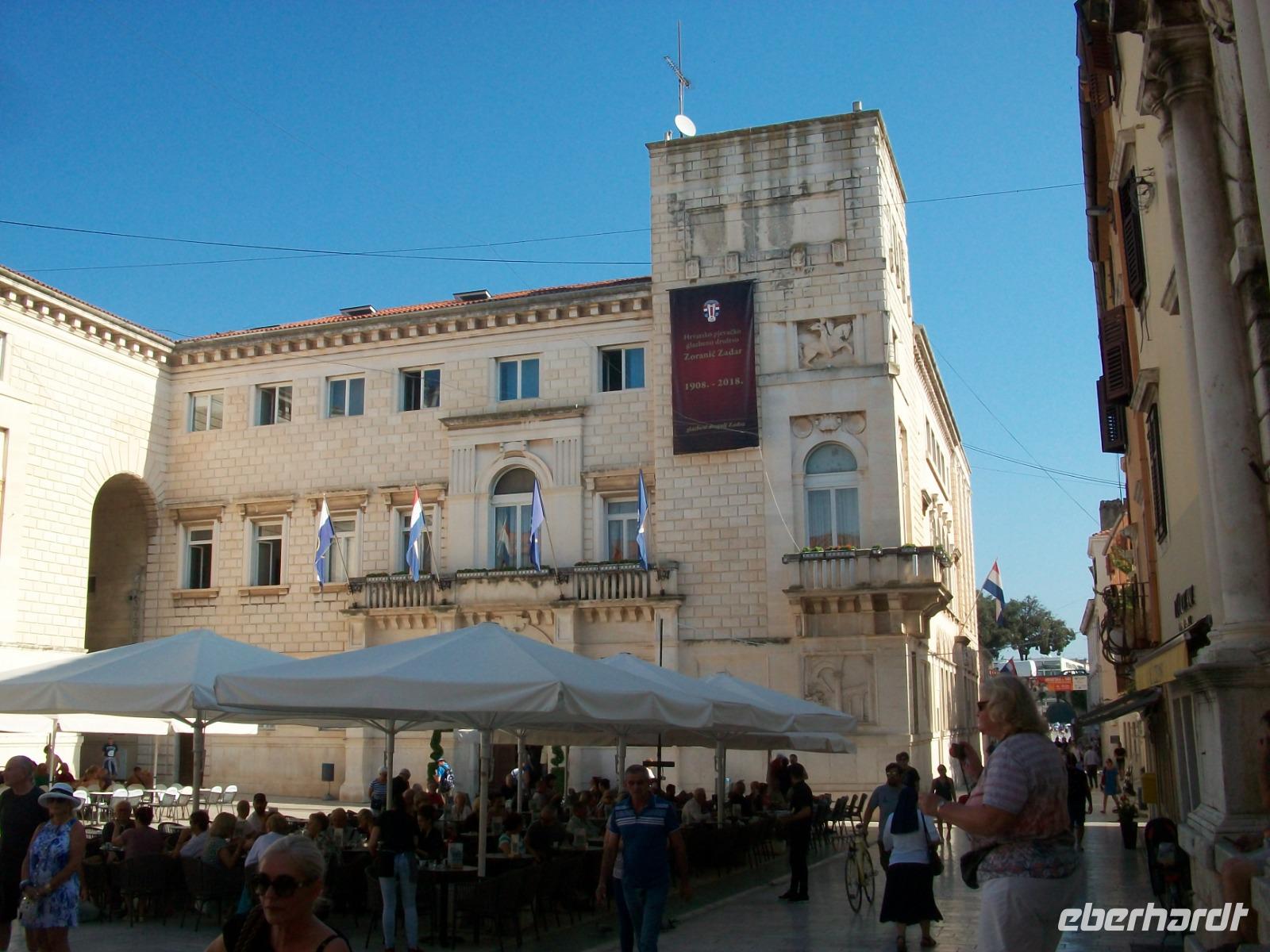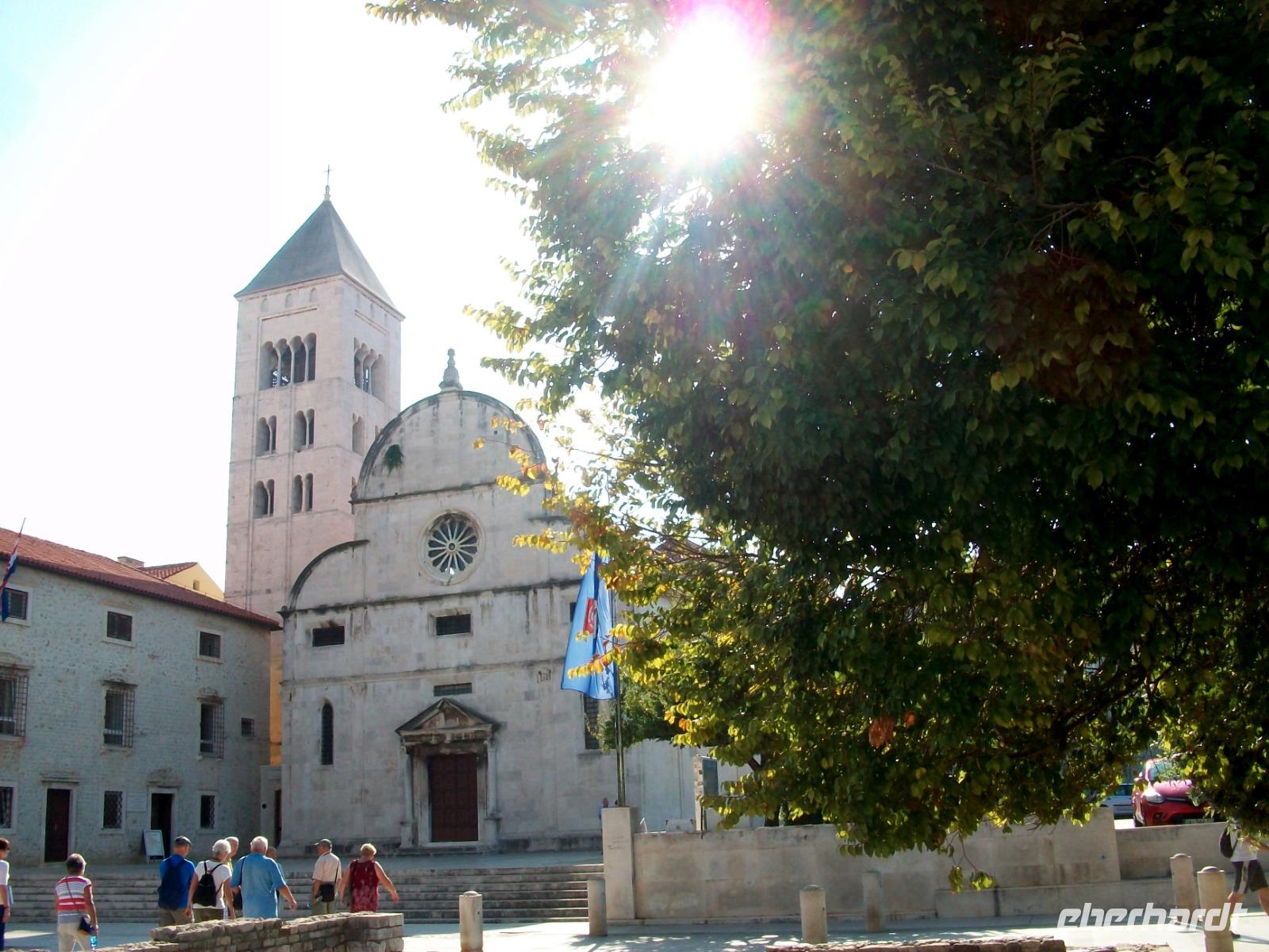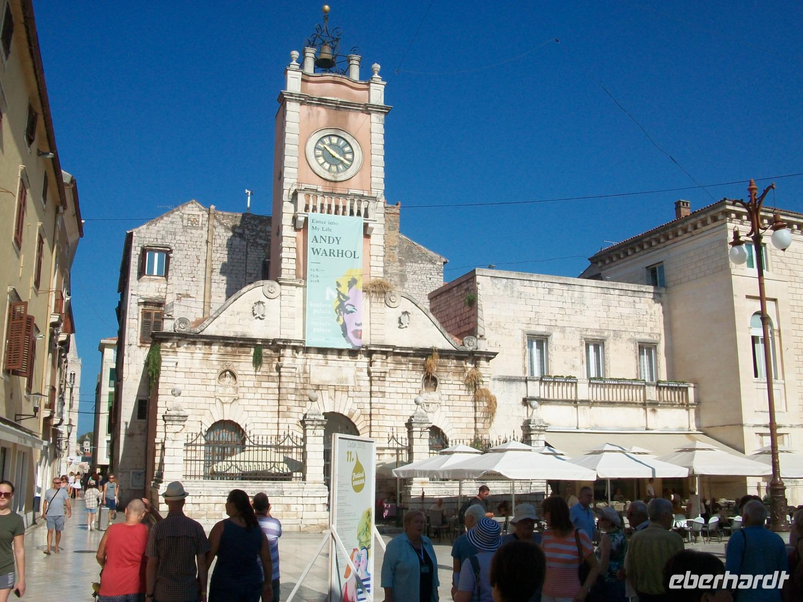 Dann bummeln wir ganz gemütlich entlang der schönen Promenade, sehen die Rotunde der Donatskirche, den Turm der Kathedrale und gelangen schließlich zum Platz der Fünf Brunnen. Meri weiß so manch interessante Geschichte zu erzählen; am Hauptplatz endet schließlich die Führung und wir genießen noch etwas Freizeit in Zadar.