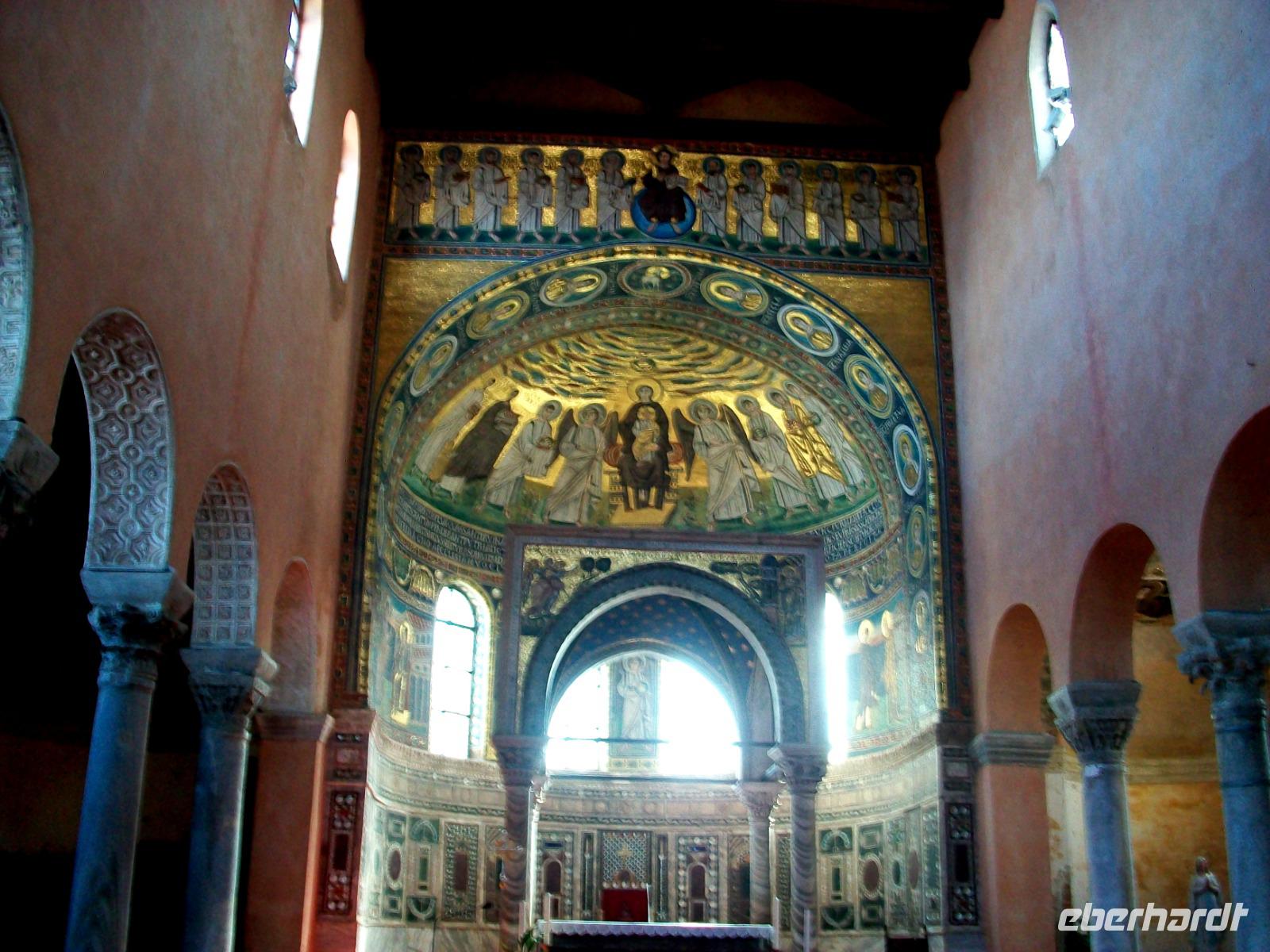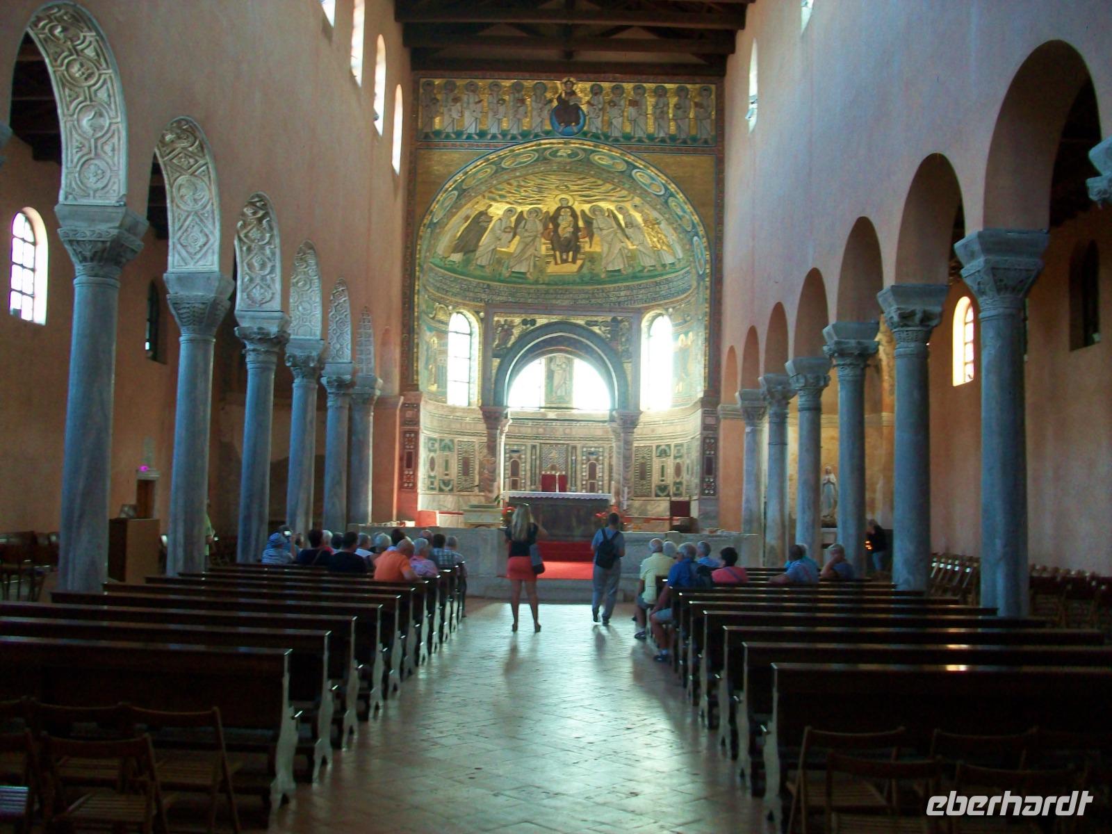19.9.2018. Der Morgen begrüßt uns auch heute wieder mit Sonnenschein. An diesem Tag haben wir uns ein Kontrastprogramm vorgenommen: am Vormittag noch einmal die Adria, am Nachmittag dann wollen wir die Luft des Hochgebirges genießen. Doch zunächst werden wir von einer kroatischen Führerin begrüßt, sie wird uns einmal mehr in die Historie entführen, diesmal auf der Halbinsel Istrien. Der Ort den wir besuchen hat auch eine wirklich malerische Lage: die Altstadt von Porec liegt auf einer Halbinsel und der historische Kern wird von der Adria eingerahmt. Nach kurzer Zeit sind wir in den schmalen Gassen dieser istrischen Perle verschwunden. Auch wenn wir in den vergangenen Tagen all diese Impressionen genießen konnten, so ist doch jede Stadt anders, den absoluten Höhepunkt bilden aber die Euphrasiusbasilika und der eingebundene Bischofsbezirk. Was es da nicht alles zu sehen gibt: angefangen von römischen Mosaiken die vor 2 000 Jahren entstanden, Mauerresten aus späteren Epochen und dann die wunderschöne Kirche die in den vergangenen Jahrhunderten immer wieder erweitert wurde und dennoch ein harmonisches Miteinander verschiedener Zeitepochen bildet, einfach wunderbar!
