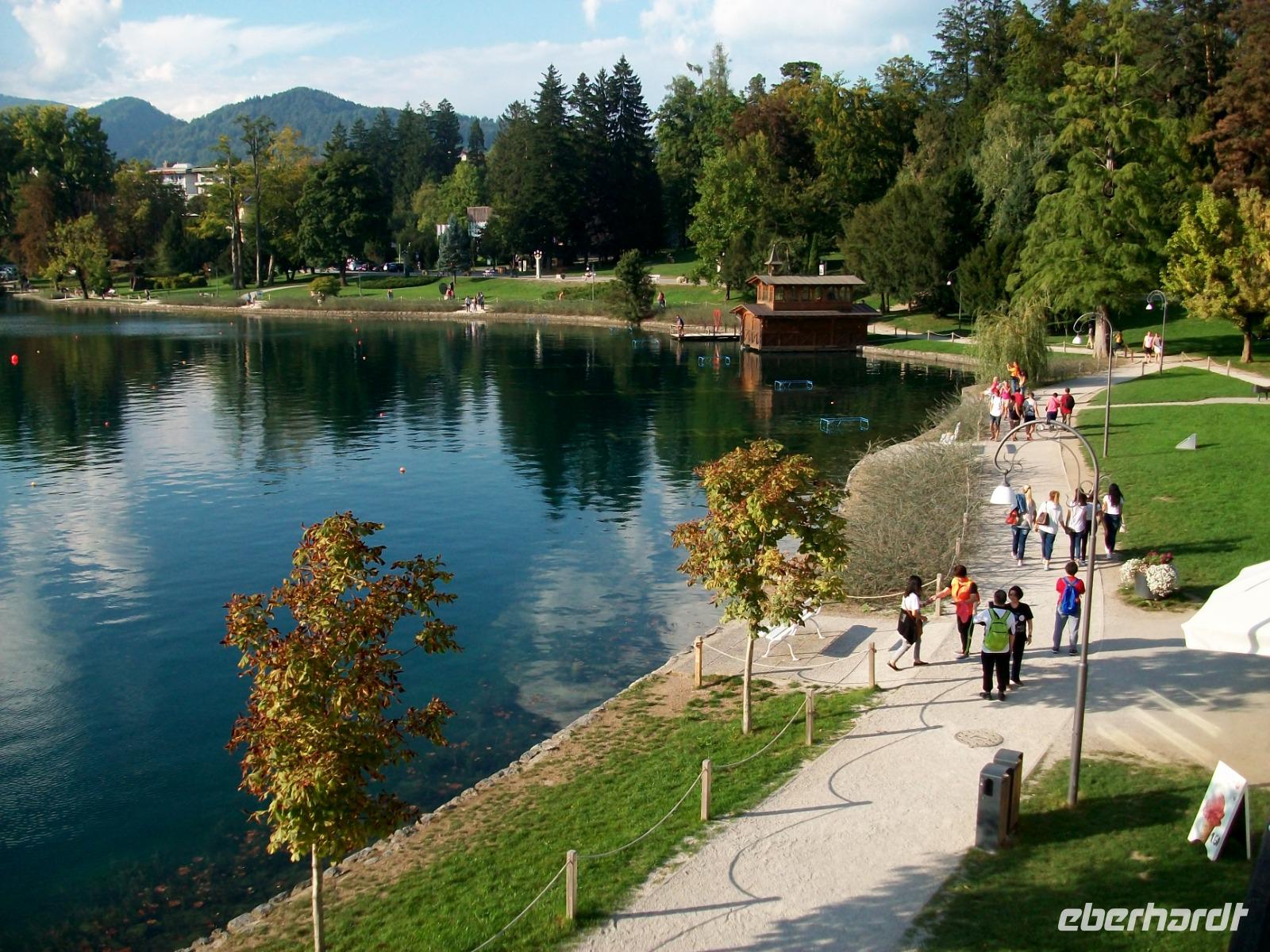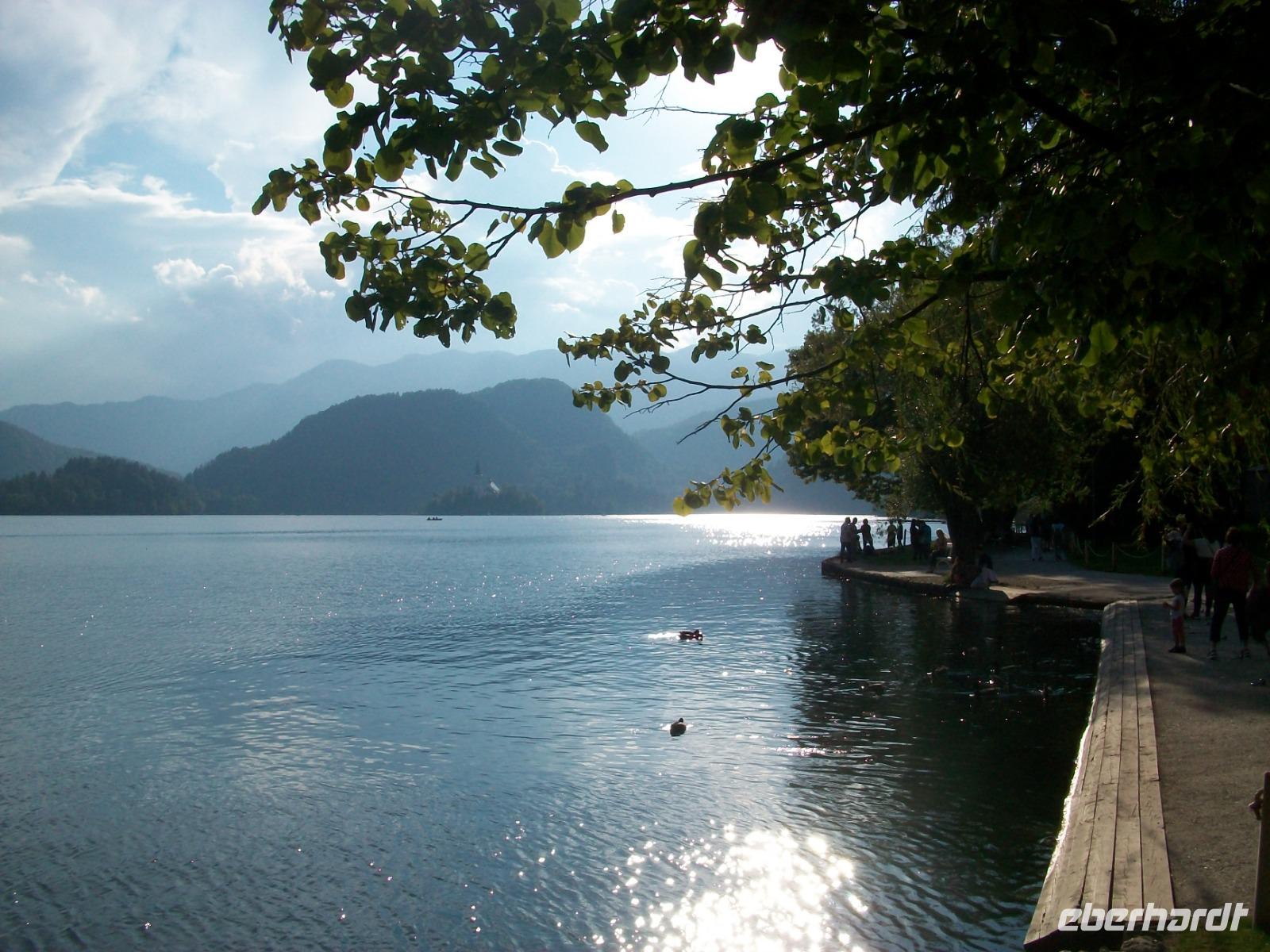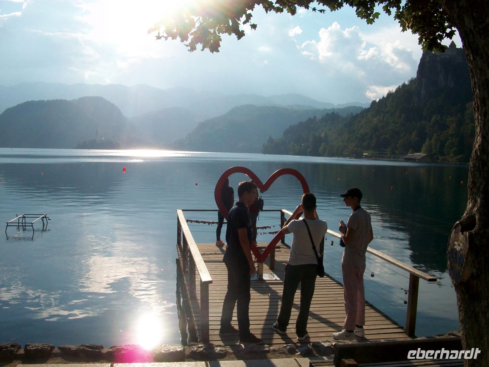 Nach diesem ganz großen Erlebnis heißt es nun aber endgültig Abschied nehmen von der Küste; mit dem Bus gelangen wir bald in das Gebirge und am Nachmittag kommen wir nach Bled, einem Ort der romantischer nicht liegen kann. Umrahmt von den Erhebungen des Triglavs und der Julischen Alpen liegt der See mit der Insel und direkt am Ufer der Ort. Bled. Ein richtig schöner Nachmittag lädt ein zum Bummeln; ein Kaffee am See, ein Eis im Ort; viel zu schnell vergehen die schönen Stunden; die Sonne verschwindet hinter dem Triglav und der Tag neigt sich dem Ende entgegen. Leider auch unsere schöne Reise; ein letztes Abendessen, dann müssen die Koffer gepackt werden.