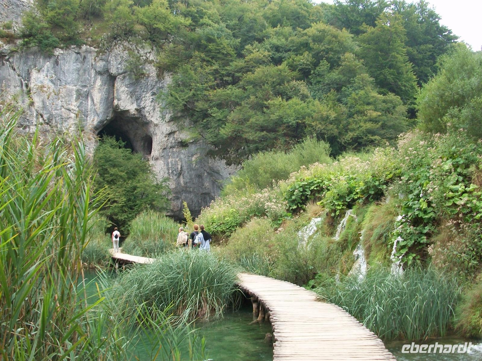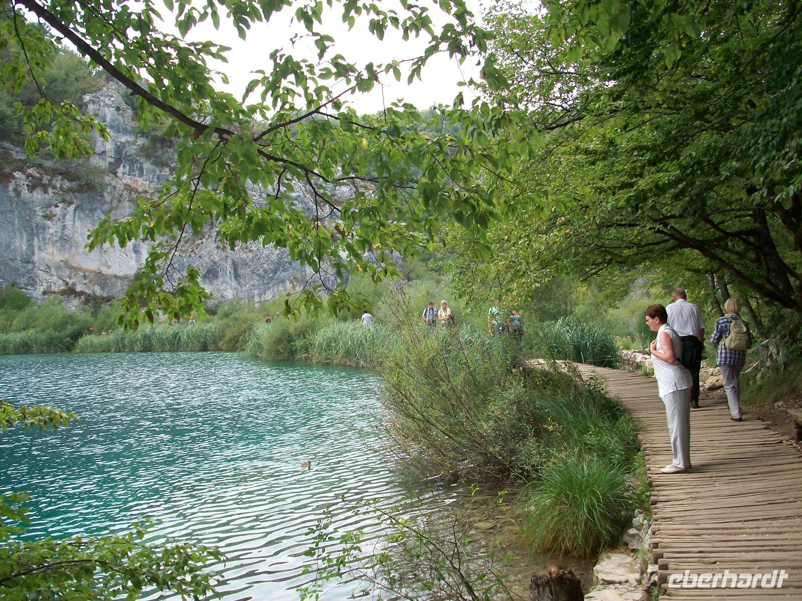 zuerst fahren wir zu unserem Hotel „Jezero“ welches direkt im Nationalpark liegt. Dann beginnt das große Abenteuer, der Bus bringt uns zum Eingang 1 und dann beginnen wir die Wanderung durch die Wunder der Natur. Das Wetter ist sonnig die Temperaturen angenehm warm. Wir starten am Aussichtspunkt mit einem schönen Blick auf den Großen Wasserfall der seine Wasser aus fast 80 Metern hinunterfallen lässt. Dann geht es abwärts und wir überqueren den ersten See über einen Knüppeldamm um schließlich unterhalb des Großen Wasserfalls anzukommen- ein gigantischer Anblick. Weiter geht es dann aufwärts an dem See vorbei der im Karl- May- Film der Silbersee war, wir sehen auch die Höhle wo der Goldschatz versteckt war und gehen weiter aufwärts an zahlreichen Wasserfällen und Kaskaden vorbei die zwischen den einzelnen Seen zu Tal rauschen- immer wieder beeindruckend.