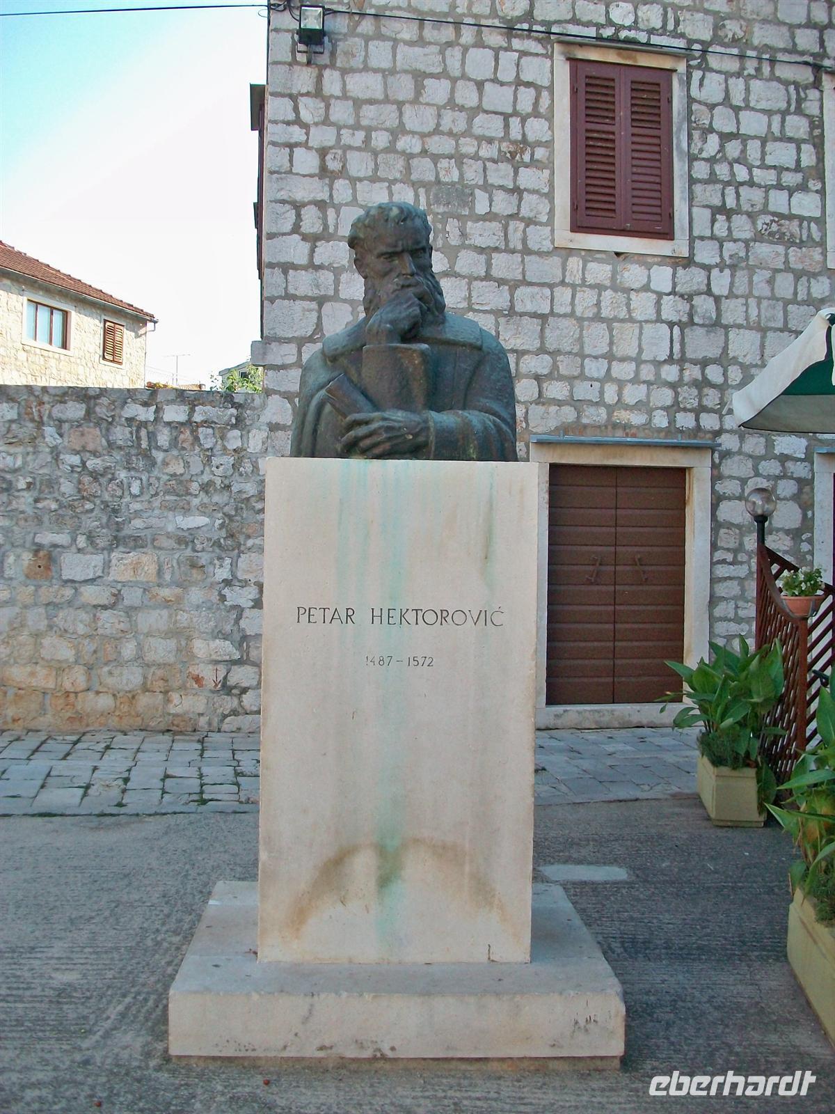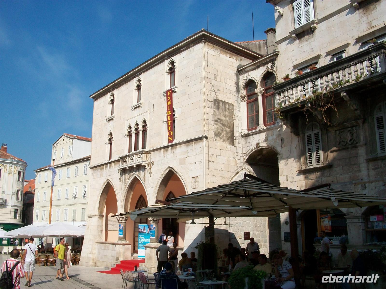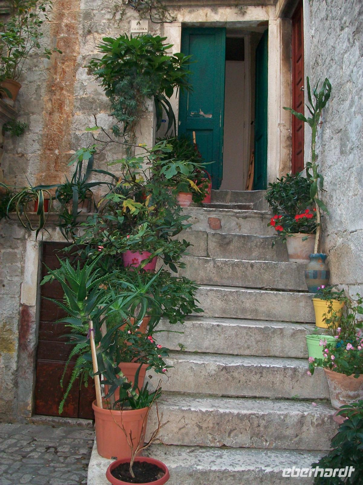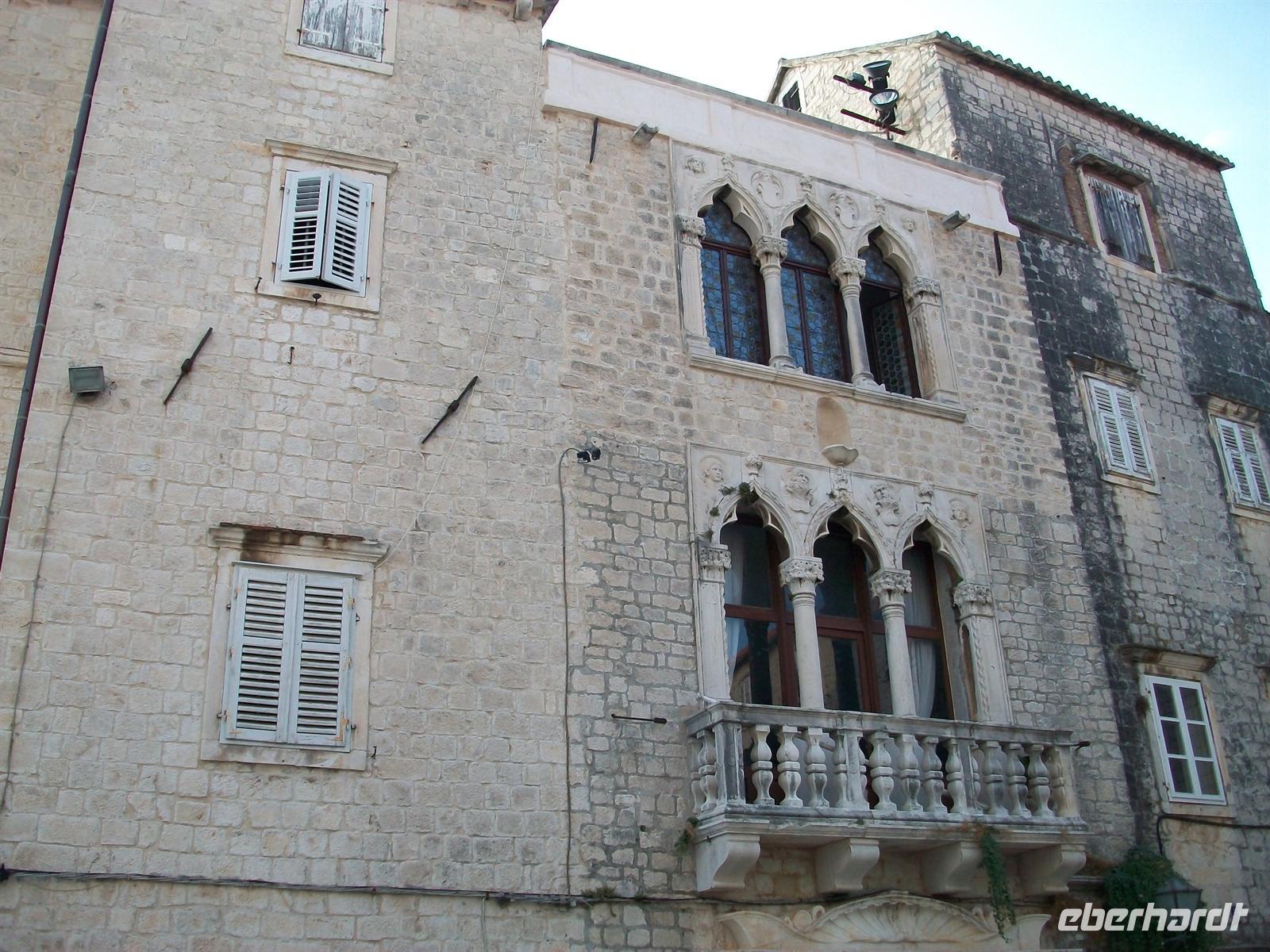 untergegangen ist. Die Häuser sind aus weißem Kalkstein erbaut, ein typisches Bild aller Orte hier an der Küste. Hier wandeln wir nun durch sehr schmale Gassen, sehen die Kathedrale mit dem schönen Skulpturenschmuck von Meister Radovan, bestaunen die Stadtpaläste und die gepflegten Innenhöfe. Die Cafes an der Strandpromenade laden zum Einkehren ein und so vergeht die Zeit in diesem schönen Ort.