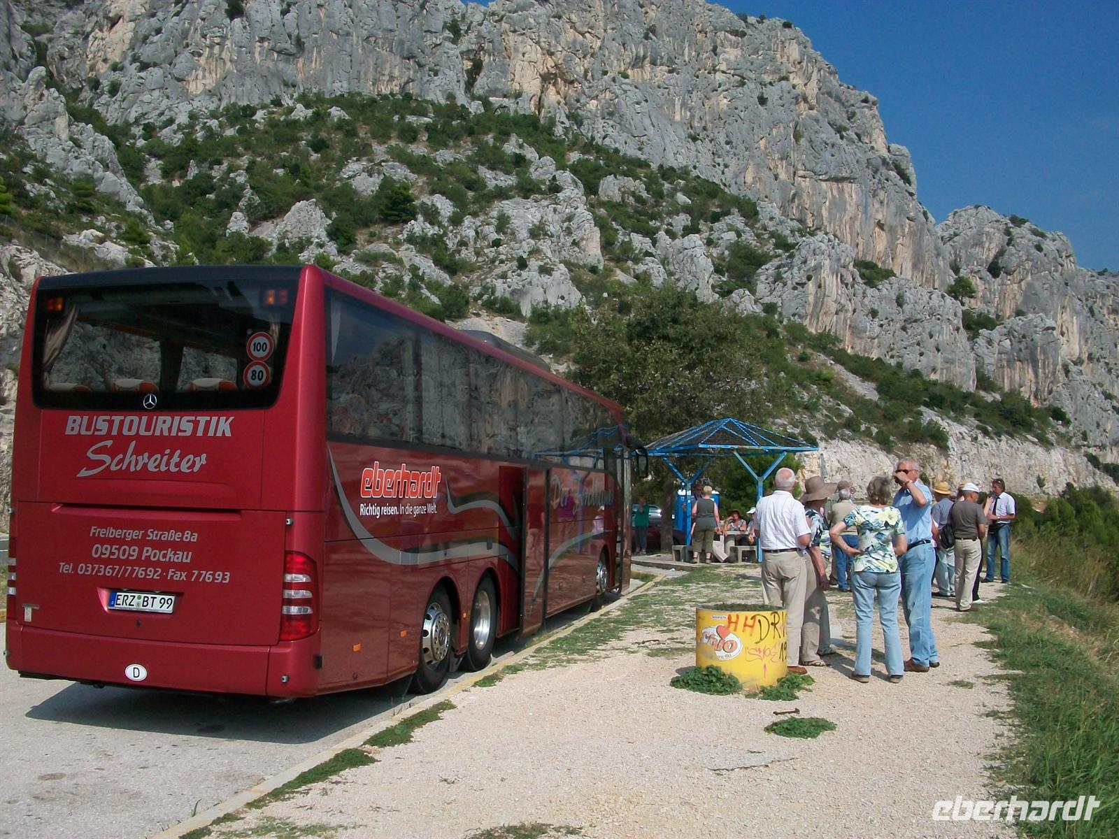 Bei unserer Fahrt verzichten wir absichtlich auf die Autobahn denn nur von der Landstraße aus ist die herb- schöne Karstlandschaft des Lika- Gebietes zu sehen. Wir sind unterwegs in Richtung Graac, legen hier eine Pause ein und weiter geht es auf der Landstraße in Richtung Knin. Die Ausblicke dabei sind phantastisch, besonders die Hochebenen in Richtung Bosnien.