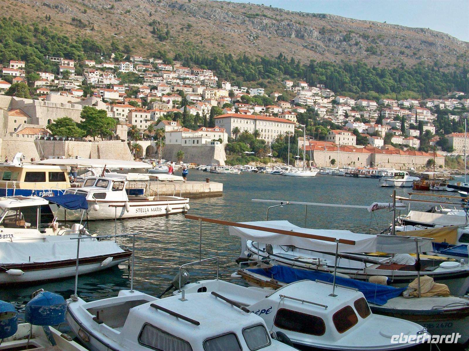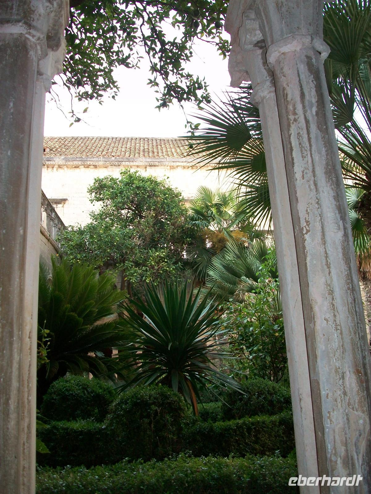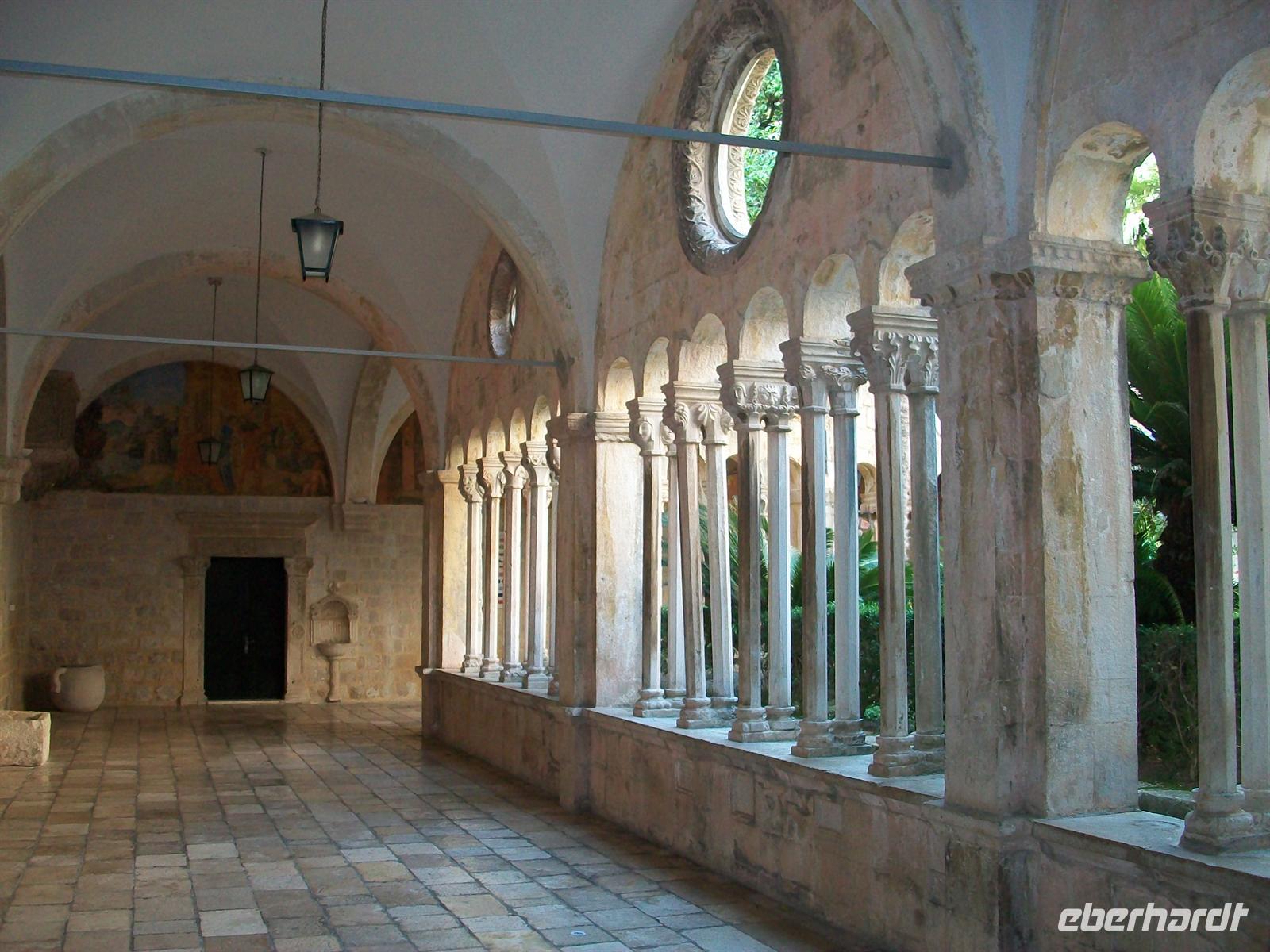 Wir durchqueren die doppelte Stadtmauer und sind schon auf Stradun der Hauptfußgängerzone angelangt. Hier ist alles blitzsauber und die Morgensonne widerspiegelt sich im glänzenden Pflaster der Stadt. Wir besuchen zuerst das Franziskanerkloster mit dem schönen romanischen Kreuzgang und der Alten Apotheke. Dann führt uns Antea durch pittoreske Gassen zum Alten Hafen, wir sehen im Hintergrund die Gebäude der ehemaligen Quarantäne und im Wasser des Hafenbeckens warten zahlreiche Ausflugsboote auf Kundschaft. Dann machen wir noch Halt an der Kathedrale und erfahren am Rektorenpalast sehr interessante Details zur Machtverteilung in der einstmaligen Stadtrepublik Ragusa. Antea bringt uns diese versunkene Zeitepoche so lebendig näher als ob wir während der Führung selbst in vergangenen Jahrhunderten wandeln würden.