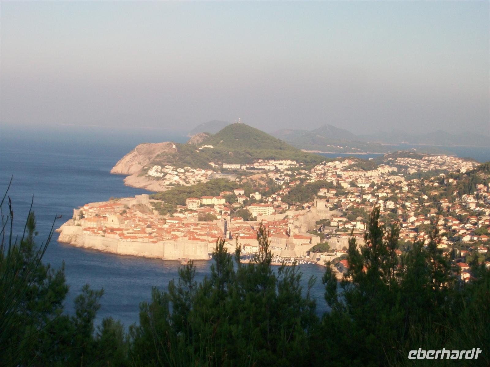 Ebene von Tivat vorbei, sehen den Flugplatz und langen bald an der Stelle an wo uns die Autofähre auf die andere Seite der Bucht bringen wird. Die Sonne neigt sich nun langsam ihrem Untergang zu und wir sind auf dem Weg zur Grenze. Hier werden wir nicht lange aufgehalten, in dieser Zeit ist es aber dunkel geworden und hoch über der schön beleuchteten Altstadt von Dubrovnik schweben wir ein um wenig später unser Hotel zu erreichen.