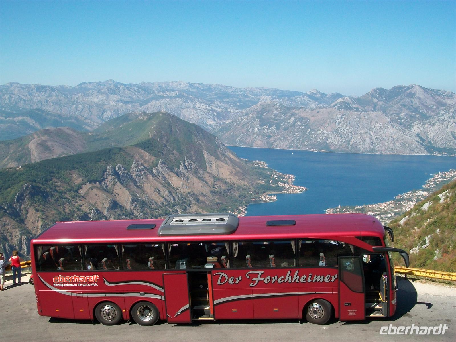 Heute sind wir etwas früher gestartet um das umfangreiche Programm bewältigen zu können. Dieser Ausflug in das Land der schwarzen Berge zählt zu den attraktivsten Programmpunkten dieser Reise. Wir sind in südlicher Richtung unterwegs und haben oberhalb von Dubrovnik mit Blick aus der Vogelperspektive einen Fotostopp eingelegt. Nach einer knappen Fahrstunde erreichten wir den