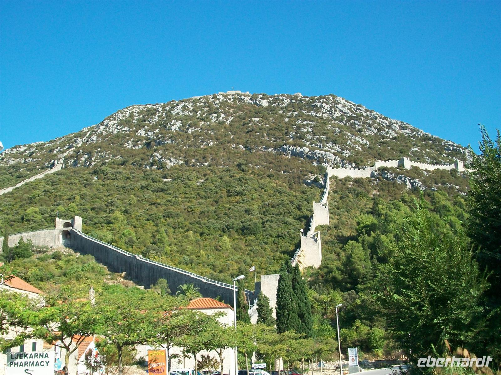 Am tiefblauen Himmel ist heute kein Wölkchen zu sehen; wir sind auf der Küstenstraße unterwegs und links von uns im Meer sind zahlreiche Inseln zu sehen, sie gehören zur Gruppe der Elaphiten. Bald jedoch versperrt eine Landmasse die Sicht aufs Meer, es ist die Halbinsel Pelješac auf die wir jetzt auffahren um die Insel Korula zu erreichen. Zunächst legen wir aber einen Stopp im Ort Ston ein. Hier hatten die Ragusaner ihre Salinen, das Weiße Gold trug viel zum Reichtum der Republik bei. Bis heute sind die mächtigen Festungsmauern und Teile der Salinenanlage erhalten geblieben.