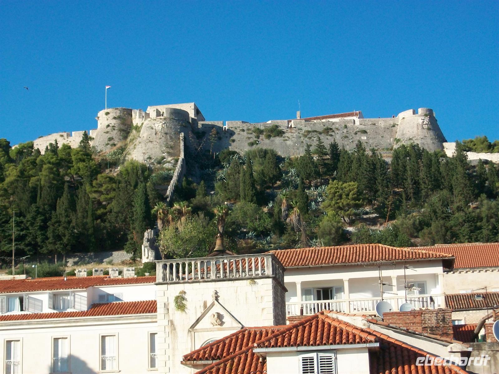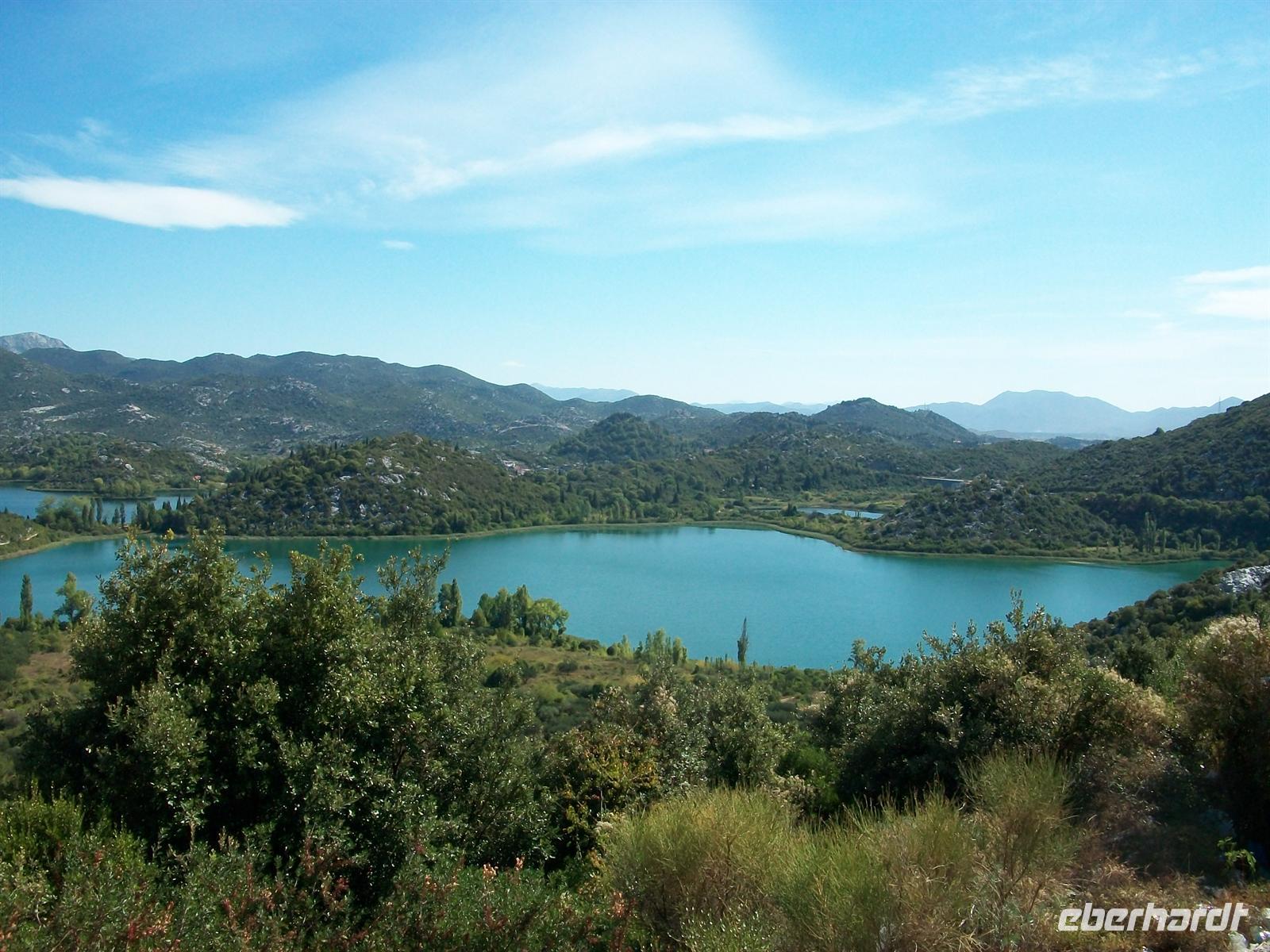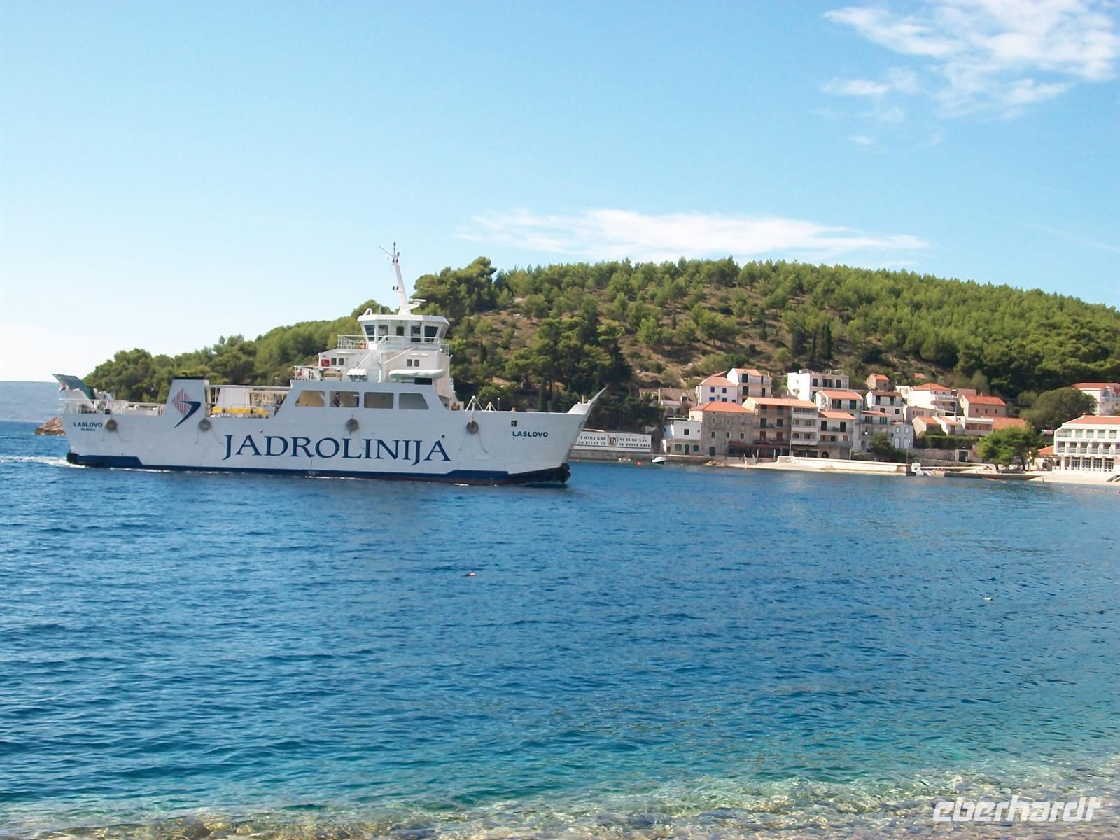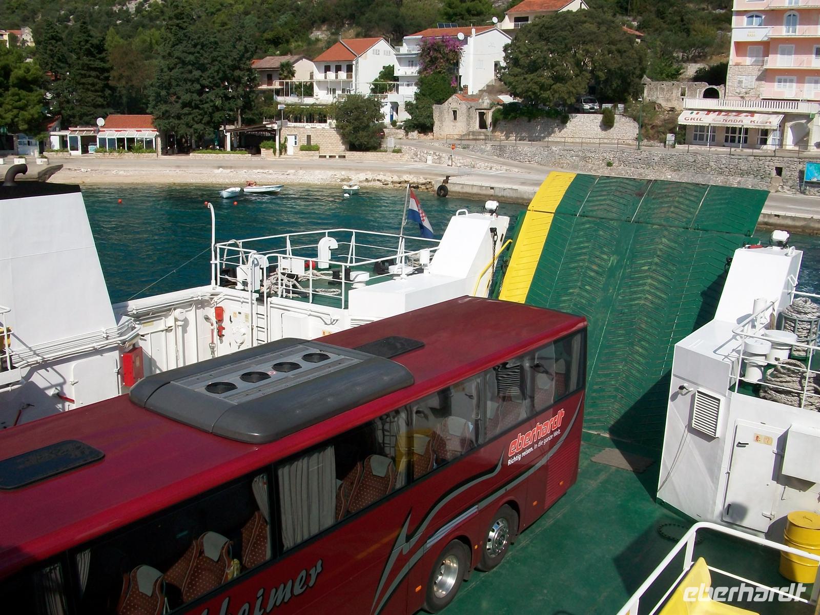 Nach dem wir vom Hotelrestaurant zum Frühstück noch einmal einen schönen Blick auf die in der Morgensonne angestrahlte Altstadt von Korula werfen konnten, mussten wir später doch Abschied nehmen von diesem einmaligen Ort. Mit der Fähre 9.00 Uhr setzten wir über und sind nun wieder auf der Halbinsel Pelješac unterwegs. Vorbei an schönen Buchten und einer urwüchsigen Landschaft sind wir am Ort Ston angelangt; Mali Ston ist bekannt für die Austernzucht, an dunklen Tonnen im Wasser sind Schnüre angebracht an denen sich diese Köstlichkeiten langsam entwickeln. Weiter geht die Tour durch das Neretvatal und dann sind wir einige Zeit im Hinterland unterwegs. Auf der rechten Seite kommen die Seen von Bain in Sichtweite- Süßwasserseen die sehr romantisch ein schönes Fotomotiv abgeben. Nach einem kurzen Stopp geht es dann bald am Meer weiter, wir umfahren zahlreiche Buchten mit immer neuen und schönen Ausblicken, 12.30 Uhr verlassen wir aber die Uferstraße um hinunter zum Fähranleger Drvenik zu fahren. Hier haben wir nun eine Stunde Zeit, jedoch rechtzeitiges Kommen muss uns hier die Plätze sichern, die Fähre ist nicht sehr groß. 13.45 Uhr legen wir ab, vom oberen Deck lässt sich die Überfahrt ruhig genießen, vierzig Minuten später legen wir auf der Insel Hvar an. Nun heißt es für unseren Chauffeur wieder höchste Konzentration, die Straße die wir jetzt benutzen ist sehr schmal und wie die Gegend durch welche wir fahren sehr urwüchsig, mit