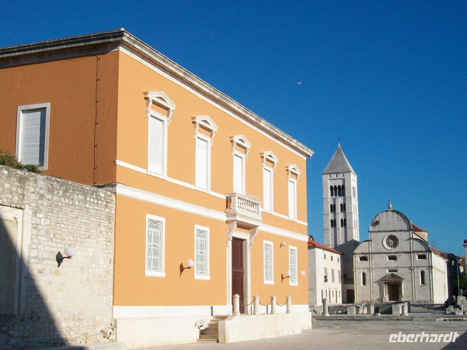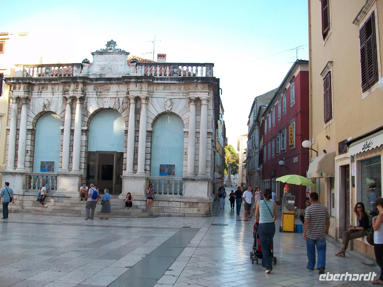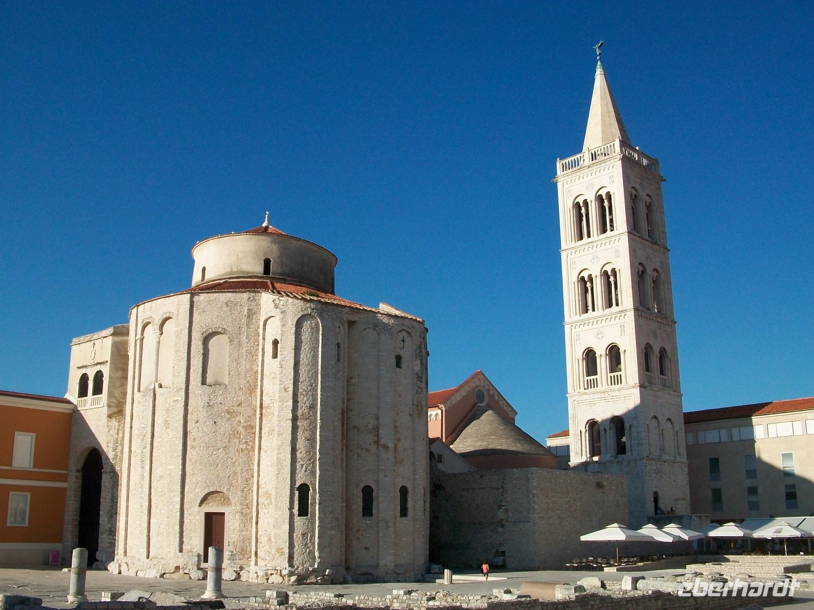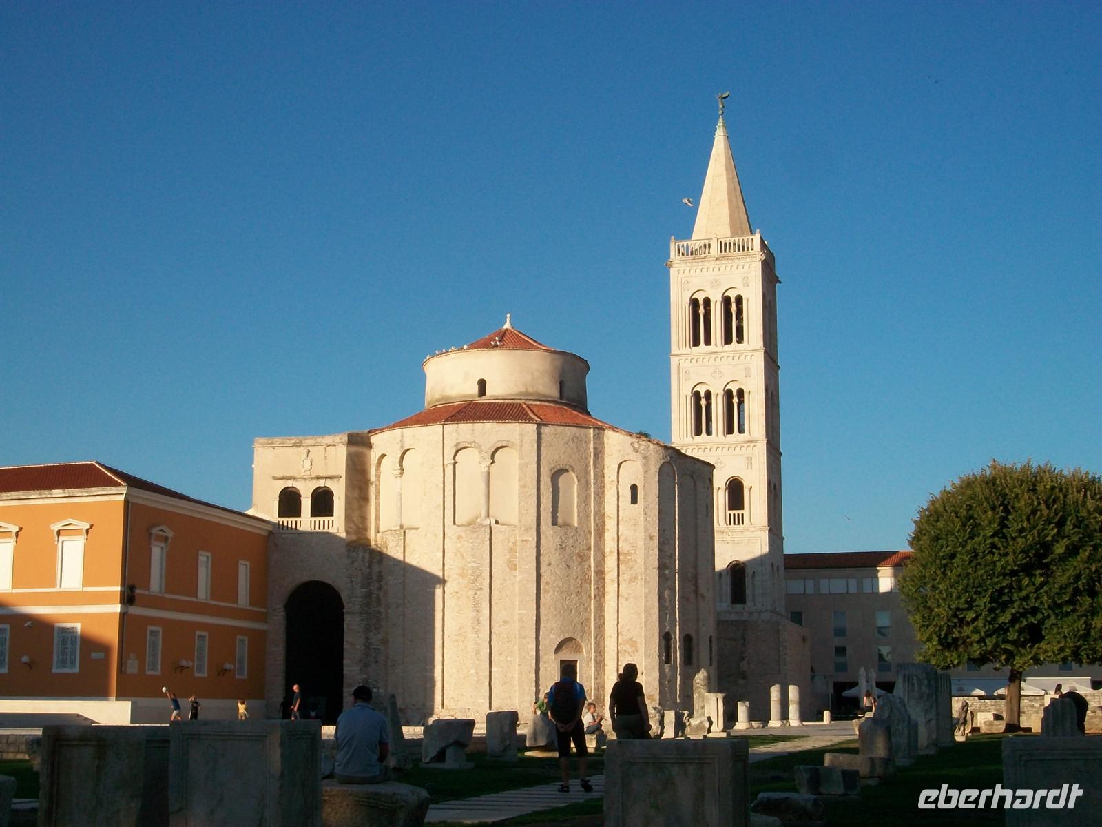Zadar ist ein Ort der nicht mehr original erhalten blieb, im 2. Weltkrieg durch Bombardements schwer zerstört, wurde er danach nur zum Teil wieder historisch aufgebaut, es kam einiges moderne hinzu. Aber die wichtigsten historischen Bauten wurden wieder aufgebaut und die sehen wir uns nun an. Wir beginnen im Römischen Imperium und sehen Teile des Forums, gegenüber ist die Rotunde der Donatskirche zu sehen die in der Vorromanik entstand und dahinter liegt die Kathedrale die ihr Aussehen hauptsächlich in der Epoche der Romanik erhielt. Auf unserem Rundgang sehen wir noch das Landtor, Teil der Stadtbefestigung die durch die Venezianer entstand und sind dann bald am Hauptplatz angelangt, hier endet unsere Führung. Auf dem Platz gibt es zahlreiche Cafes die in der warmen Nachmittagssonne zum Verweilen einladen, viele Einheimische und Touristen haben hier Platz genommen.