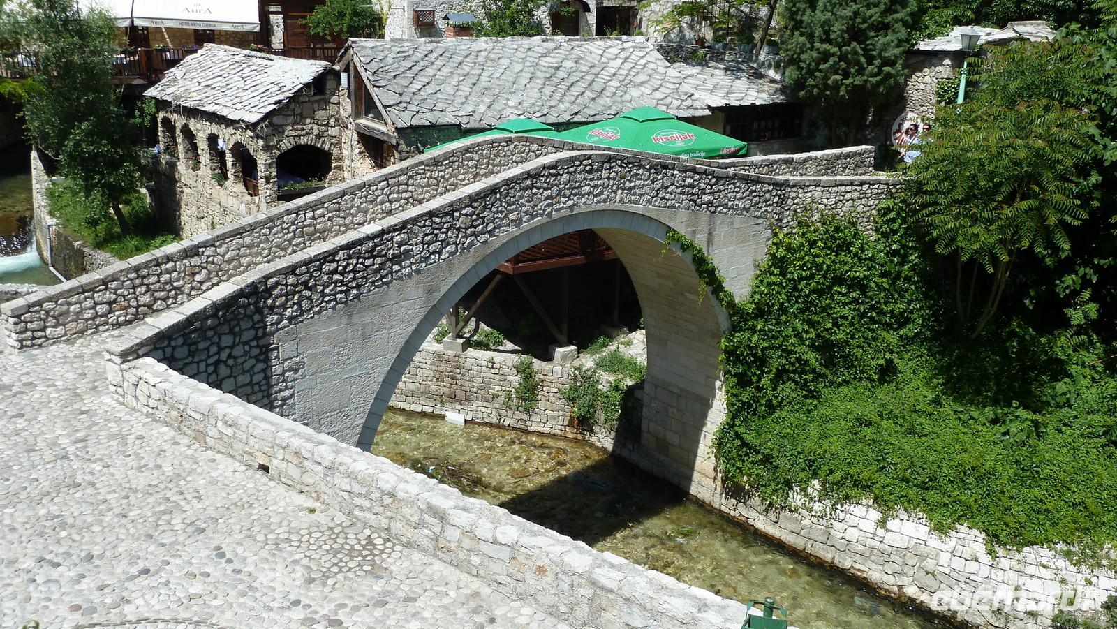 Auf unserem Ausflugsplan steht heute die Herzegovina mit ihrer Hauptstadt Mostar. Um dahinzugelangen müssen wir die Grenzen zu Neum und die Grenze nach dem Ort Metkovic passieren. Die Grenzabfertigung zieht sich fast eine Stunde hin. Die Fahrt führt uns ab Opuzen immer im Tal der Neretva entlang. Dieser Teil der Herzegovina ist vorwiegend von Kroaten bewohnt, was sich sehr stark an den Fahnen erkennen lässt. Gegen 11:20 Uhr erreichen wir den Parkplatz an der Franziskanerkirche und werden von der Stadtführerin Dnijela erwartet. Gemeinsam spazieren wir von hier aus in die Altstadt. Während des Rundgangs sehen wir immer noch viele zerstörte Gebäude. Verfallene und ausgebrannte Gebäude sowie Einschusslöcher sind Zeitzeugen des Krieges. Bei dem Rundgang darf natürlich die berühmte „Alte Brücke" nicht fehlen. Die Brücke ist 2005 wieder aufgebaut worden, mit den Steinen der vorher zerstörten Brücke. Die Brückenspringer werben um zahlungsfreudige Gäste um für 30€ den Sprung in die Tiefe zu wagen. Um 13:15 Uhr verlassen wir Mostar um in der „Vila Neretva" Mittag zu essen. Bei 3 Sorten Wein und Schinken und Käse lassen wir es uns gut gehen. Obwohl es im Neretva Delta so schön ist müssen wir weiter. Wir setzen unsere Fahrt fort nach Tucepi ins Hotel Alga. Wir beziehen unsere Zimmer für die nächste Woche.