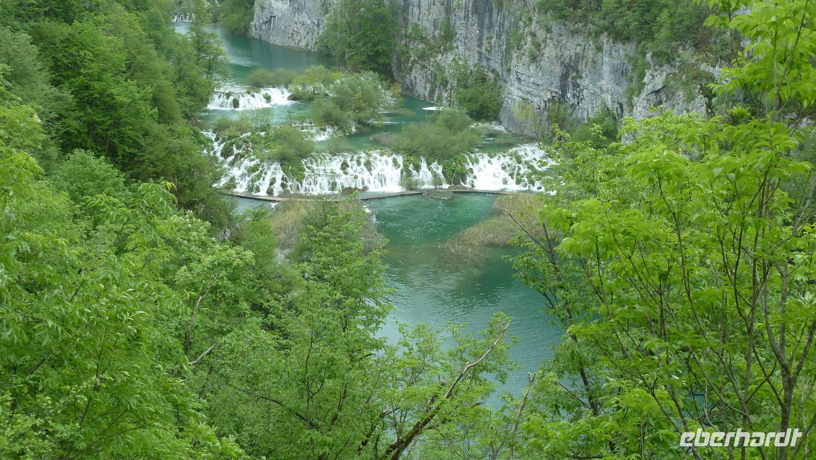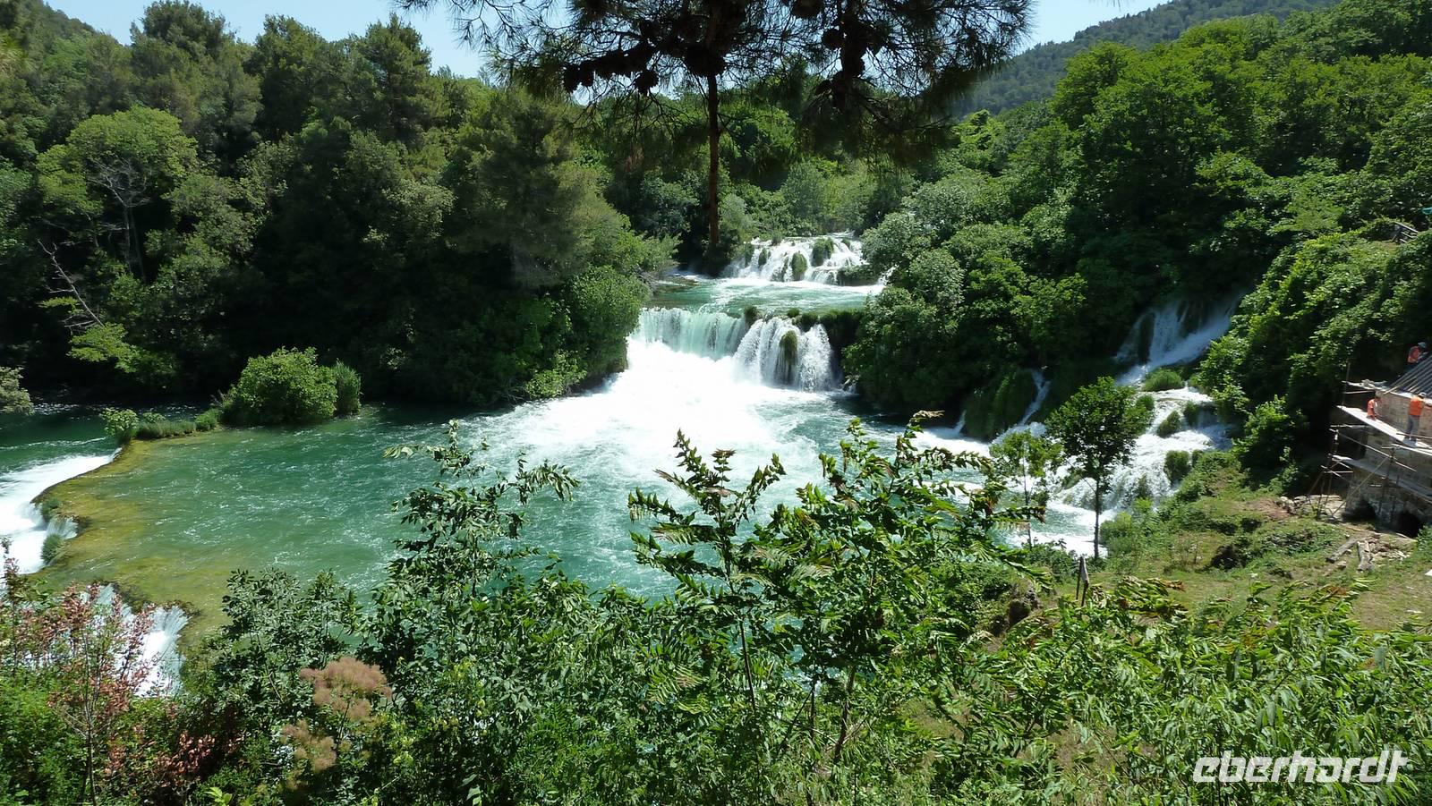 Nach cirka 1,5 Stunden erreichen wir Losovac. Mit dem Voucher werden die Tickets geholt und es geht mit dem Bus nach Skradinski buk.Der Canon der Krka ist hier fast 200m tief. Angekommen beginnt die Wanderung um die Wasserfälle von Skradinski buk. Ich bin immer wieder erstaunt wie der Fluss auf einer Länge von 800m die 17 Terrassen überströmt. Am Ende des Rundgangs sehen wir uns noch die „Waschmaschine", das Pochwerk und die Mühle an. Um 13:30 holt uns der Bus unten wieder ab und wir genießen die herrlichen Ausblicke.