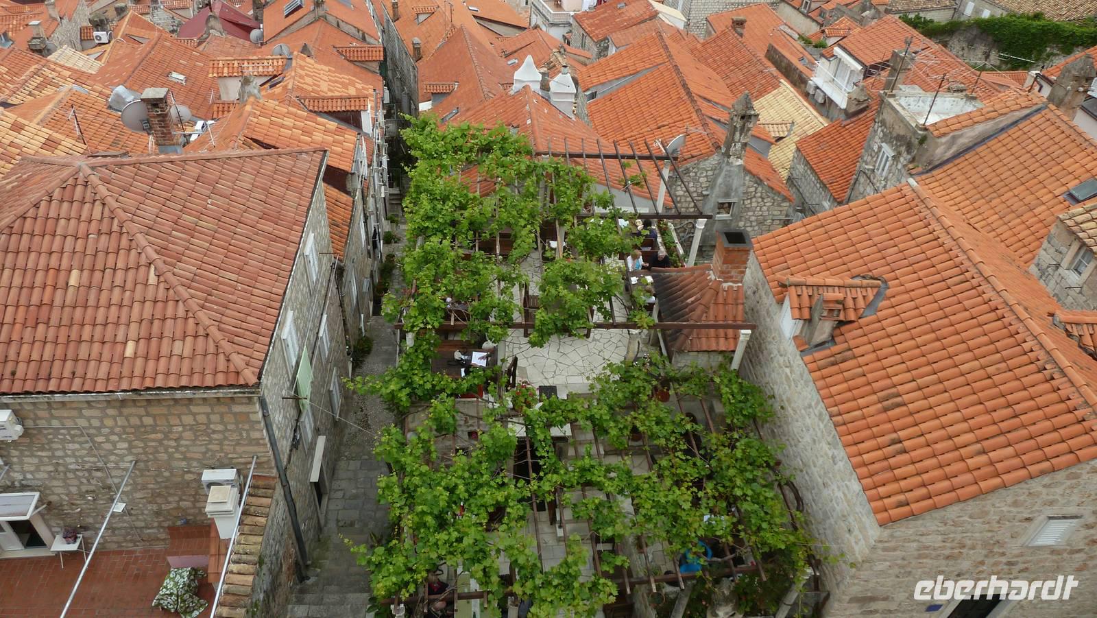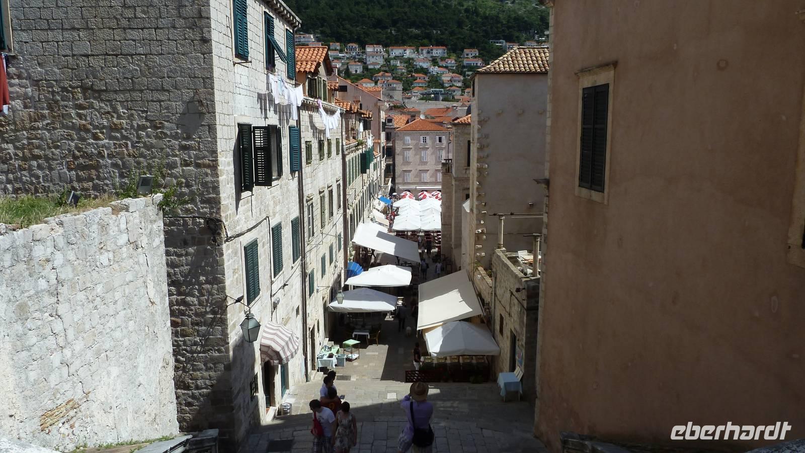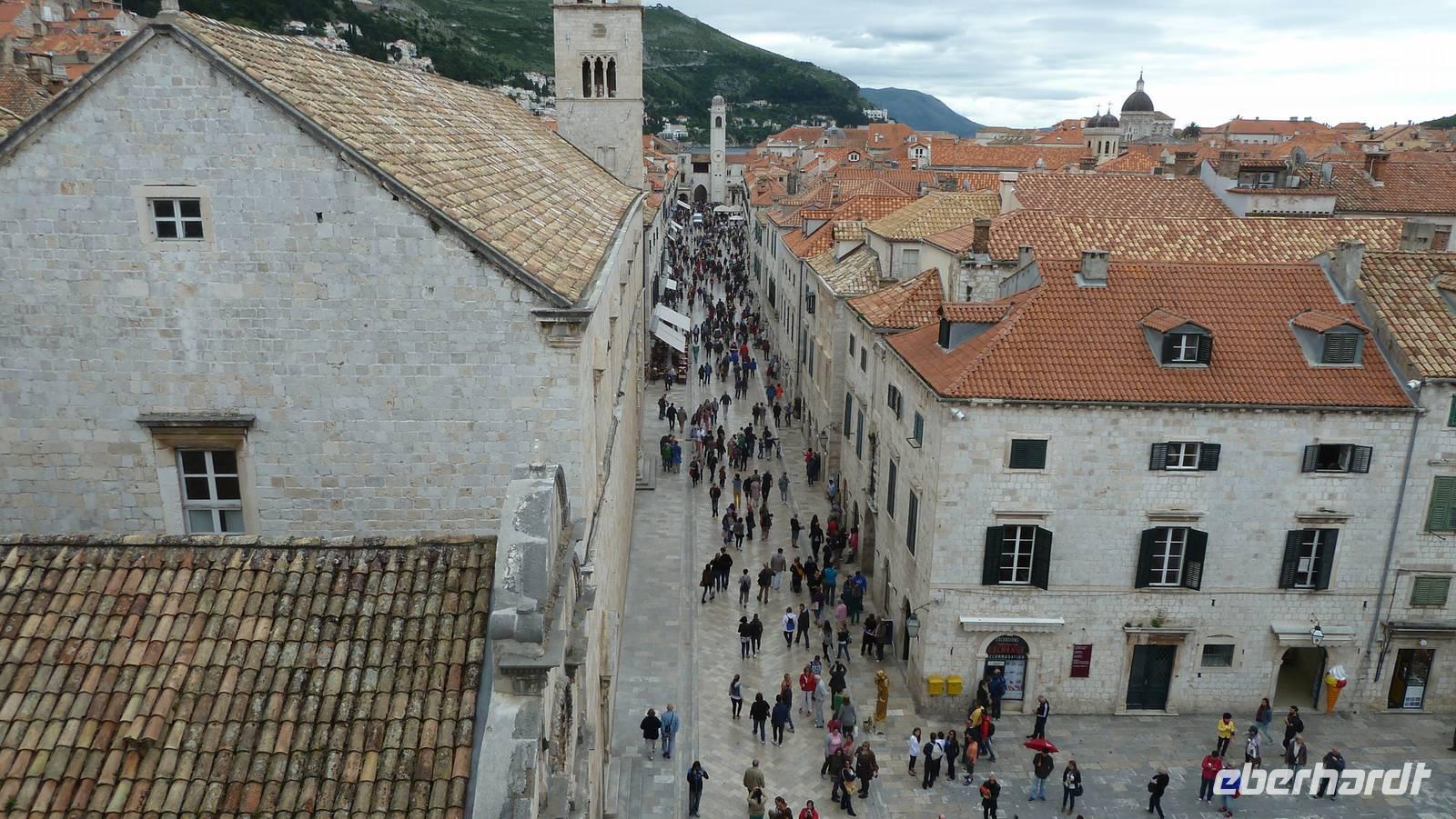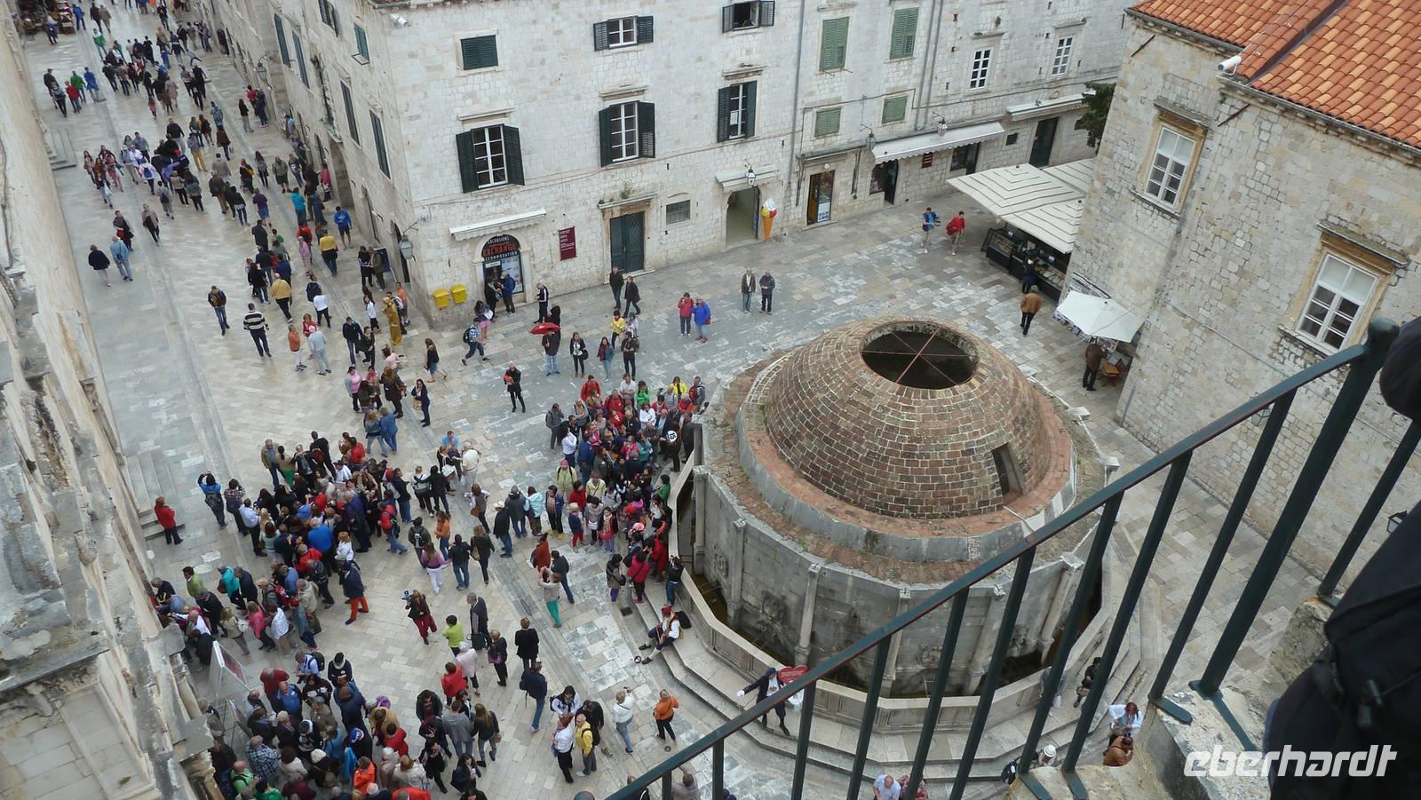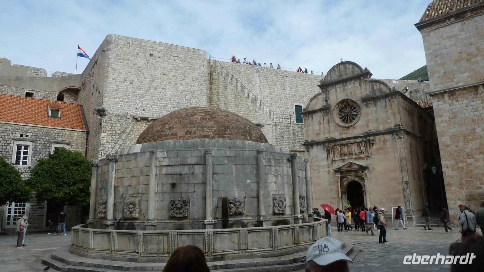 George Bernhard Shaw nannte Dubrovnik das „Paradies auf Erden". Nach 25 Minuten erreichten wir das Pile Tor. Es hatte den Anschein, als wollten Hunderte gleichzeitig ins „Paradies". Unsere Stadtführerin Violeta erklärte uns viele wichtige Sehenswürdigkeiten der Stadt, gab uns interessante Einblicke in das Leben der Menschen. Nach 1,5 Stunden haben uns die Eindrücke überwältigt und wir danken der Stadtführerin für ihre Erläuterungen. Nach einer Feizeit treffen wir uns alle wieder am Marktplatz um dem „Taubenspektakel" beizuwohnen. Gut beschirmt sehen wir wie punkt 12:00 Uhr die vielen Tauben gefüttert werden und das schon seit sehr langer Zeit. Anschließend haben wir bei Mirso Plätze reserviert für unser gemeinsames Mittagessen. In einer äußerst angenehmen Atmosphäre lassen wir es uns gut gehen. Gestärkt machen wir uns auf den Weg, um die Stadtmauer zu „erobern". Nach Zahlung von 100 Kuna geht es los. Die 1,8km werden zu einem unvergesslichen Erlebnis. Mit Pausen haben wir nach 2 Stunden unseren Ausgangspunkt wieder erreicht. Jetzt hat jeder noch Zeit für eine individuelle Exkursion, bis der Bus uns am Pile Tor wieder abholt. Über die alte Straße und einen Fotostopp erreichen wir dann unser Hotel in Mlini.