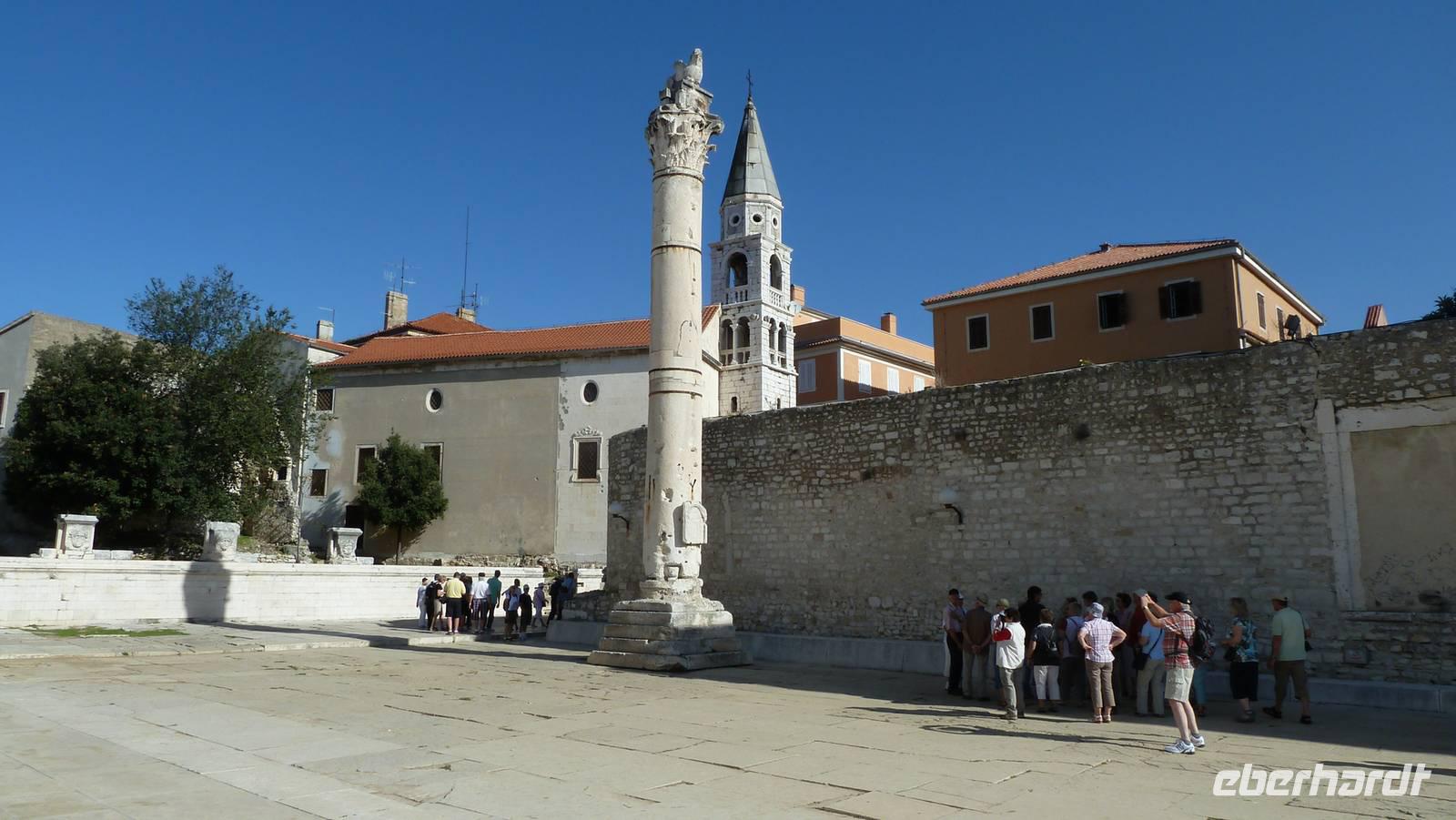 Am Sonntagmorgen geht es um 9:00 vom Hotel Pinija zuerst nach Zadar. Nach einer kurzen Fahrt an der Marina von Zadar entlang erreichen wir den Busparkplatz am Hafen von Zadar. Maja erwartet uns bereits und führt uns durch die Stadt der Römer, Awaren und Venezianer. Zadar ist eine Stadt der Kirchen, Baudenkmäler und Museen, eine Stadt zum Flanieren, Einkaufen sowie Sprungbrett zu vielen Inseln,