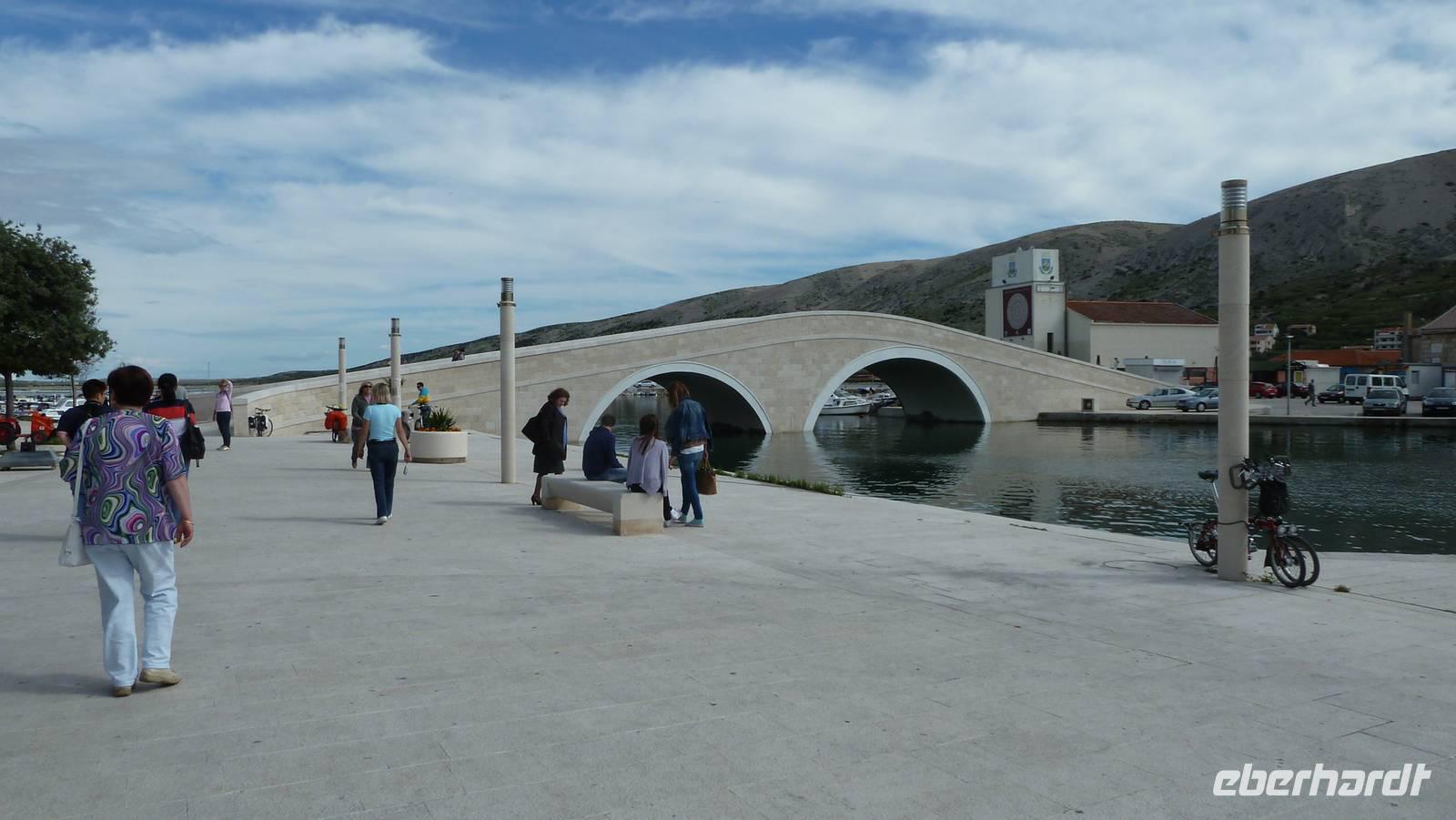 Die malerische Altstadt liegt auf einer Landzunge und ist von wuchtigen Mauern beschützt. Wir spazieren auf dem 2000-jährigen Pflaster Zadars zur Kathedrale. Donatuskirche, zum 5-Brunnen-Platz, zum Forum Romanum, zum Landtor. Nach1,5 Stunden verabschieden wir uns von Maja und jeder hat noch etwas Freizeit. Mittags rollen wir weiter auf die Insel der Schafe und Mauern = Pag. Über die Brücke Fortica geht es weiter auf die Insel Pag. Wir erleben was die Bura aus der Insel gemacht hat: eine Mondlandschaft. Nach der Stadt Pag wechseln wir auf die andere Seite der Insel. Hier ist die Landschaft doch etwas grüner. Die Straße nach Novalja und zum Zielort Jakisnica ist gesäumt von Mauern und Olivenbäumen. Im kleinen Fischerort Tovarnele lassen wir es uns bei Pager Käse und luftgetrocknetem Schinken gut gehen. Auf der Rückfahrt besuchen wir die kleine Stadt Pag und begeistern uns an der Architektur und Gestaltung durch Juraj Dalmatinac. Zum Abendessen erreichen wir das Hotel Pinija.