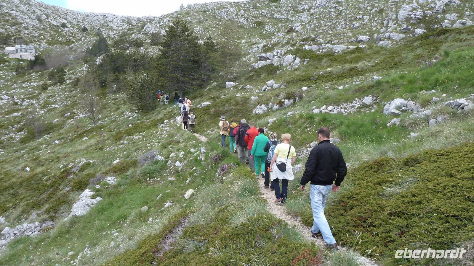 Am nächsten Morgen bei schönem Wetter starten wir zur ersten Natursehenswürdigkeit, die durch den Karst geprägt ist. Nach Zadar geht es auf die „Ministerstraße" und dann später auf die Autobahn in Richtung Sibenik. Entlang der Autobahn sehen wir eine vom Menschen geschaffene Landschaft, in der die Maccia dominiert, In den vergangenen Jahrhunderten haben alle Mächte die riesigen Wälder abgeholzt, sodass jetzt die Maccia und die Garigue dominieren.