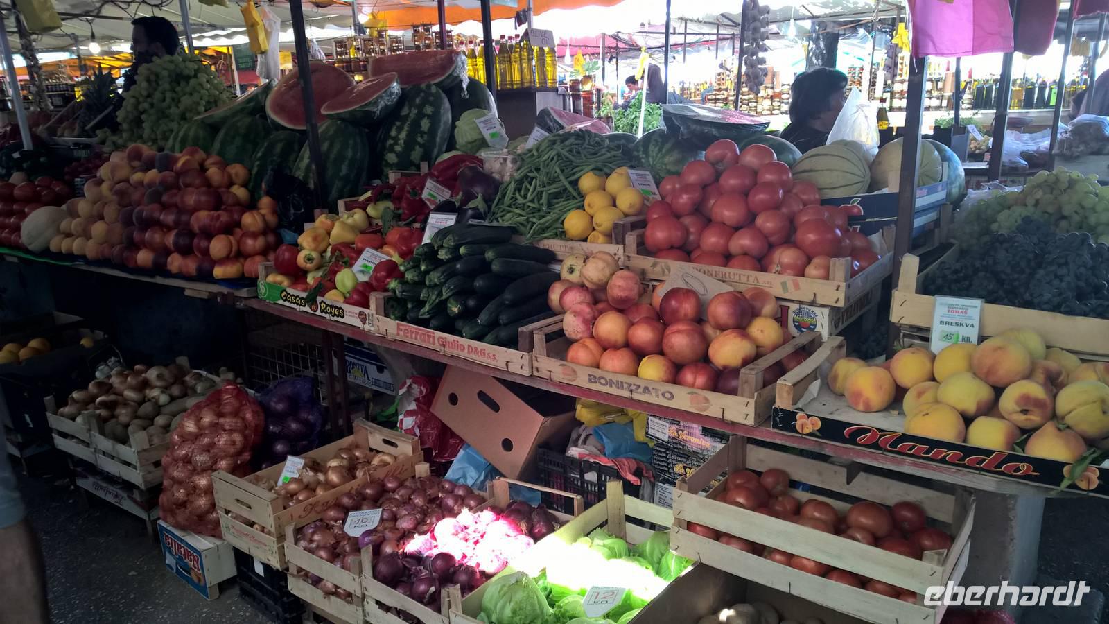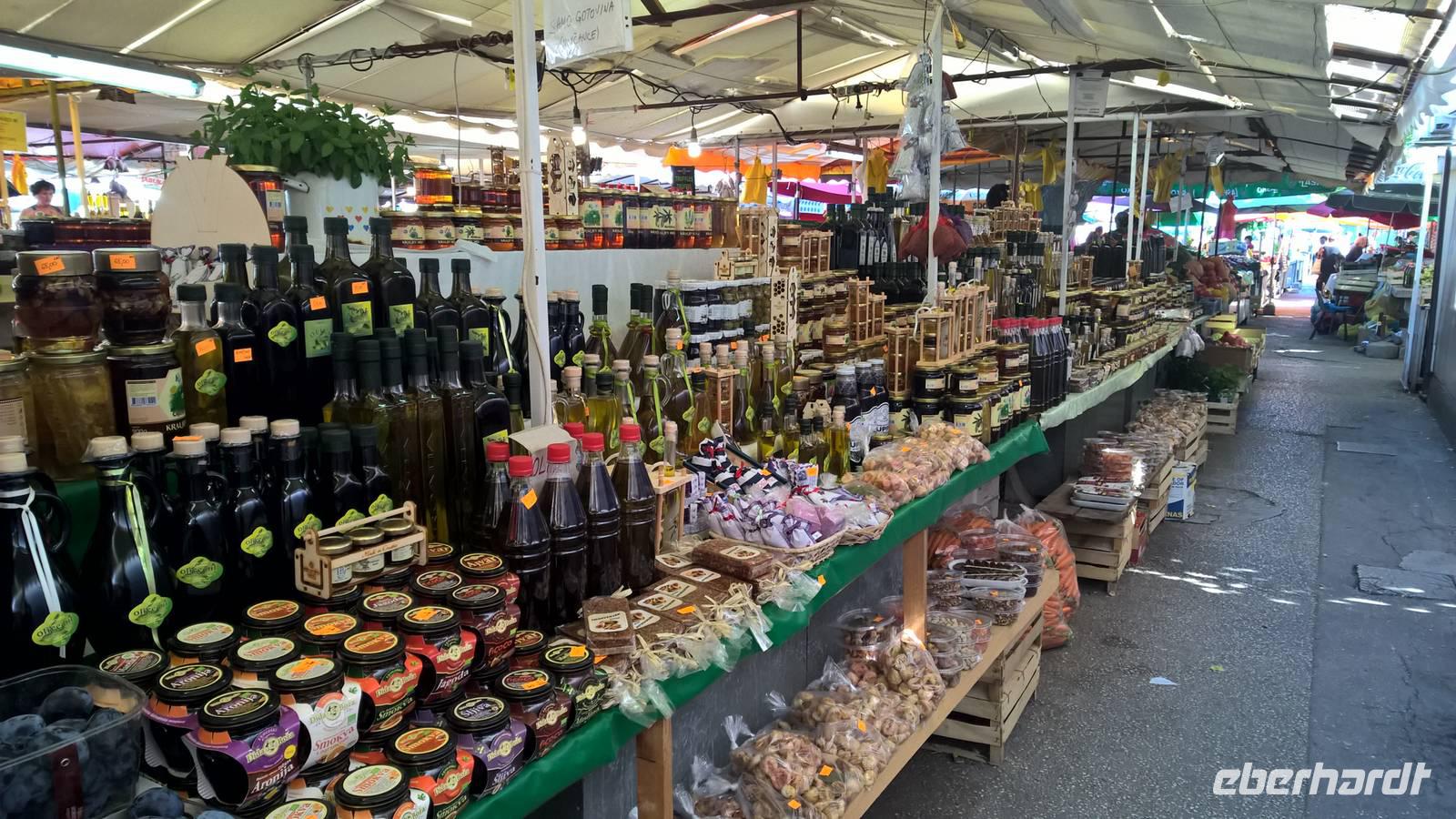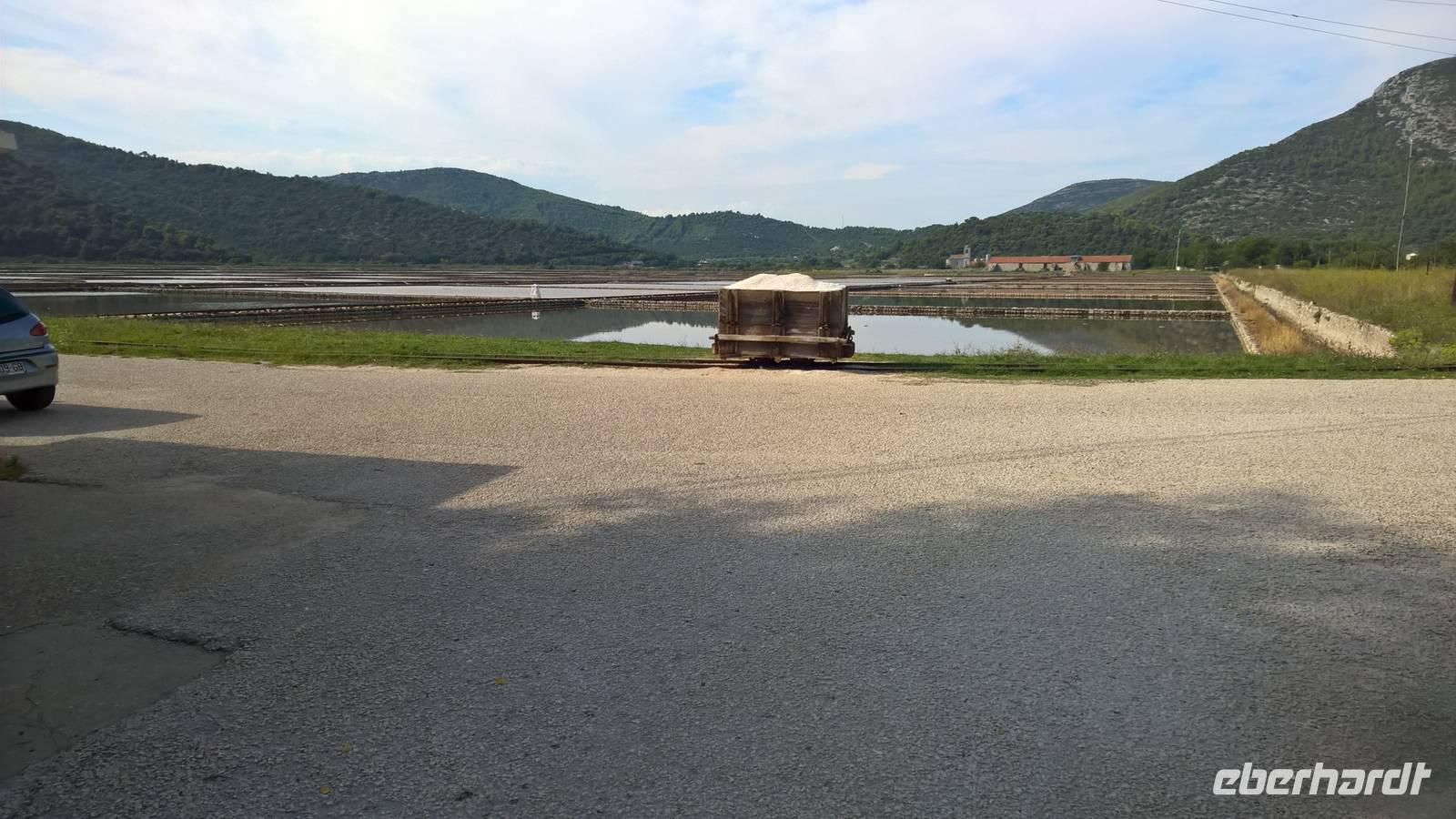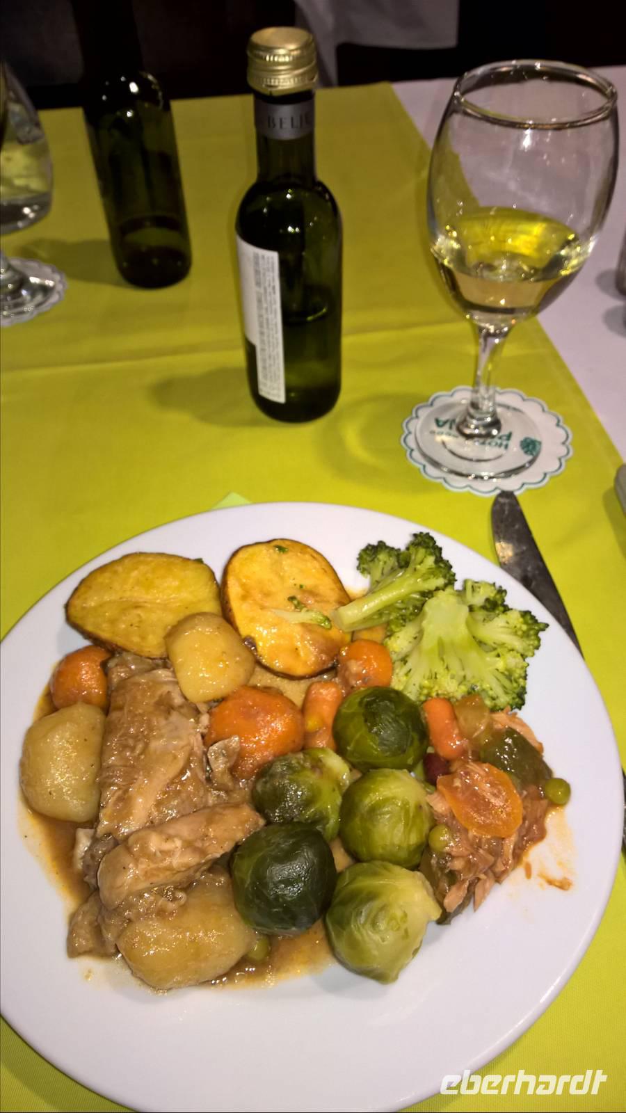 Pünktlich und gut gestärkt treffen wir uns nach dem Frühstück mit Boris vorm Hotel. Wir steigen in den Bus und fahren gen Norden, in die Berge. Es ist unglaublich, wie schnell sich die Landschaft während der Strecke verändert und was sie für verschiedene Facetten zu bieten hat. Unterwegs steigt Bernada dazu, eine Frau die in Deutschland geboren ist aber nun seit über 15 Jahren in diesem Gebiet wohnt und uns gern mehr darüber erzählen möchte. Unser erster Stopp findet am Grünen See statt, der uns wieder einmal mit einer unglaublich türkisen Farbe entgegen leuchtet. Wir schießen unsere Fotos und fahren weiter. Am Roten See bietet uns Boris kostenloses Bier an- wenn wir es schaffen, einen Stein bis ins Wasser zu schießen. Das Bier müssen wir zahlen. Nun kommen wir in der kleinen Stadt Imotski an und lassen den Bus auf dem Parkplatz stehen. Zu Fuß besichtigen wir die alte Festung Topana und den darunterliegenden Blauen See. Danach schauen wir uns den Stadtkern an, in dem wir etwas Freizeit bekommen und einen Kaffee trinken oder ein erfrischendes Eis schlecken. Unsere Fahrt führt uns zwei Kilometer weiter, zu einem besonderen Platz im Freien: der Grünen Kathedrale. Hierbei handelt es sich um einen großen Park, in dem eine Kathedrale ohne Dach und ohne Wände steht. Es gibt einen Torbogen mit Glocke und mehrere Säulen, sowie einen großen Altar mit dazugehörigem Kreuz. Die Frage, warum das Kunstwerk nun also Grüne Kathedrale heißt, erübrigt sich beim Blick nach oben in die Baumkronen und das Blätterdach. Unsere knurrenden Mägen erwartet nun ein besonderes Highlight. Wir kehren in einem alten Familien-Gasthof ein, in dem wir traditionell bekocht werden. Hier schauen wir uns die Zubereitung unserer Speisen unter großen Metallglocken an und die Stimmung steigt mit jedem Schnaps noch ein bisschen mehr. Das Restaurant ist direkt an einem Fluss gelegen und macht einen sehr idyllischen Eindruck. Als wir zu Tisch gebeten werden staunen wir nicht schlecht: Es gibt Kartoffeln, saftiges Fleisch, Salat und Brot aus großen Messing-Schüsseln und es schmeckt hervorragend. Was nicht zu überhören ist, da man kaum Gespräche und hauptsächlich Besteck klappern und Gläser klirren hört. Dies war tatsächlich das beste Essen, was wir bisher vorgesetzt bekommen haben. Wir loben die Familie des Gasthofes und bekommen zum Nachtisch frische Kreppelchen mit Puderzucker und Kaffee serviert. Die Hälfte des Aufenthalts werden Lieder gesungen und Gedichte aufgesagt und wir haben einen wunderbaren frühen Nachmittag inmitten der Berge und weitab von touristischen Verkaufsständen. Nach dem Abendessen im Hotel verabreden wir uns zu einem letzten gemeinsamen Zusammensitzen, denn am morgigen Tag verlässt uns eine Familie, die mit dem Auto angereist ist. Wir stoßen noch einmal an einer langen Tafel auf den so vielfältigen und spannenden Urlaub in Kroatien an und ich bekomme einen Ritterschlag für meine erste erfolgreich begleitete Reise bei Eberhardt Travel. Ein schönes Gefühl der Verbundenheit und der ein oder anderen neu gewonnenen Freundschaft erfüllt den Raum.