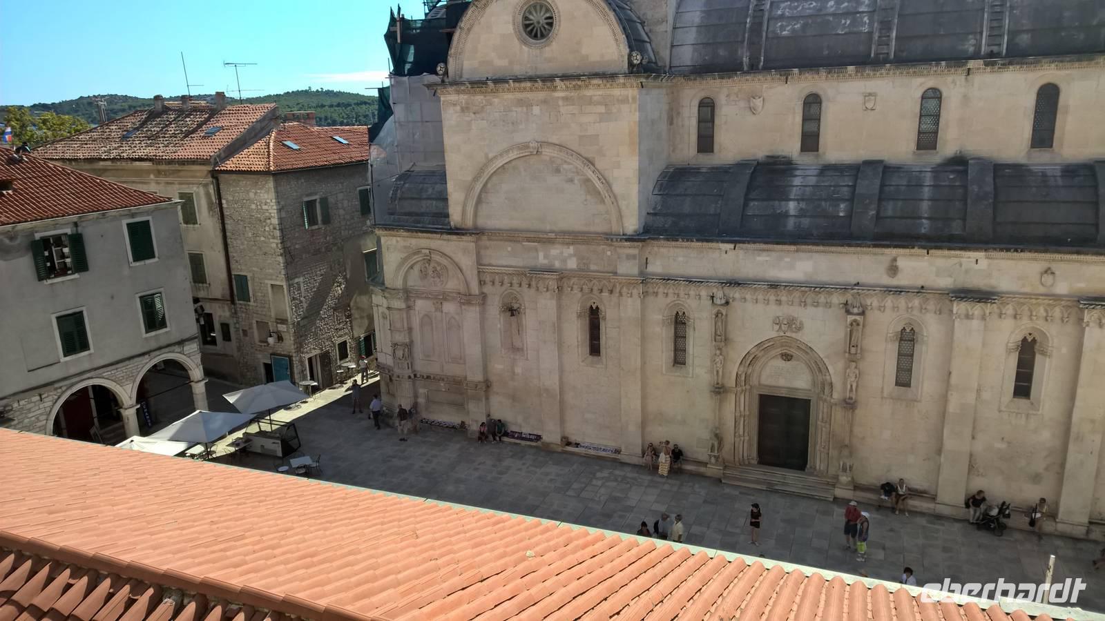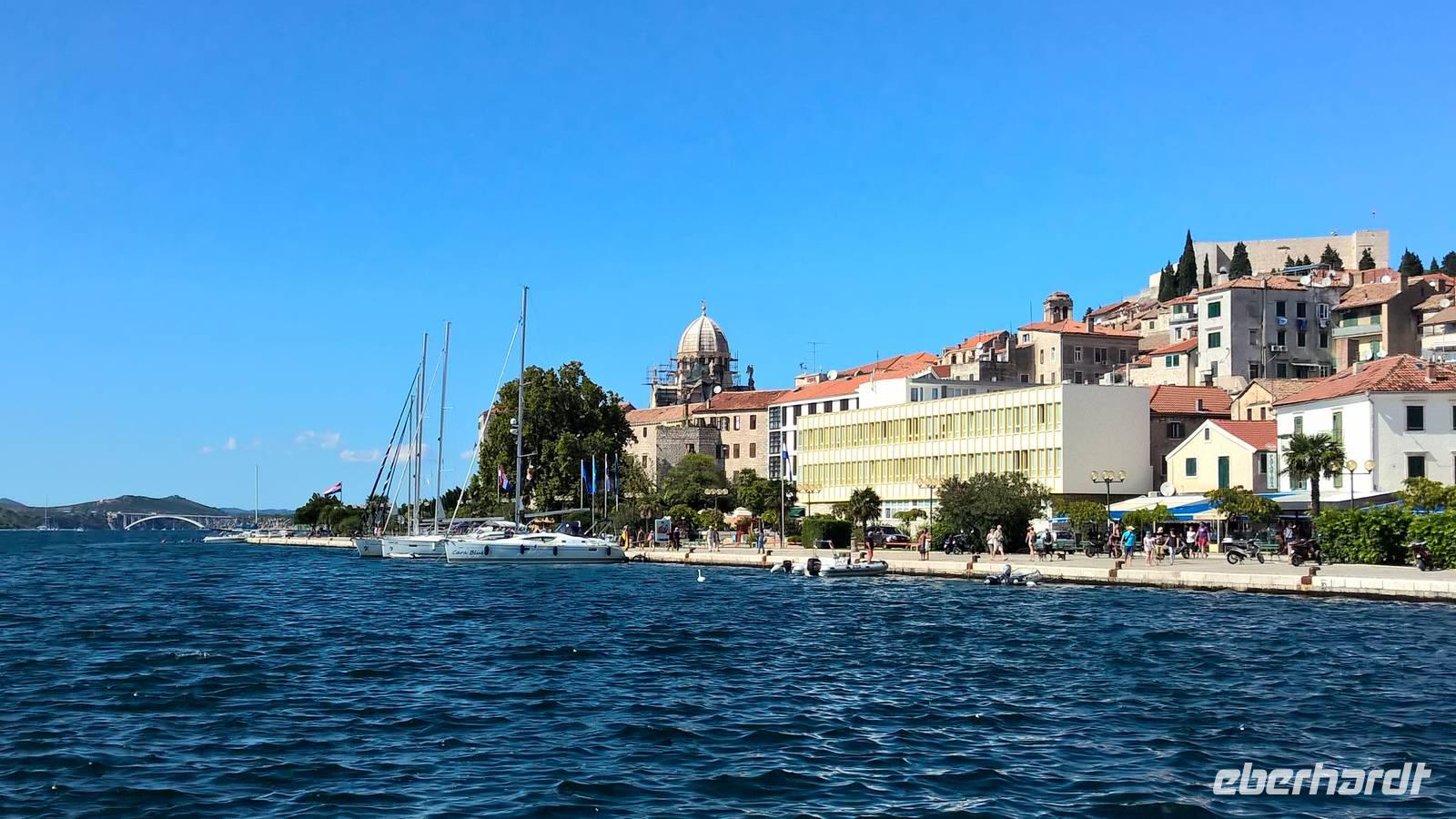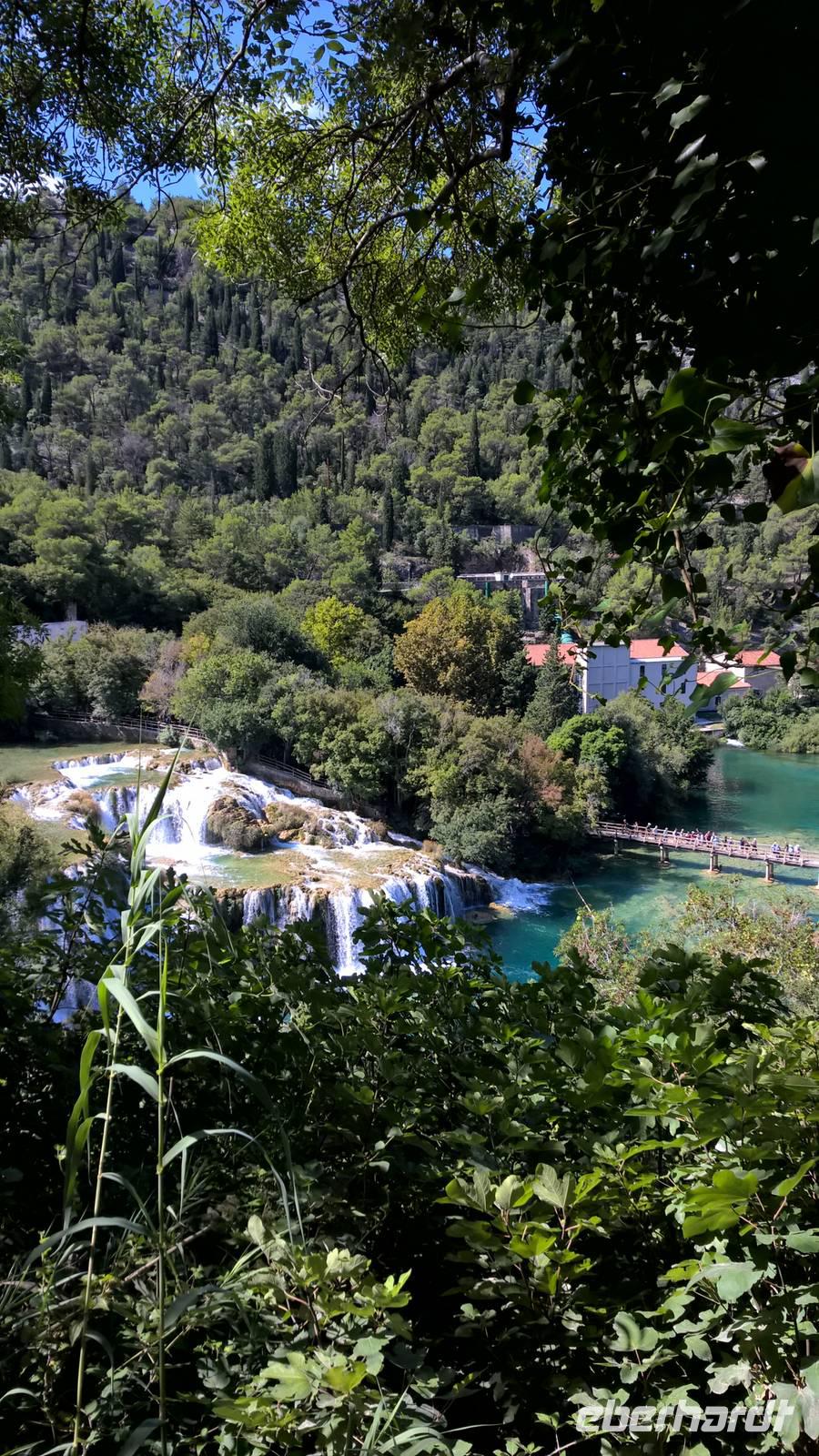 Heute machen wir uns auf den Weg zu den berühmten Krka-Wasserfällen. Nach einem stärkenden Frühstück sitzen wir alle halb neun im Bus und Silvija unterhält uns mit hübschen Gedichten und kurzen lustigen Geschichten. Den ersten Stopp legen wir an der Raststätte Gosp Od Puta ein- der zweitschönsten ganz Europas und schönsten ganz Kroatiens. Als wir aus dem Bus steigen freuen wir uns über die frische Brise, die uns durch die Hemden und die Haare fährt. Hier ist es schon früh sehr warm und die Sonne strahlt kräftig vom wolkenlosen Himmel. Wir laufen durch einen Tunnel und kommen auf die Aussichtsplattformen, einhundert Meter über dem Meer. Und wir sehen mit eigenen Augen, aus welchem Grund dieser Rastplatz die „Goldene Blume" gewonnen hat. Der Blick auf Scradin ist einer dieser Momente, in denen mir bewusst wird wie schön es doch ist, Reisen zu können. Das Örtchen liegt in einer hübschen Bucht, die von Booten und kleineren Seglern verziert wird. Wir bleiben länger, als die geplante Abfahrtszeit vom Busfahrer festgelegt wurde. Aber wir haben ja auch Urlaub. Als der Bus sich wieder in Bewegung setzt, nutze ich die Gelegenheit um auch mich noch einmal genauer vorzustellen und ein paar Einblicke in mein Leben zu geben. Halb elf kommen wir am Krka-Nationalpark an. Der Weg hinunter ins Tal ist besonders nervenaufreibend und schweißtreibend: Boris lenkt unseren riesigen Reisebus über schmale Serpentinen mit scharfen Kurven und ohne Leitplanke hinunter ins Tal. Dabei begegnen uns drei andere Busse, nicht gerade mit geringer Geschwindigkeit. Der ganze Bus quiekt, aber Boris und Silvija bleiben gelassen und lachen über uns. Hier in Kroatien ist so etwas keine Seltenheit. Als wir am Parkplatz angekommen sind und aus dem Bus steigen, atmen alle tief und erleichtert durch. Ist ja nochmal gut gegangen! Nun kann unsere Wanderung beginnen. Silvija führt uns mit ihrem rosafarbenen Regenschirm weiter hinunter, zu den Wasserfällen- vorbei an glasklaren, durch den Kalkstein türkisfarbenen Seen, in denen sich viele Fische tummeln. Die Fische scheinen genau so einen Spaß daran zu haben, uns Menschen zu beobachten, wie wir es haben während wir unsere Fotoapparate auf sie halten. Wir kommen auf eine steinerne Plattform und erblicken die ersten tosenden Wassermassen, die über abgerundete Steine in einen ebenso klaren, türkis-blauen See hinabstürzen. Beeindruckt von diesen Naturgewalten folgen wir einer Steintreppe hinunter und treffen auf ein faszinierendes Ausstellungsstück aus der Geschichte: die Turbine des ältesten Kraftwerks ganz Europas, aus dem Jahre 1895. Neben diesem gut zwei Meter hohen Koloss aus Stahl haben mehrere ältere Frauen ihre Tische mit frischen Äpfeln, Pflaumen, Kirschen und Trauben, selbstgebrannten Mandeln, getrockneten Feigen und in hübsche Flaschen und Gefäße abgefüllte Öle und Marmeladen geschmückt. Der Abstieg geht weiter und wir erreichen die berühmte Brücke, von der aus der Blick auf die Wasserfälle ganz frei ist. Vor den im See badenden Menschen und nahe dem bekannten Wasserfall entstehen viele schöne Erinnerungsfotos. Nachdem wir die Brücke alle passiert haben und uns auf einer großen Wiese versammeln, auf der ein paar Restaurants und kleinere Holzbuden für hungrige Gäste aufgebaut sind, zeigt uns Silvija den Weg der vor uns liegt. Es geht einen schönen Holzsteg hinauf, vorbei an unzähligen Bächen und weiteren hinter Büschen und Gräsern versteckten Wasserfällen. Wir sind begeistert von der trotz des ganzen Tourismus so unberührten Natur um uns herum und staunen über all die herrlichen Farbtöne und Licht- und Schattenspiele. Nach einer guten Stunde kommen wir am Ende des Rundganges, beim Ethno-Museum raus. Hier werden erhaltene Wassermühlen aus dem 19. Jahrhundert beim Mahlen von Getreide präsentiert. Mit einer Ausstellung wird uns ermöglicht, eine Zeitreise in die Geschichte rund um das Krka-Gebiet zu unternehmen. Nach dem Museum haben wir Freizeit. Wir ruhen uns bei einem Milchkaffee oder einem erfrischenden Getränk im Panorama-Restaurant aus, laufen den Holzsteg wieder hinab und genießen noch einmal in aller Ruhe die wunderschöne Umgebung, holen uns in einer Holzbude auf der großen Wiese einen Palatschinka oder schwimmen ein paar Züge im erfrischenden, glasklaren Wasser des Sees. Zur ausgemachten Uhrzeit finden sich alle wieder im Bus ein und es geht noch einmal die Serpentinen hinauf, im stop and go-Prinzip. Unser nächstes Ziel ist Sibenik. Wir treffen auf Nicole, eine junge Stadtführerin, die uns an der Promenade entlang bis in die Altstadt hinein führt. Sie erzählt uns, aus welchem Grund viele Ecken der Stadt zugemauert sind und was es mit den in die Häuser eingemeißelten Säulen und deren unterschiedlichen Höhen auf sich hat. Wir laufen durch viele schmale Gassen, vorbei an hübsch dekorierten Hauseingängen und steigen Stufen aus abgelaufenen, glatten Steinen hinab, an Hibiskusblüten vorbei bis zur berühmten St.-Jakob Kathedrale. Als wir mitbekommen, wie begeistert Nadine und Silvija von der Kathedrale sind, beschließen wir, uns auch innerhalb des Gebäudes einmal umzusehen. Leider wird gerade um den Hauptaltar herum gebaut, aber wir setzen uns dennoch in die Holzbänke und lauschen Nadines Erzählungen. Dank der detailreichen Ausschmückungen fällt es uns leicht, sich ein paar Jahrhunderte zurück zu versetzen. Auch der Höhepunkt der Kathedrale, das Baptisterium oder sogenannte „Perle der kroatischen Sakralkunst" aus dem 15. Jahrhundert ist ein beeindruckendes Baukunstwerk. In Stein gemeißelte Engel, Propheten und kunstvolle Musterungen über unseren Köpfen sprechen selbst für das unglaubliche Handwerk eines großartigen Künstlers. Wir treten vom Taufbecken hinaus ins Freie und beenden unsere Stadtführung. Die Freizeit nutzen wir, um uns noch ein cremiges Eis in bunten Waffeln zu holen, bevor wir die Rückfahrt zum Hotel antreten.
