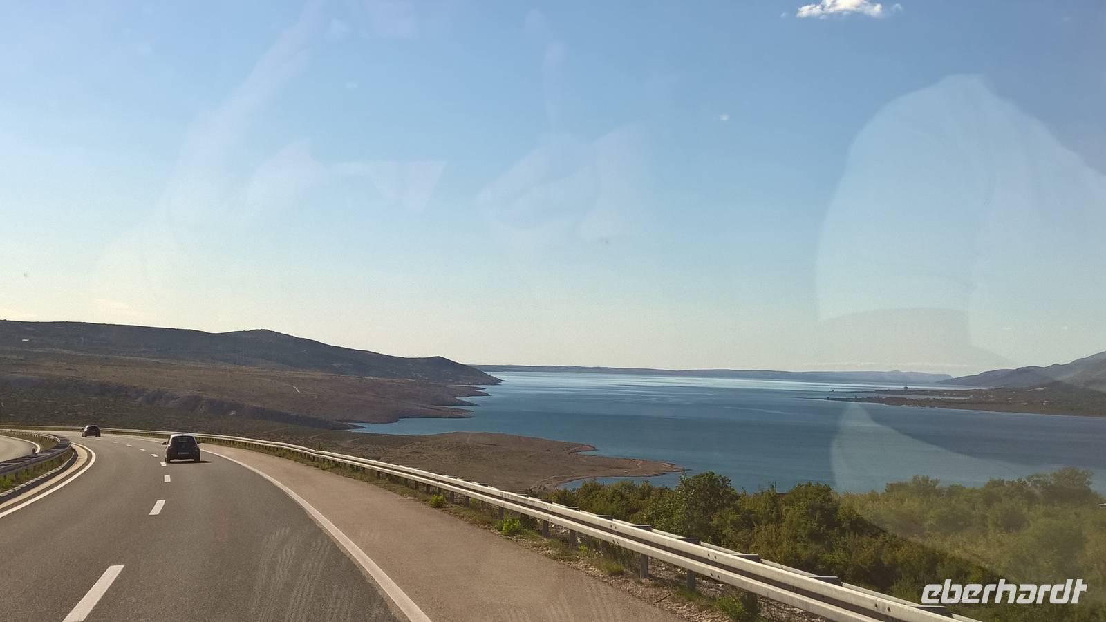 Nach einem ausgiebigen Frühstück machen wir uns auf den Weg in die Altstadt von Zadar. Wir treffen auf die aufgeschlossene und hübsche Angela, die uns als erstes zu Zadars Lichtinstallation, den Klavier-Bänken und der beeindruckenden Wasserorgel am Hafen führt. Mit Witz und Charme geleitet sie uns durch das lebendige und pulsierende Städtchen, vorbei am Forumsplatz, unzähligen Ausgrabungen und dem Kloster in dem auch heute noch 16 Nonnen leben- 16 Nonnen, von denen 13 über 60 Jahre alt sind. Nach Beendigung der Führung haben wir Zeit, uns auf eigene Erkundungstouren zu begeben. Dabei spazieren wir durch die idyllische Parkanlage, setzen uns für einen leckeren Cappuccino unter die Sonnenschirme eines Cafés oder erfrischen uns mit einem kühlen Eis. Wir klettern auf die Stadtmauern Zadars, um den Blick in die Hafenbucht zu genießen und inspizieren die süßen Trauben und Nektarinen auf dem Markt, die von alten Frauen mit Kopftüchern feil geboten werden. Um 14 Uhr treffen wir uns alle wieder am Bus und sind gespannt auf die Insel Pag. Auf der Fahrt finden sich ein paar mutige Gäste, die sich uns vorstellen und uns einen kleinen aber erfrischenden Einblick über ihr Leben und ihre Familien verschaffen. Wir freuen uns und klatschen Beifall. Während die Vegetation um uns herum schon karger wird, haben wir einen immer besseren Blick auf die massive Gebirgswand im Norden. Wir legen einen Fotostopp ein und genießen still den Anblick der kleinen Inselgruppen, die mitten im ruhenden, tiefblauen Meer liegen. Das Gebirge scheint zum Greifen nah und Boote, die weit unter uns Schaumspuren im Wasser hinterlassen, wirken wie Spielzeugschiffchen auf der sonst so glatten Wasseroberfläche. Wir halten diesen Moment mit unseren Kameras fest und setzen uns zurück in den Bus. Nun geht es über die hohe Brücke, die schon vom Fotostopp aus gut zu sehen war und bei starker Bora gesperrt wird. Die Straße führt uns durch Felder mit mannshohen Pflanzen, vorbei an der Salzfabrik und Pag ist nicht mehr weit. Noch vor Besichtigung des kleinen Städtchens fährt uns Boris über eine kurvige Straße hinauf, zu einem weiteren Aussichtspunkt. Von hier aus hat man das Gefühl, einfach alles zu sehen! Zu unseren Füßen stehen die kleinen Häuser Pags ordentlich aufgereiht -mit Blick aufs Meer- nebeneinander. Das Wasser in der hübschen Hafenbucht ist hellblau und wird zum offenen Meer hin dunkler und mystischer. Hinter den kargen Felsen am Horizont ragt das Gebirge majestätisch über die Wolken hinaus. Hier schießen wir unser erstes Gruppenfoto. Danach begeben wir uns an die Promenade Pags, an der unsere kleine Stadtführung beginnt. Wir suchen eine ältere Dame, die uns die besondere Häkelkunst zeigt deren Ergebnisse an jeder Ecke zu begutachten sind. Leider werden wir nicht fündig: es ist halb vier und das Städtchen ruht verschlafen in der Nachmittagssonne. Siesta-Zeit, wie uns Silvija erklärt. Wir holen uns noch ein Eis, genießen die romantische Ruhe der 2000-Einwohner-Stadt und schlendern an der Promenade zurück zum Bus. So geht ein schöner Tag in Dalmatien zu Ende.