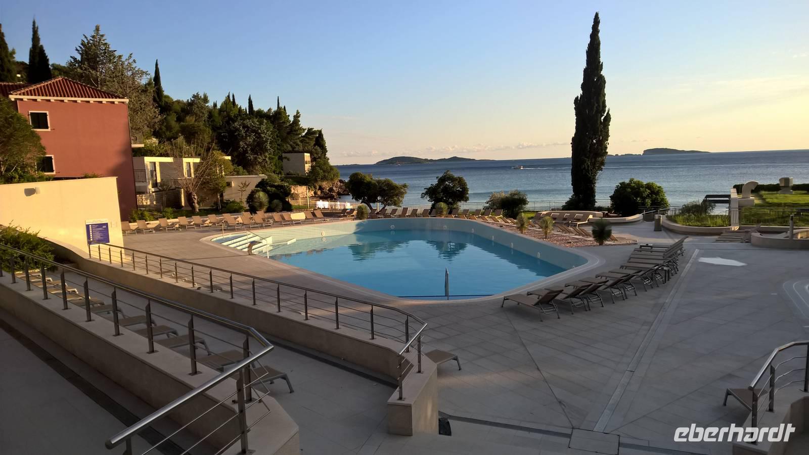Den heutigen Tag nutzen viele, um die Umgebung oder gar die Berge hinter dem Hotel zu erkunden. Es werden Ausflüge nach Makarska unternommen, halbtägige Wanderungen auf eigene Faust gemacht oder wieder sonnige Stunden an unserem schönen Kiesstrand vorm Hotel verbracht. Auch der Pool wird von uns getestet. Und so kommt es, dass ich am Abend in schon sehr viel braunere Gesichter schaue als die Tage zuvor. Das Abendbrot scheint ebenfalls allen zu schmecken: Es gibt ein riesiges Angebot an Salaten, verschiedene Suppen, viel Gemüse mit Fisch oder Fleisch- und auch das Nachspeisen-Buffet lässt kaum einen Wunsch offen. Zur Live-Show sitzen viele im Außenbereich, aber verschwinden doch pünktlich auf ihren Zimmern, denn morgen haben wir noch einmal einen gemeinsamen Ausflug geplant.