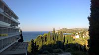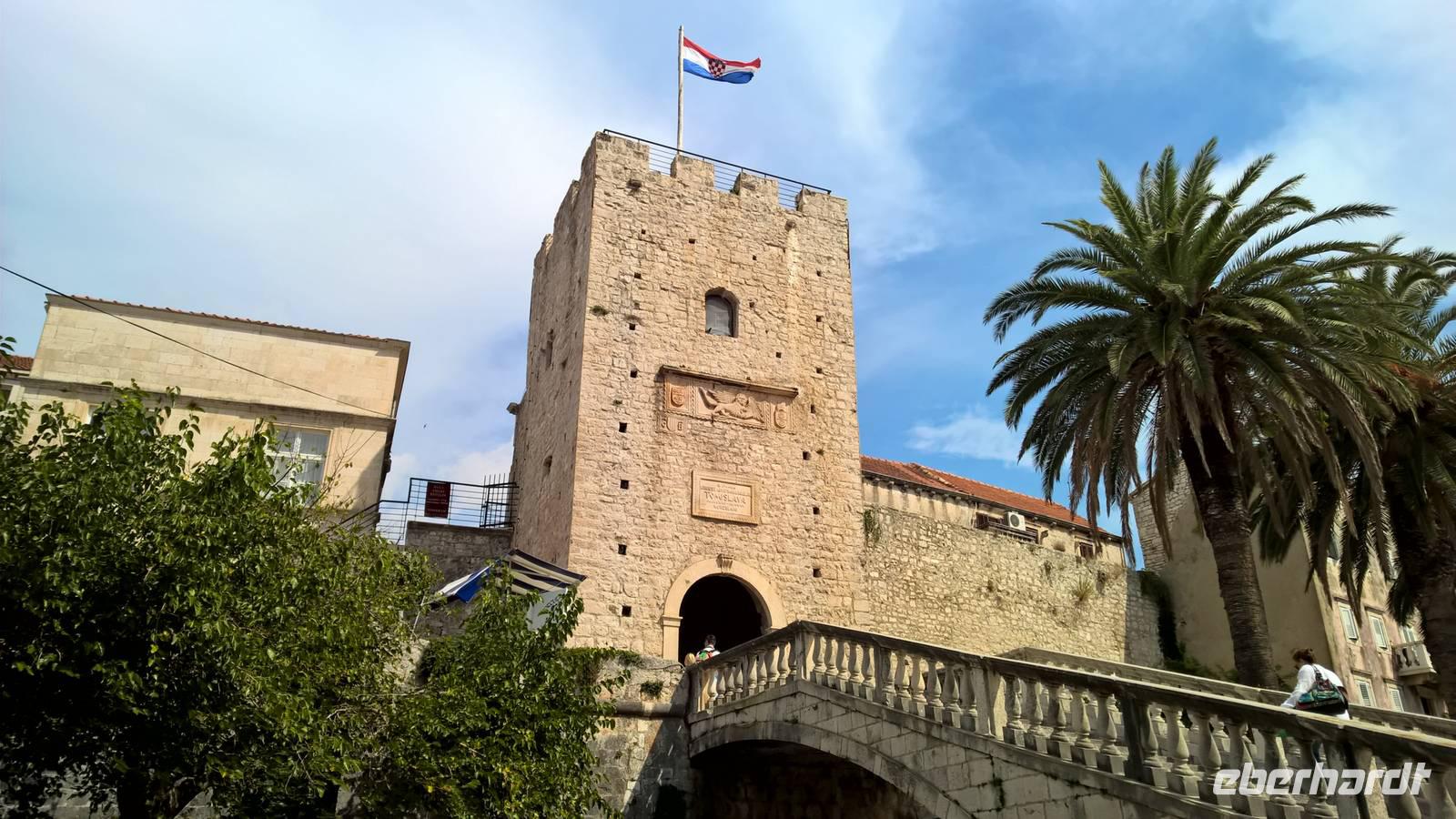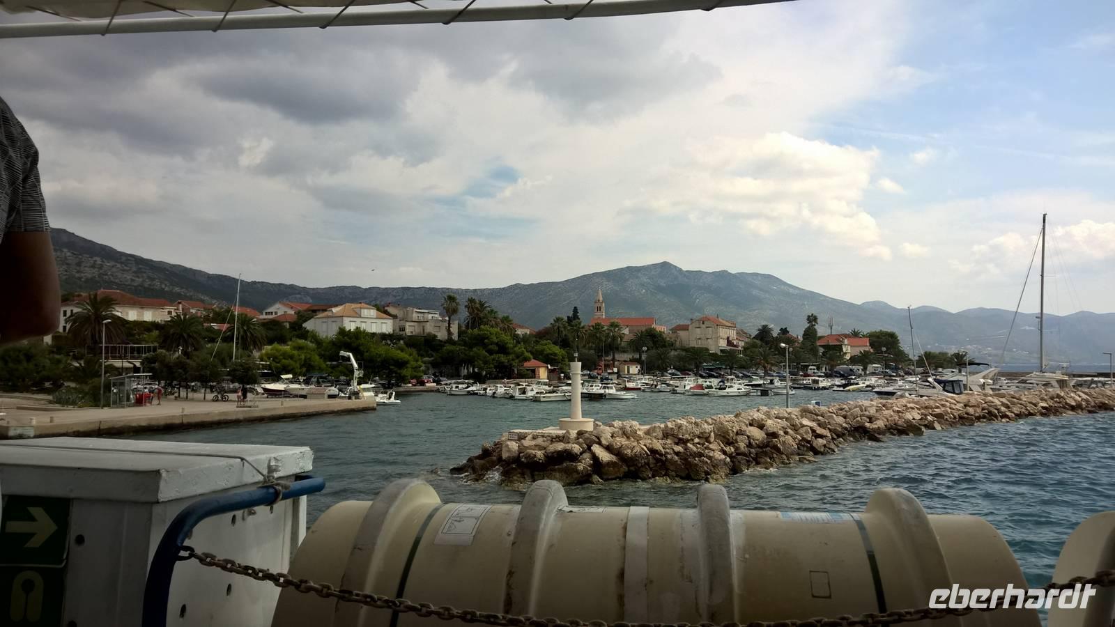 Nach dem Frühstück starten wir um 8 Uhr und fahren die Küstenstraße entlang auf die Halbinsel Peljesac. Hier leben die Leute vom Weinanbau und der Salzherstellung, wie uns Silvija erzählt. Als wir das kleine Örtchen Ston erreichen, legen wir eine Pause ein. Ein paar von uns erklimmen wieder die Stadtmauer, die noch steiler und länger aussieht als die Dubrovniker Mauer, andere gehen auf den kleinen Marktplatz und holen sich frisches Obst oder schauen sich die Salzsalinen aus der Nähe an. Die Fahrt geht weiter und führt uns durch Waldgebiete, die aufgrund der großen Hitze diesen Sommer von Bränden zerstört wurden. Ein erschreckender und schöner Anblick zugleich, da an den verbrannten Baumstämmen teilweise schon wieder grüne Triebe sprießen. Wir kommen an einem hübschen Hafen an und sehen, wie unsere kleine Fähre einläuft. Die Plätze am oberen Deck sind frei, und so thront fast die gesamte Gruppe mit perfektem Blick übers Meer auf dem Boot. Nach einer viertel Stunde Meeresbrise im Gesicht kommen wir am Ziel, der kleinen Insel Petrcane an. Unsere Stadtführung geht über den Hauptplatz und hinein in das romantische Städtchen, dessen Gassen wie Fischgräten von der Hauptstraße weggehen. Wir setzen uns an die hübsche Promenade und genießen erst einmal einen Teller Pasta mit Meeresfrüchten oder schauen uns das Marco Polo-Museum an. Auch die Neustadt mit dem gut belegten Yacht-Hafen ist beeindruckend. Pünktlich zehn Minuten vorm Ablegen unseres Schiffes treffen alle Gäste wieder am Fähranleger ein. Auch auf der Rückfahrt haben wir das Glück, gesammelt an Deck des Bootes den schönen Ausblick zu genießen und den hunderten Kyte-Surfern beim Wellenjagen zuzuschauen. Auf dem Rückweg halten wir an einem Aussichtspunkt, an dem auch der regional hergestellte Wein verkauft wird. In gesammelter Mannschaft verkosten wir die feinen Sorten und kaufen auch die ein oder andere hübsche Flasche. Mal schauen, welche Koffer auf dem Rückflug zu viel wiegen...