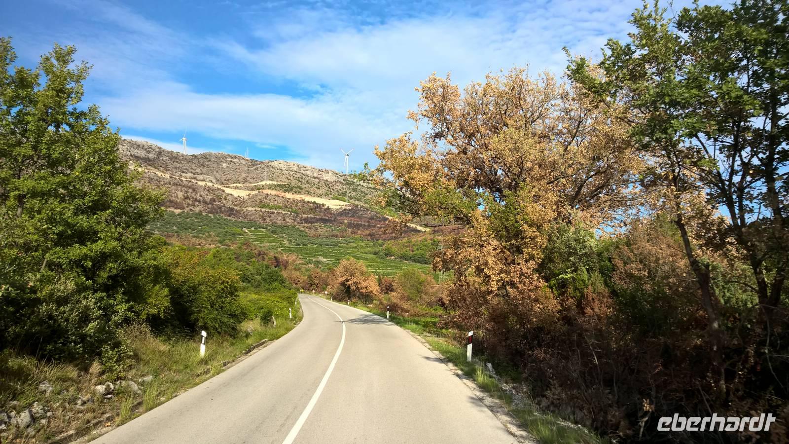 Am heutigen Tag haben wir einen weiten Weg vor uns: Es geht von Ptrecane nach Mlini. Nachdem alle ihre Koffer im Bus verladen haben starten wir. Silvija unterhält uns mit einem ihrer vielen niedlichen Gedichte- diesmal erzählt sie, wie sich der Kofferinhalt der Reisenden im Laufe der Jahre ändert. Der ganze Bus stimmt ihr zu. Unser erster Stopp ist eine Raststätte am Kanal von Sibenic. Die Muschelzucht-Stellen im Wasser sind hübsche Fotomotive. Wir vertreten uns während unserer sogenannten japanischen Pause etwas die Beine und weiter geht die Fahrt. Unser nächster Halt ist überhalb der kleinen Stadt Primosten. Diese liegt in Form eines Fisches direkt am Wasser. Wir legen noch einmal eine kurze Pause ein, genießen die wunderbare Aussicht und freuen uns auf Trogir, wo unsere heutige Stadtführung geplant ist. In weniger als einer Stunde befinden wir uns schon mitten im bunten Getümmel des Stadtverkehrs. Die Führung beginnt am Hafen und Markt, für den wir später noch genügend Freizeit bekommen werden. Erst einmal werden wir durch einen hohen Steinbogen geführt, auf dem die Statue des heiligen Johannes thront, gefolgt von der wundervoll verzierten Kathedrale und der Stadtloge, in der uns vier Männer - eine sogenannte Klappa a capella - ein paar Lieder trällern. In unserer Freizeit schlendern wir die wunderschöne Hafenpromenade entlang, unter großen Palmen und neben dem hellblauen Meer, erkunden die kleineren Gassen und staunen über die vielfältigen Angebote auf dem Markt. Unsere Fahrt geht weiter: Nach einem kurzen Fotostopp bei Makarska passieren wir die bosnische Grenze. Da in Bosnien Lebensmittel und andere Produkte preiswerter sind als in Kroatien pausieren wir an einem Rastplatz mit Café, Restaurant und Supermarkt. Nachdem sich alle mit Schokolade, Pralinen und Äpfeln eingedeckt haben brechen wir auf und erreichen eine Stunde später unser Hotel in Mlini. Wir checken ein und freuen uns auf das Abendbrot und die kommenden Tage.