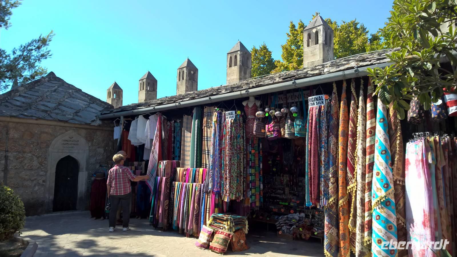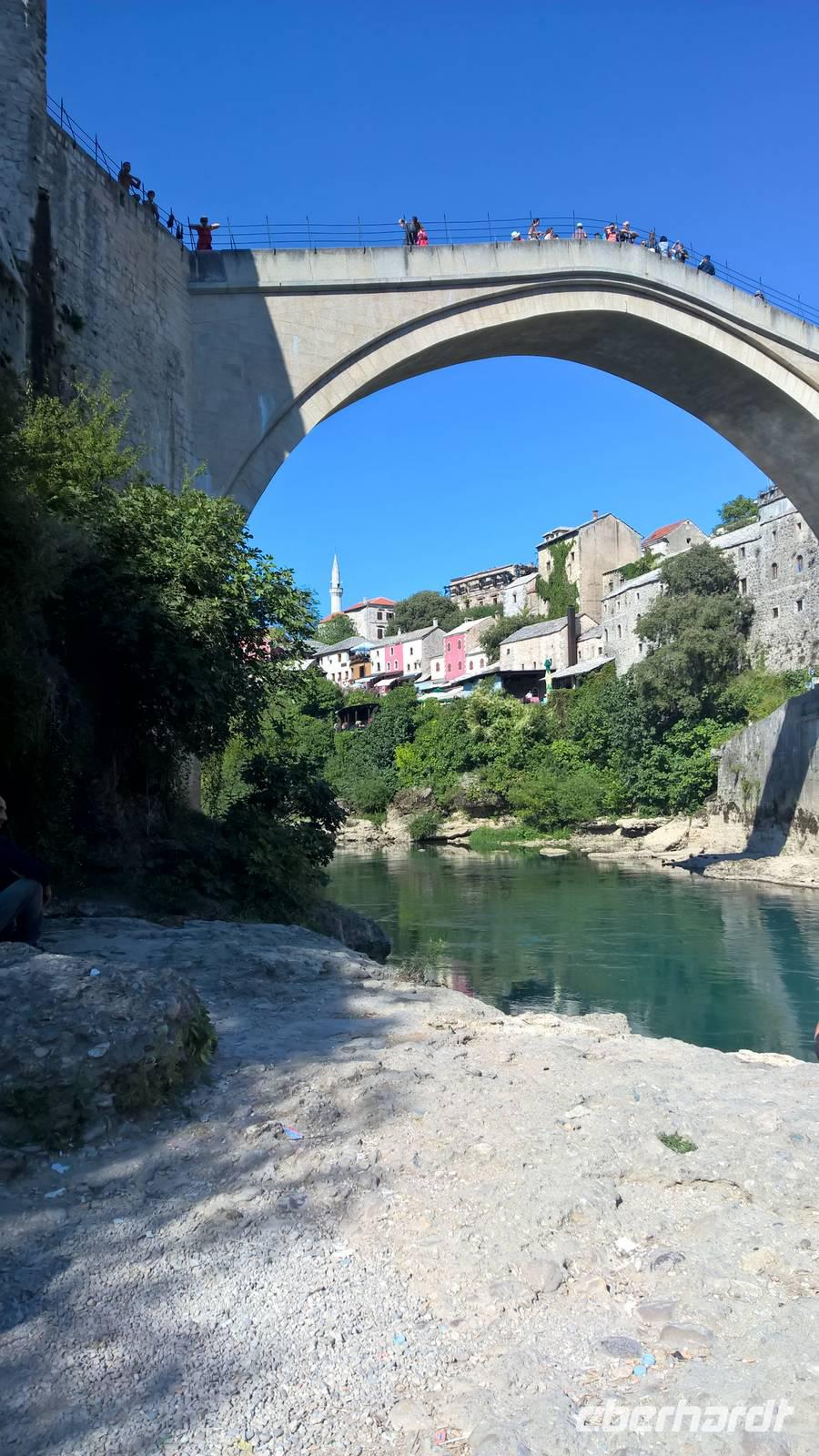 Mit gepackten Koffern machen wir uns auf den Weg nach Mostar. Um uns die Fahrt interessanter zu gestalten, gibt Silvija ein kleines Notitzbuch herum, in das jeder seine noch offenen Fragen an sie hineinschreiben kann. Eine schöne Idee, durch die wir erfahren wie Weihnachten und Neujahr in Kroatien gefeiert wird, wie die vielen Muscheln an der Küste gefüttert werden oder wie Silvija zu ihren guten Deutschkenntnissen gekommen ist. Wir halten wieder an unserem altbekannten Rastplatz in Bosnien, an dem sich diesmal nicht mit Schokolade eingedeckt wird sondern Austern verkostet werden! Während die Straße uns wieder auf kroatischen Boden führt, werden - bis wir die etwas strenger kontrollierte Grenze erreichen - angeregt Meinungen über Austern ausgetauscht. Glücklicherweise werden unsere Pässe nicht eingesammelt, was uns eine Menge Zeit erspart. Nachdem ich einen kleinen Heiratsantrag des bosnischen Grenzpolizisten freundlich ablehne und mich lieber wieder in den Bus zurückziehe, sitzt unser Boris hinterm Steuer und wir befinden uns in Bosnien und Herzegovina. Der letzte Rest der Strecke ist schnell bewältigt und wir werden von der quirligen Stadtführerin Viki in Mostar willkommen geheißen. Nun geht es zu Fuß über die Pflastersteine der kleinen Gassen, die alle aus dem Fluss Neretva gefischt wurden und deshalb rundgelutscht und glatt sind. Wir bahnen uns unseren Weg vorbei an Häusern, die noch Spuren des letzten Krieges aufweisen und unzähligen bunten Ständen, die wir in Kroatien überhaupt noch nicht gesehen haben- bis hin zur alten Brücke, dem Wahrzeichen des kleinen Städtchens. Auch hier glitzert das Wasser wieder grün in der Sonne und junge Männer sammeln Geld, um danach vor den Augen der Zuschauer hinunter ins kühle Nass zu springen. In unserer Freizeit halten wir nun doch am ein oder anderen bunten Stand an und schauen uns bunte Teppiche, Täschchen und Schüsseln an, deren Musterungen sehr an orientalische Verzierungen erinnern. Auch der Markt wird erkundet und bosnische Eissorten müssen sich unseren geschmacklichen Tests unterziehen. Gegen halb fünf checken wir in unserer Unterkunft für die Nacht ein und begeben uns zum Abendbrot.