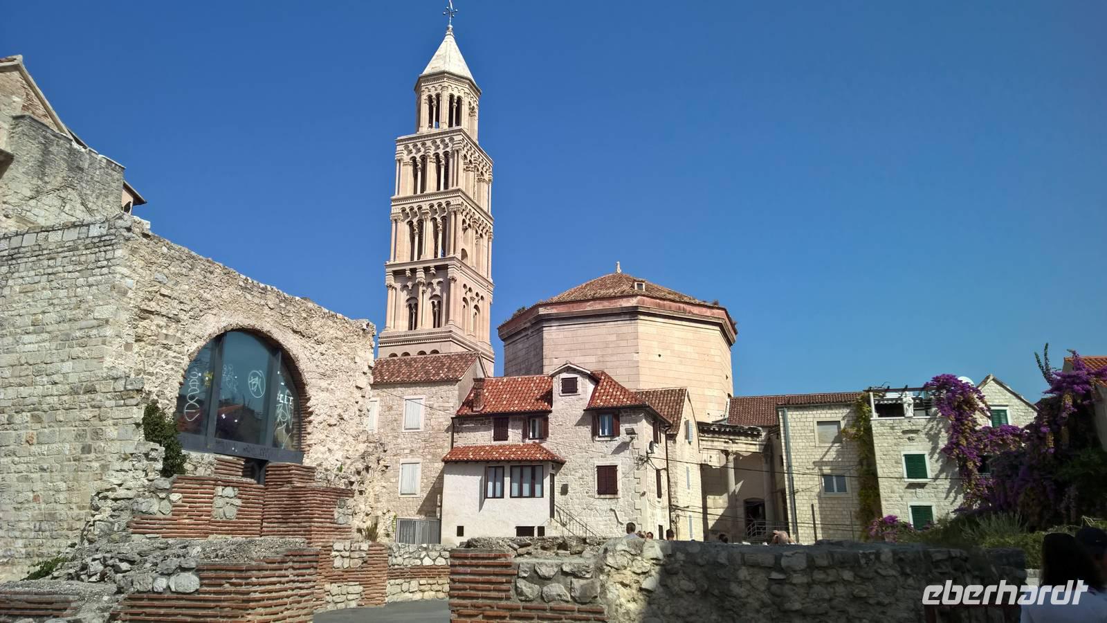 Nach dem Frühstück checken wir aus und Boris steht pünktlich mit dem Reisebus vor den Pforten des Hotels. Wir laden unsere Koffer ein und machen uns auf den Weg nach Split. Auf der Fahrt lese ich Ausschnitte des Reiseberichts als kleine Zusammenfassung unseres Urlaubs vor. So vergeht die Zeit recht schnell und wir erreichen Split. An der Uferpromenade des Hafens treffen wir auf unsere örtliche Stadtführerin Vesna, die uns in einer anderthalb-stündigen Führung mit dem Diokletianpalast bekannt macht. Dieser bildet die heutige Innenstadt Splits und hat viele beeindruckende Gewölbe, ein Mausoleum, die Taufkapelle des heiligen Johannes und viele weitere romanische und venezianische Gebäude zu bieten. Nach unserer letzten und besonders interessanten Stadtführung bekommen wir noch einmal Freizeit und erkunden den Flohmarkt, stöbern durch kleine Geschäfte, genießen einen Eiscafé am Hafen oder schreiben die letzte Postkarte nach Hause. Boris holt uns um zwei wieder ab und fährt uns den Rest der Strecke zum Flughafen. Unterwegs können wir dutzenden Flugzeugen beim Einfliegen aufs Rollfeld zuschauen - ein beeindruckendes Schauspiel. Wir verabschieden und bedanken uns noch einmal bei Boris und verschwinden mit unserem Gepäck in den Hallen des Flughafen-Gebäudes. Trotz der vielen Menschen verläuft das Einchecken ohne Probleme und wir finden uns am Abfluggate nach München ein. Unser Flieger hat 35 Minuten Verspätung als wir starten, aber Dank des Piloten landen wir in München mit einer Verspätung von nun mehr einer viertel Stunde. Wir verabschieden uns ein letztes Mal von den Berliner- und Leipziger-Gästen und wünschen uns allen noch eine gute restliche Heimreise. Auch unsere Maschine landet pünktlich in Dresden und wir nehmen unsere Koffer in Empfang. Die letzten herzlichen Umarmungen und guten Wünsche werden ausgetauscht und jeder tritt die letzte Etappe der Heimreise an. Was für eine schöne Reise, und wie schnell sie doch wieder vorbei war. Tja, 'C'est la vie.' würde der Franzose sagen. 'La vie, c'est belle.'