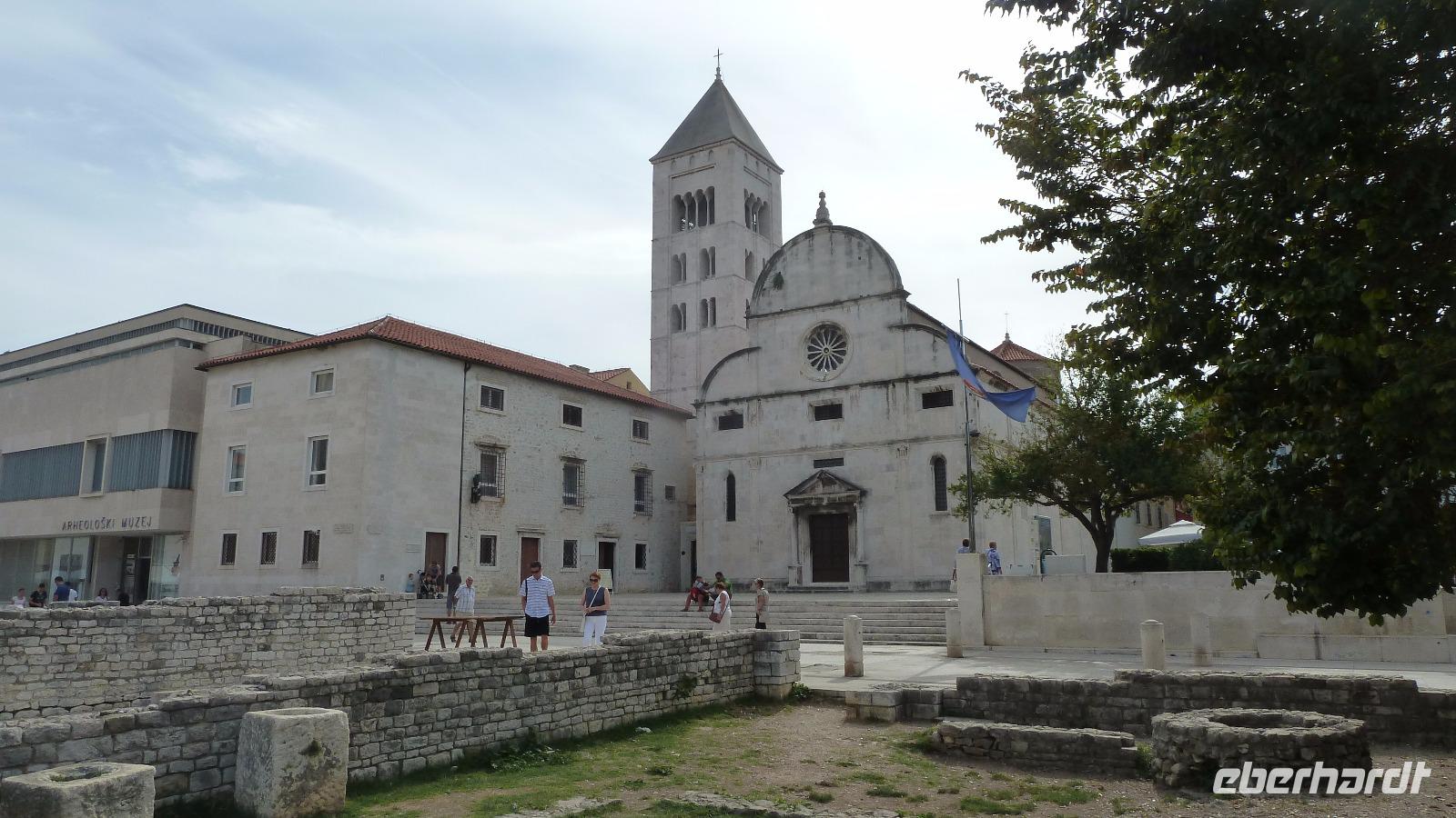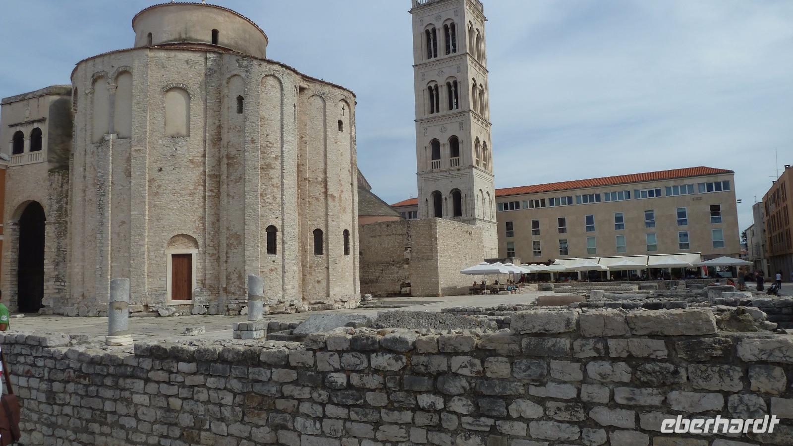 Am Sonntagmorgen ging es um 9:00 vom Hotel Pinija zuerst nach Zadar. Nach einer kurzen Fahrt an der Marina von Zadar entlang erreichten wir den Busparkplatz am Hafen von Zadar. Zdenka erwartete uns bereits und führte uns durch die Stadt der Römer, Awaren und Venezianer. Zadar ist eine Stadt der Kirchen, Baudenkmäler und Museen, eine Stadt zum Flanieren, Einkaufen sowie Sprungbrett zu vielen Inseln,