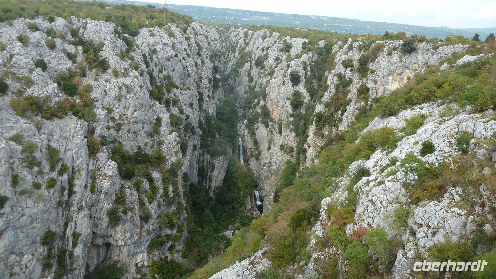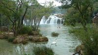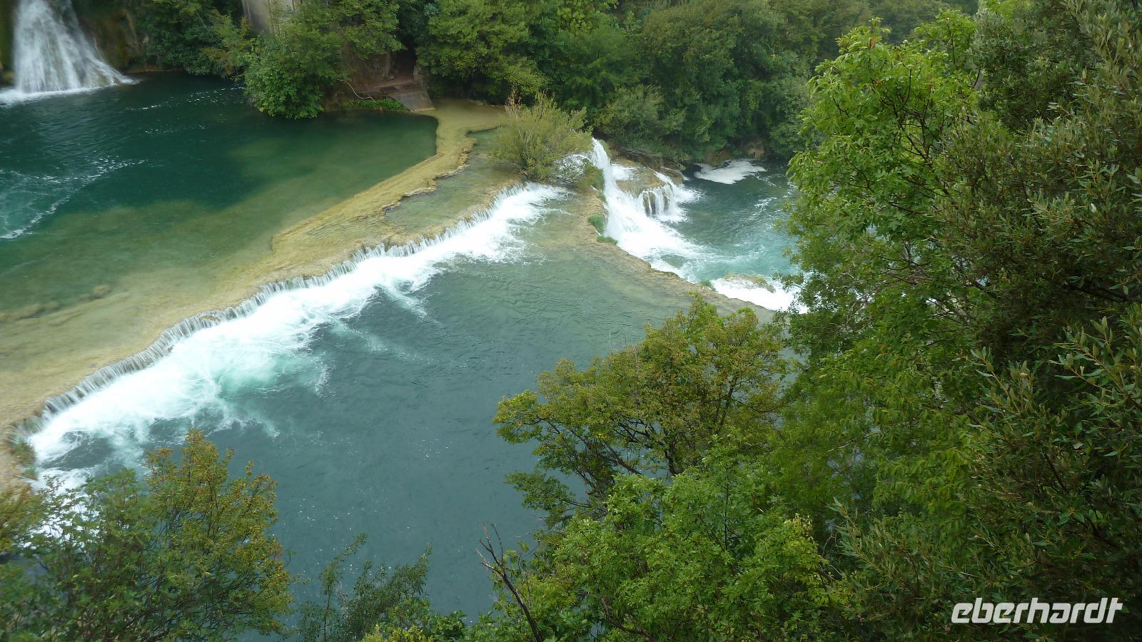 Am nächsten Morgen, bei schönem Wetter starteten wir zur ersten Natursehenswürdigkeit, die durch den Karst geprägt ist. Nach Zadar ging es auf die „Ministerstraße" und dann später auf die Autobahn in Richtung Sibenik. Entlang der Autobahn sahen wir eine vom Menschen geschaffene Landschaft, in der die Maccia dominiert. In den vergangenen Jahrhunderten hatten alle Mächte die riesigen Wälder abgeholzt, so dass jetzt die Maccia und die Garigue dominieren. Nach cirka 1,5 Stunden erreichten wir Losovac. Ich holte die Tickets und es ging mit dem Bus nach Skradinski buk.Der Canon der Krka ist hier fast 200m tief. Nun begann die Wanderung um die Wasserfälle von Skradinski buk. Ich bin immer wieder erstaunt, wie der Fluss auf einer Länge von 800m die 17 Terrassen überströmt. Am Ende des Rundgangs sahen wir uns noch die „Waschmaschine", das Pochwerk und die Mühle an. Um 12:30 Uhr holte uns der Bus bei strömendem Regen unten wieder ab und wir fuhren ins trockene Einkaufszentrum.