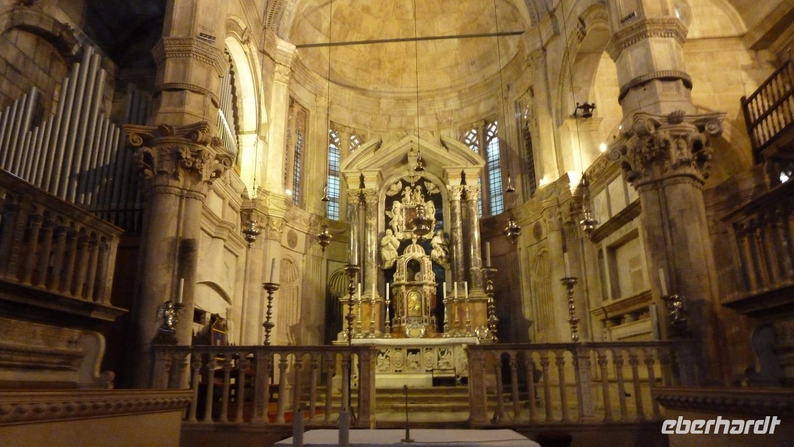 Nach einigen Minuten waren wir in Sibenik am Busbahnhof. Filip erwartete uns schon, um uns die schöne Altstadt zu zeigen. Er zeigt uns bei strömendem Regen eine der schönsten Städte im östlichen Adriaraum. Die Stadt liegt an der Mündung der Krka in der fjordartig geschützten Sibeniker Bucht. In den Gassen von Sibenik bestaunten wir die vielen Kirchen, Klöster und Patrizierhäuser. Höhepunkt war der Besuch der Kathedrale Sveti Jakov mit der berühmten Kuppel und den mehr als 70 Porträtköpfen. Wegen des Regens in Sibenik traten wir die Heimreise nach Petrcane an und genossen den Abend bei einem Glas Rotwein.