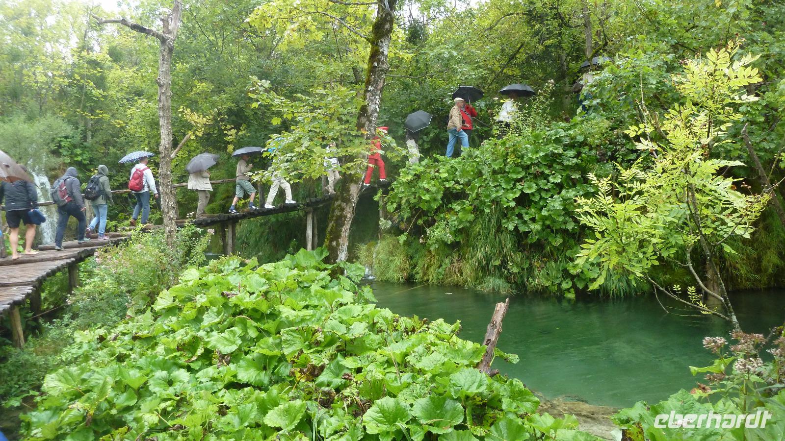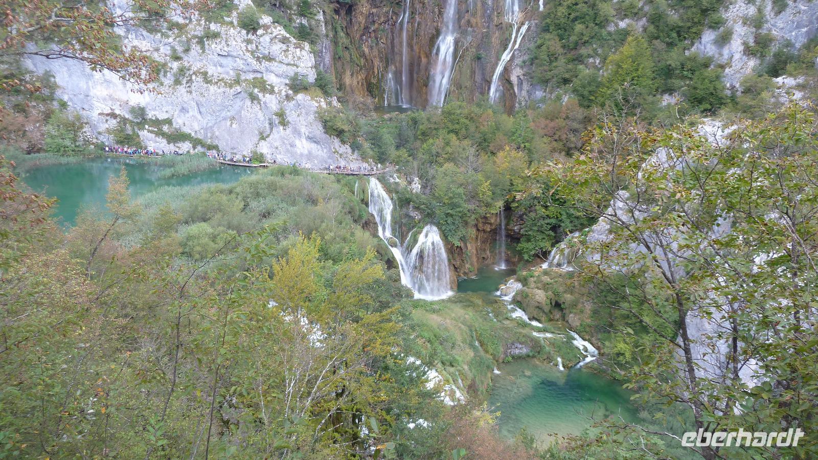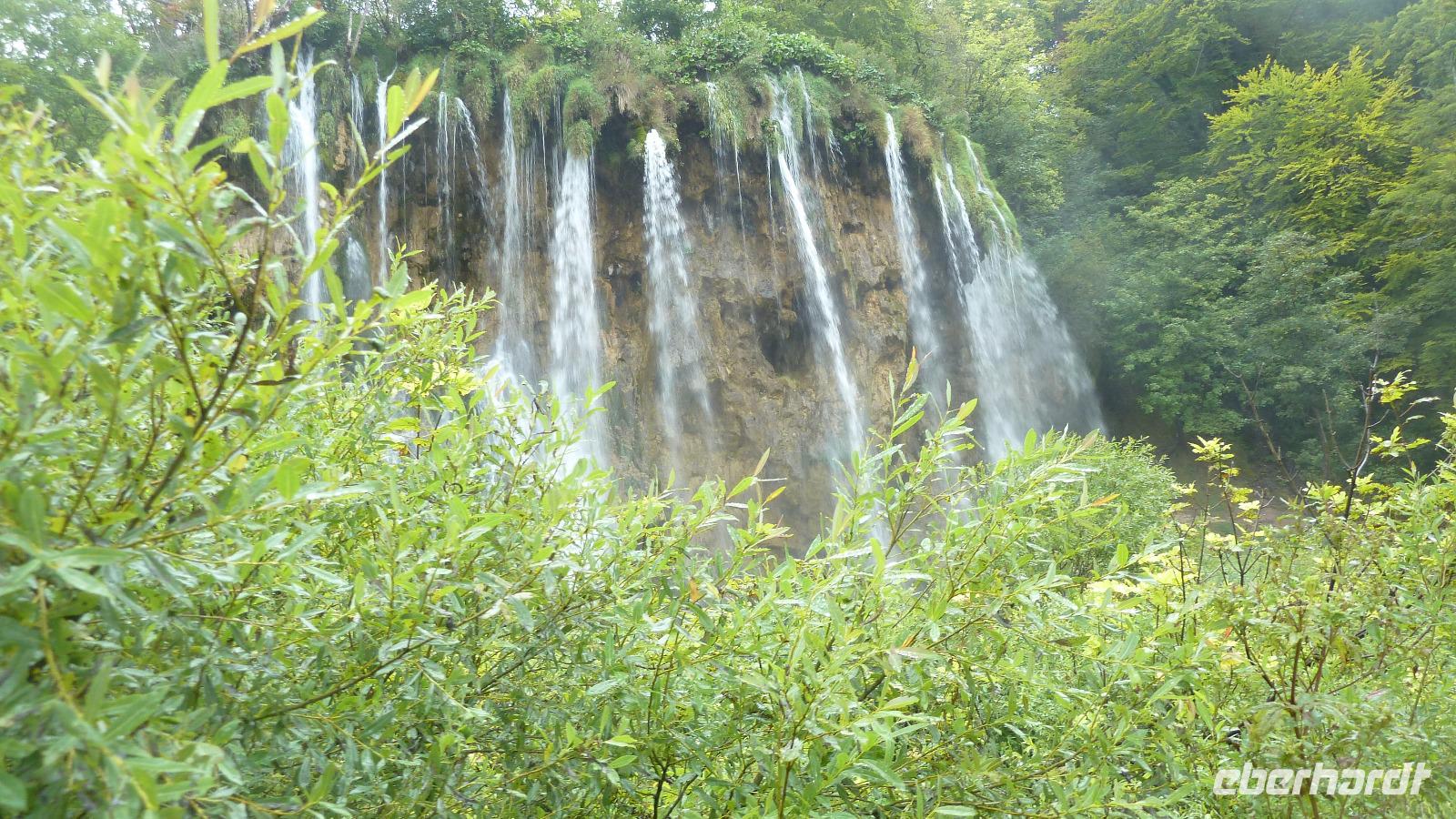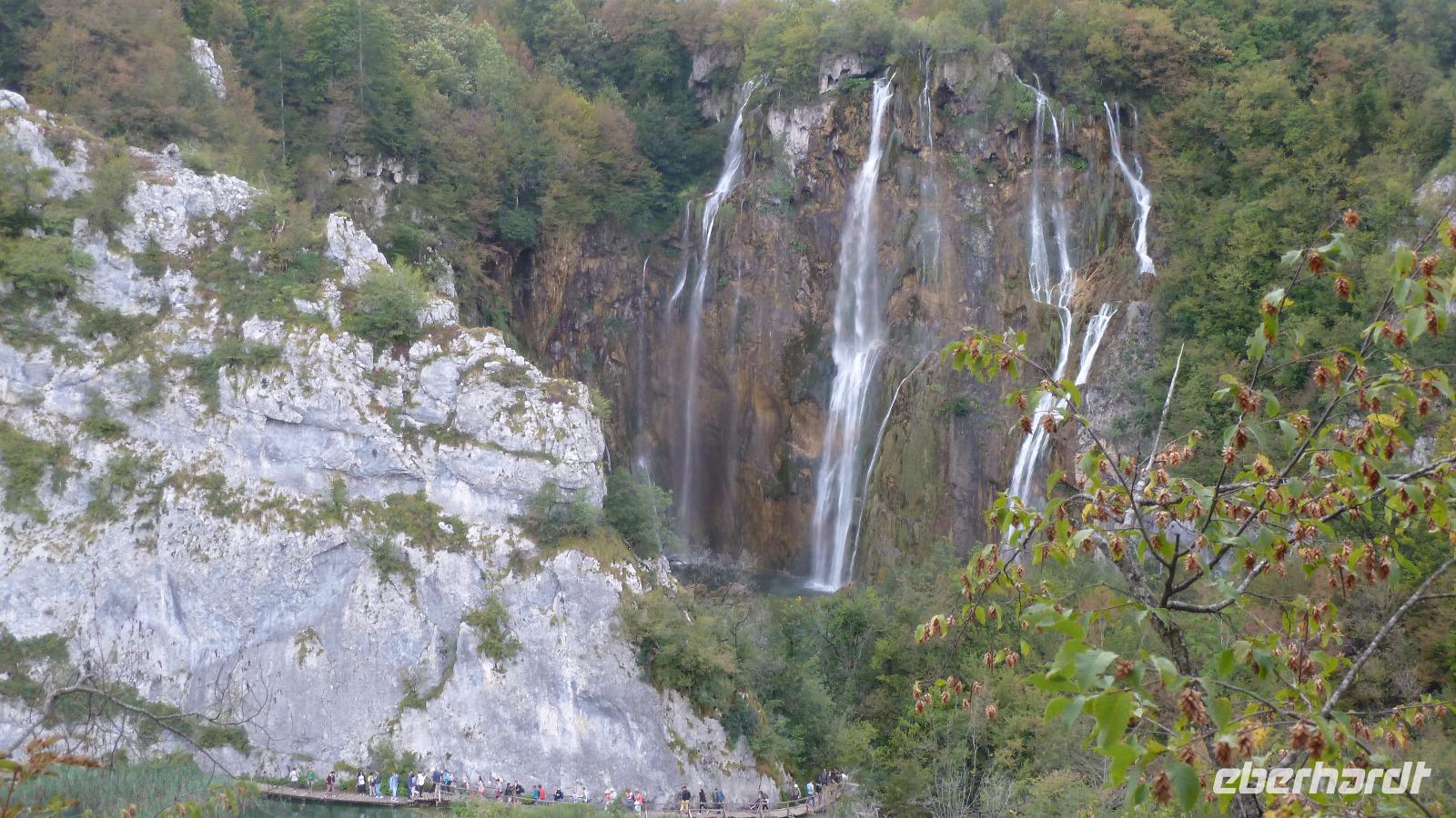 Um 8:30 Uhr begaben wir uns zum nächsten Höhepunkt auf dieser Reise; wir fuhren zum Nationalpark Plitvicer Seen. Mit dem Bus ging es auf der Autobahn über Brücken und Serpentinen immer höher bis zum Tunnel Sveti Rok. Danach erlebten wir eine völlig andere Landschaft, eine andere Fauna und Flora und auch völlig anderes Wetter. Nach 2 Stunden erreichten wir den Eingang 1 zum Nationalpark. Nach dem Besorgen der Tickets begaben wir uns mit unserem Guide Helena auf die Wanderung durch den Park. Nach wenigen Metern erlebten wir den ersten Höhepunkt: der Wasserfall des Plitvice Baches. Hier war ein Originaldrehort der Indianerfilme. Wir wanderten auf dem Weg des „grünen C" bis zum Kozjak See. Travertinterrassen haben in den letzten viertausend Jahren diese Seen entstehen lassen. Am Kozjak See setzten wir mit dem Elektroboot über und liefen durch eine einmalige Landschaft mit vielen Wasserfällen und Kaskaden bis zum Wendepunkt. Mit der Fähre gelangten wir auf das andere Seeufer und hatten dann ca.220 Stufen vor uns, um den Bus zu erreichen. Alle waren überwältigt von einem der schönsten Naturschauspiele Europas trotz des Regenwetters. Nach einer Pause im Cafe Borje erreichten wir am Abend Petrcane.