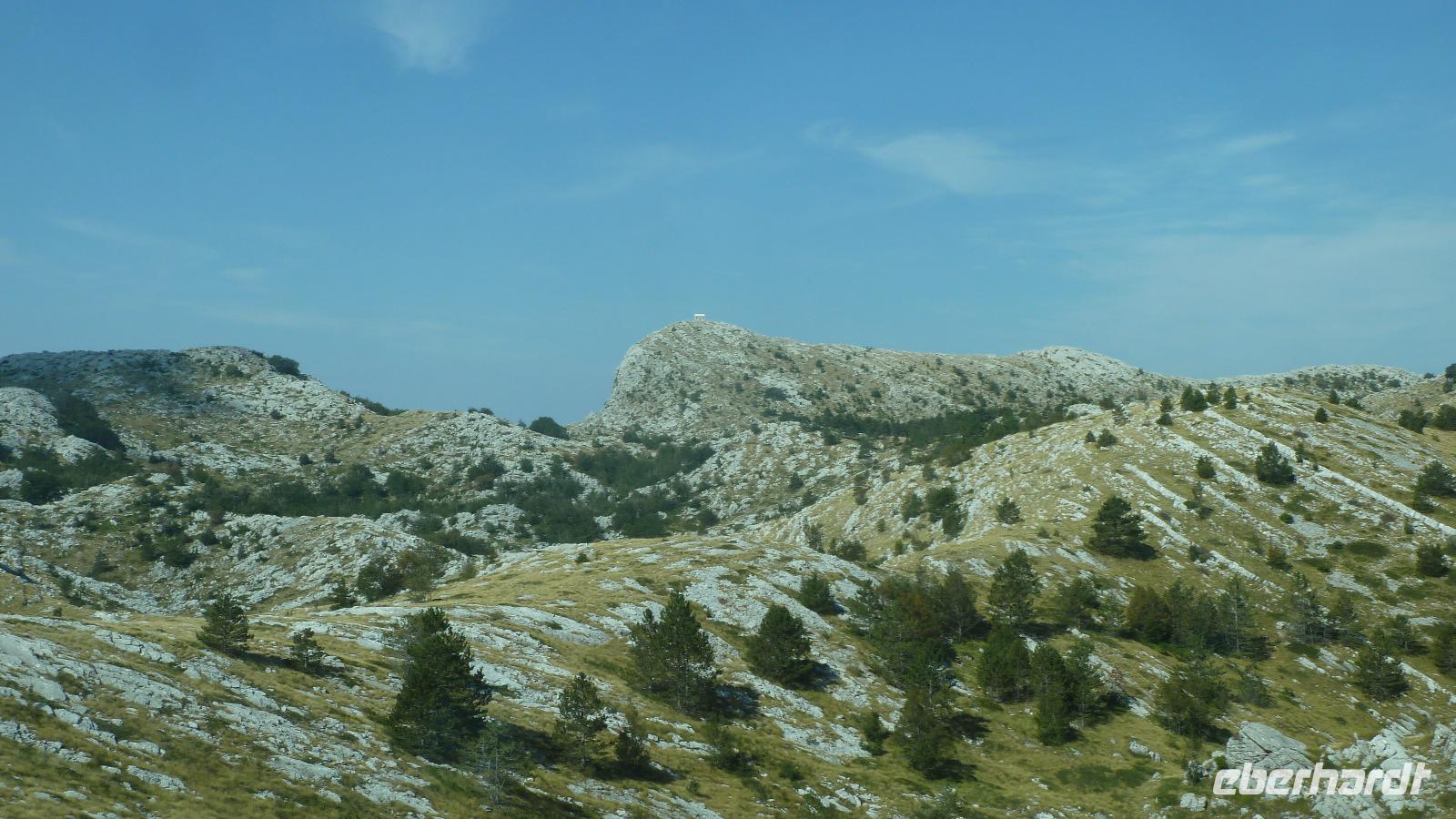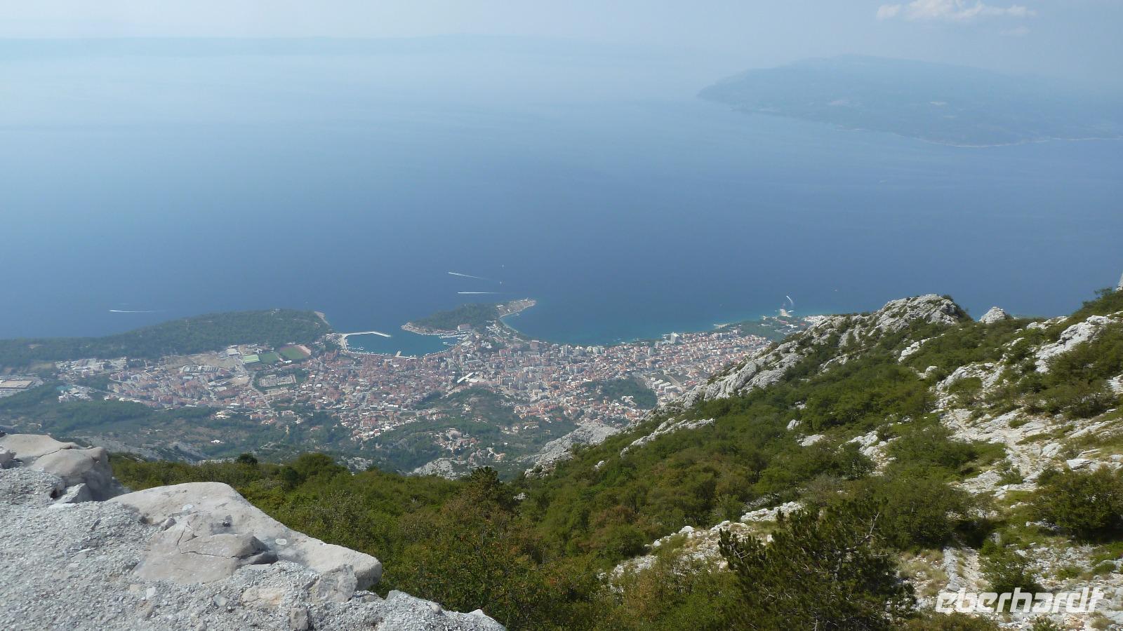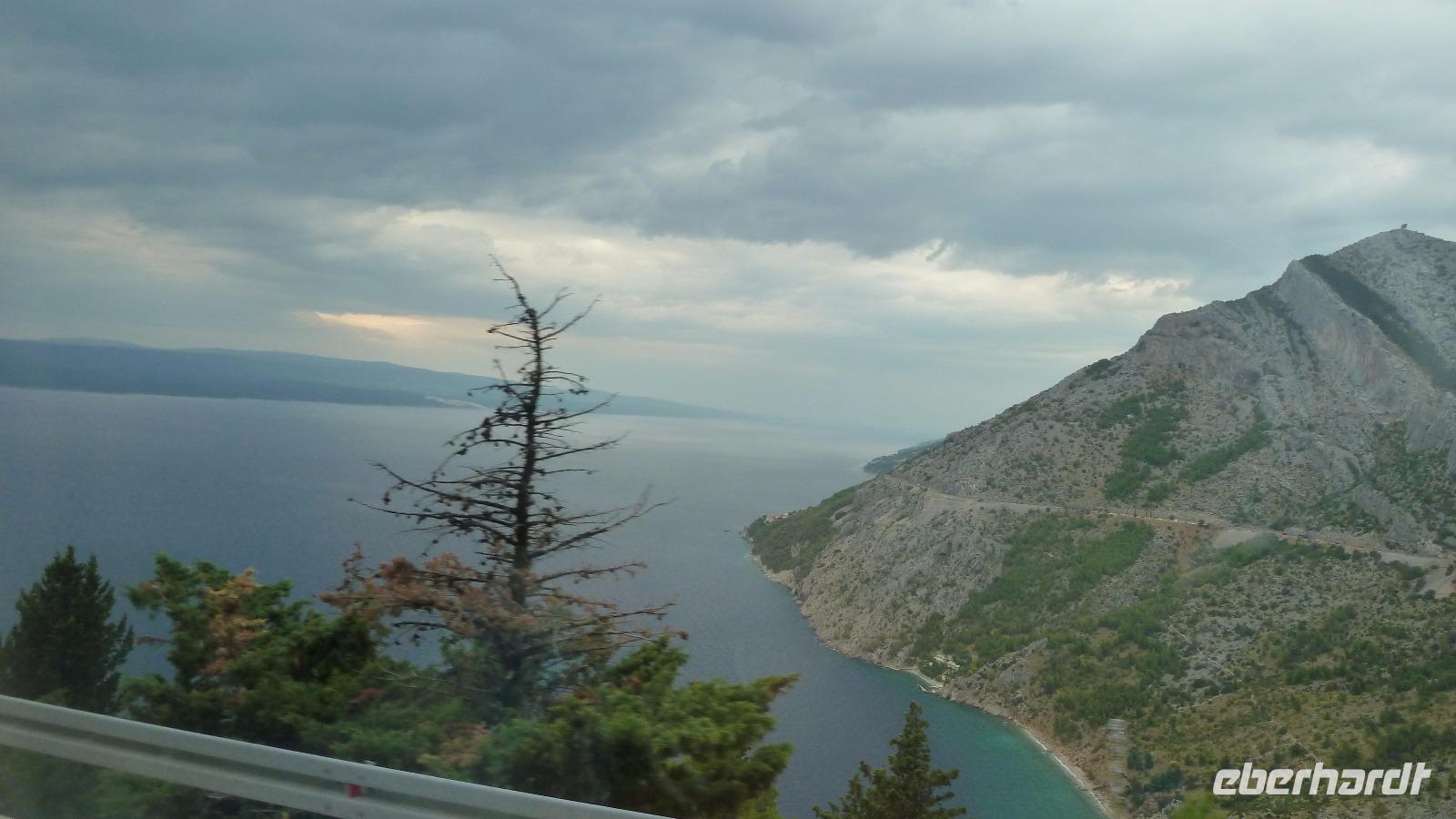 Heute stand ein weiterer Höhepunkt auf dem Programm. Wir machten mit Marko eine fakultative Reise ins Biokovo Gebirge. 9:00 Uhr wurden wir mit dem kleinen Bus abgeholt und es ging auf der alten österreichischen Militärstraße über viele Serpentinen von Meeresspiegelhöhe sofort auf 875m Höhe. Am ersten Panoramapunkt genossen wir den Ausblick auf Podgora und Tucepi. Weiter ginh es auf der schmalen kurvenreichen Straße zum nächsten Aussichtspunkt (1228m) bis wir dann endlich auf dem Sveti Jure standen(1762m). Dieser Ausblick nach allen Seiten ist unbeschreiblich. Weitere Fahrzeuge waren unterwegs. Somit mussten wir eine günstige Zeit abpassen, um ohne Gegenverkehr zum nächsten Parkplatz zu kommen. Dort schloss sich eine 2km lange Wanderung zum Aussichtspunkt Strbina an. Der Ausblick war überwältigend. Danach fuhren wir zur Berghütte von Ante. Er serviert uns ein kroatisches Picknick mit allen typischen kroatischen Speisen und Getränken. Lustig und beschwingt erreichten wir am Nachmittag unser Hotel.