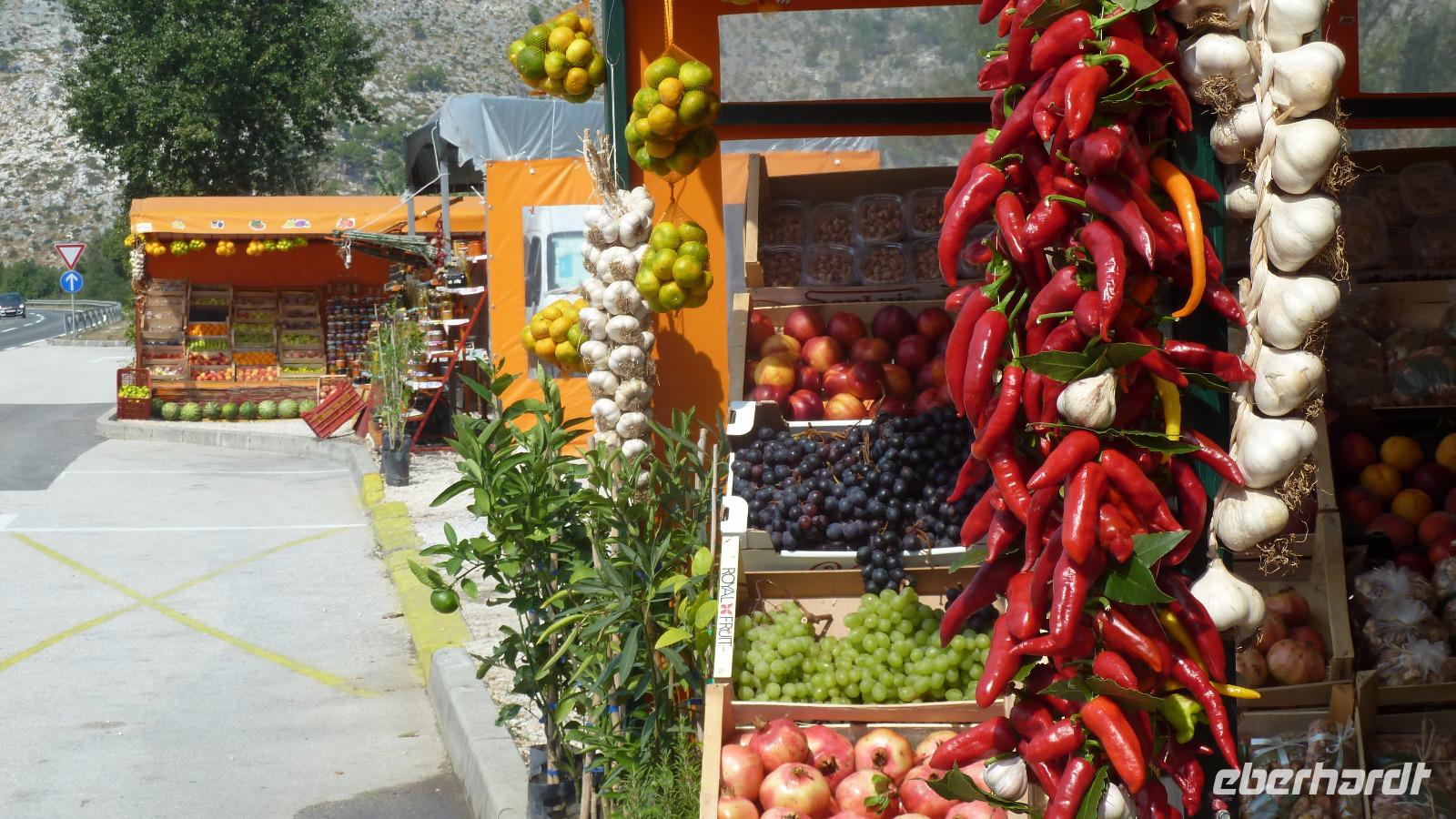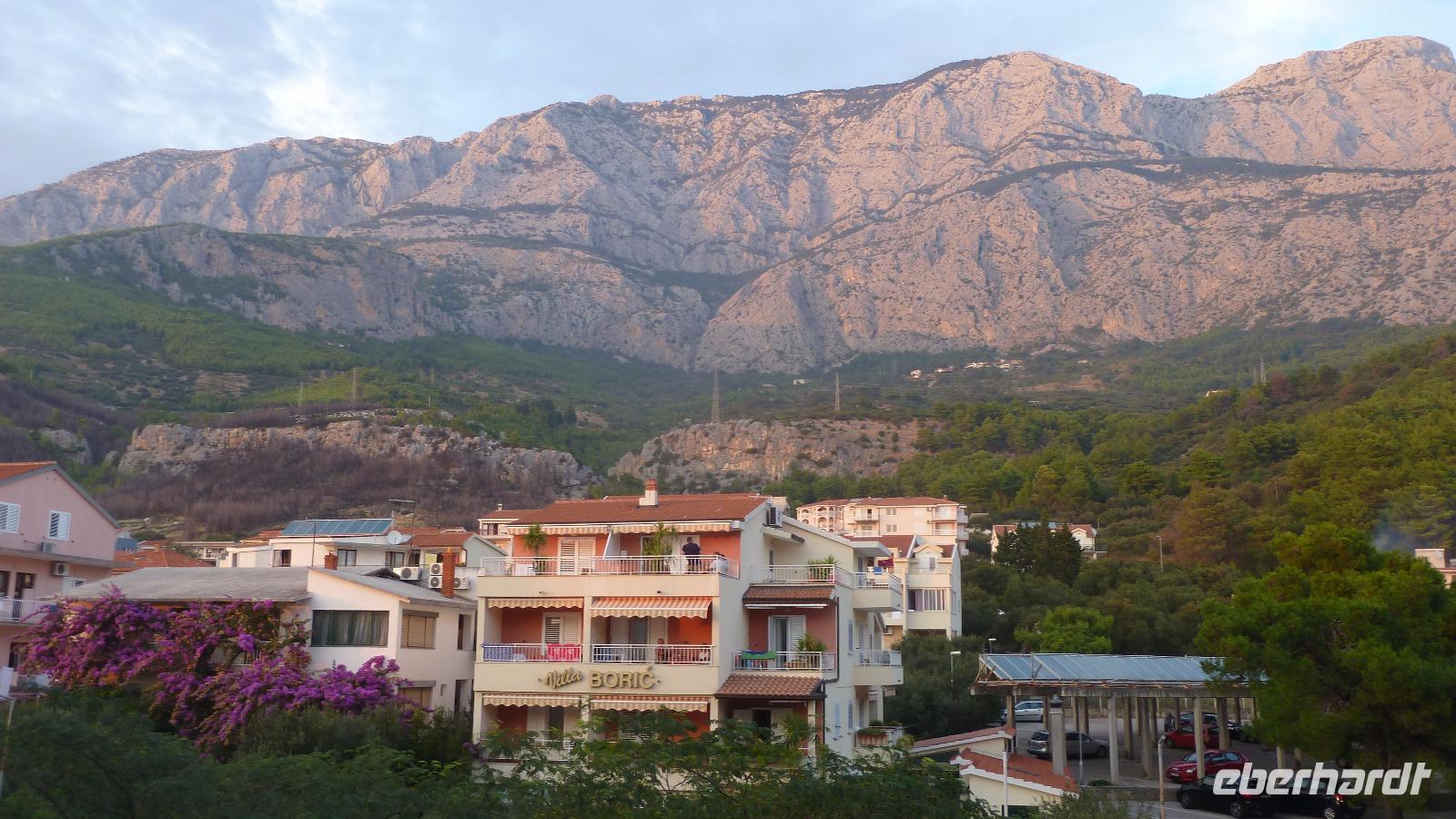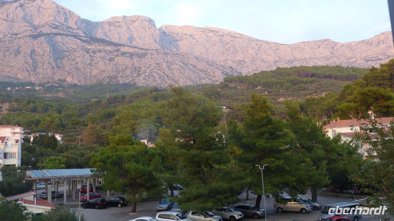 Heute stand ein weiterer Höhepunkt auf dem Programm. Wir machten mit Marko eine fakultative Reise ins Biokovo Gebirge. 9:00 Uhr wurden wir mit dem kleinen Bus abgeholt und es ging auf der alten österreichischen Militärstraße über viele Serpentinen von Meeresspiegelhöhe sofort auf 875m Höhe. Am ersten Panoramapunkt genossen wir den Ausblick auf Podgora und Tucepi. Weiter ginh es auf der schmalen kurvenreichen Straße zum nächsten Aussichtspunkt (1228m) bis wir dann endlich auf dem Sveti Jure standen(1762m). Dieser Ausblick nach allen Seiten ist unbeschreiblich. Weitere Fahrzeuge waren unterwegs. Somit mussten wir eine günstige Zeit abpassen, um ohne Gegenverkehr zum nächsten Parkplatz zu kommen. Dort schloss sich eine 2km lange Wanderung zum Aussichtspunkt Strbina an. Der Ausblick war überwältigend. Danach fuhren wir zur Berghütte von Ante. Er serviert uns ein kroatisches Picknick mit allen typischen kroatischen Speisen und Getränken. Lustig und beschwingt erreichten wir am Nachmittag unser Hotel.