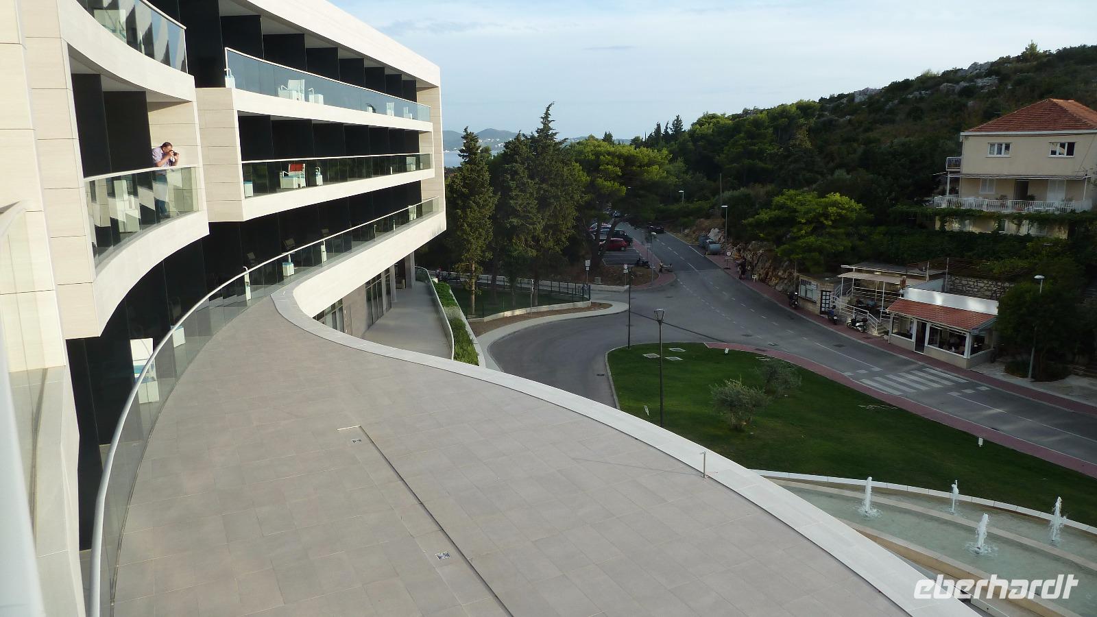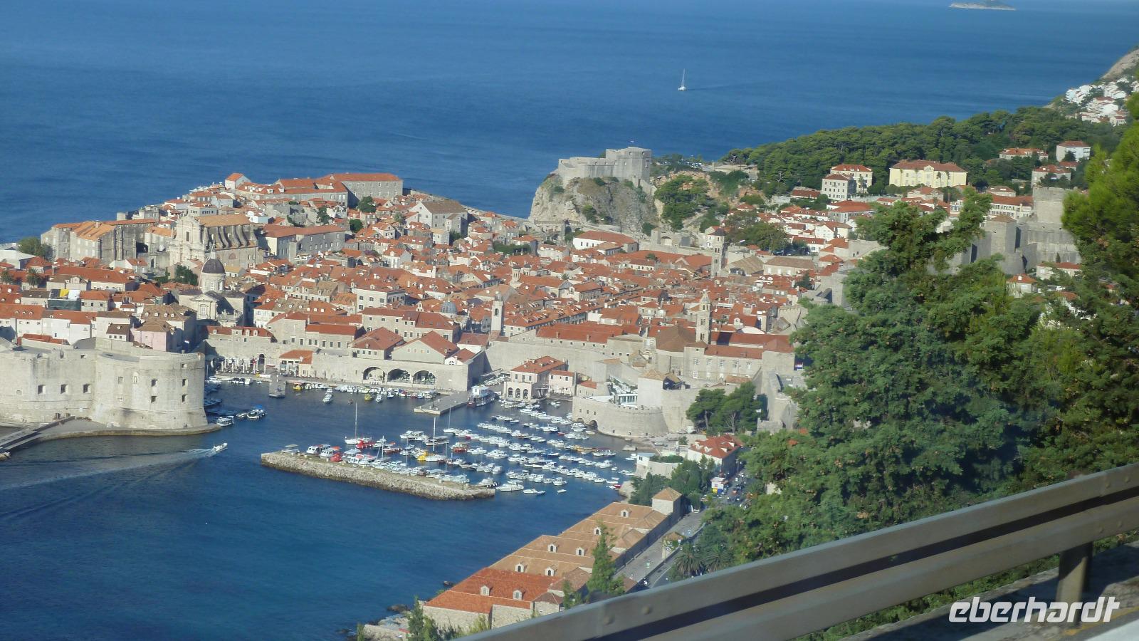 Nach einem letzten Frühstück im Hotel „Pinija" nahmen wir Abschied von Norddalmatien. Wir fuhren auf der Jadranska Magistrala an vielen Ferienorten vorbei, über Sibenik zunächst bis zum Fotopunkt Primosten. Bei schönstem Wetter hatten wir den Panoramablick auf das wohl am meisten fotografierte Städtchen Kroatiens. Um 11:00 Uhr erreichten wir die Museumsstadt Trogir. Von Stadtmauern umschlossen, befinden sich hier auf engen Raum Kirchen, Paläste und Bürgerhäuser, die fast ausnahmslos zwischen dem 13. und dem 17. Jahrhundert erbaut wurden. Wir fühlten uns während des Rundganges fast in diese Zeit zurückversetzt. Am zeitigen Nachmittag ging die Fahrt entlang der Küstenstraße weiter. Immer am Gebirge entlang hatten wir nach jeder Kurve und Biegung einen phantastischen Ausblick. Nach Omis mußten wir durch den vorherigen Stau gezwungenermaßen auf die Autobahn Richtung Ploce ausweichen. An der Raststätte Ravca machten wir Pause. Die Fahrt auf der neuen Autobahn war ein überwältigendes Erlebnis. Wir waren beeindruckt von der gigantischen Bauleistung und der grandiosen Natur. Ein weiterer Höhepunkt auf der Fahrt war das Neretva Delta. Auf der südlichen Seite machten wir Stopp und genossen das Panorama. Am Abend erreichten wir unser Hotel in Srebreno, nachdem wir von der Straße aus schon die Altstadt von Dubrovnik gesehen hatten. Vom Hotel Sheraton bis zur Adria sind es nur wenige Meter und die kleine Uferpromenade lädt zu einem gemütlichen Abendspaziergang als Ausklang ein.
