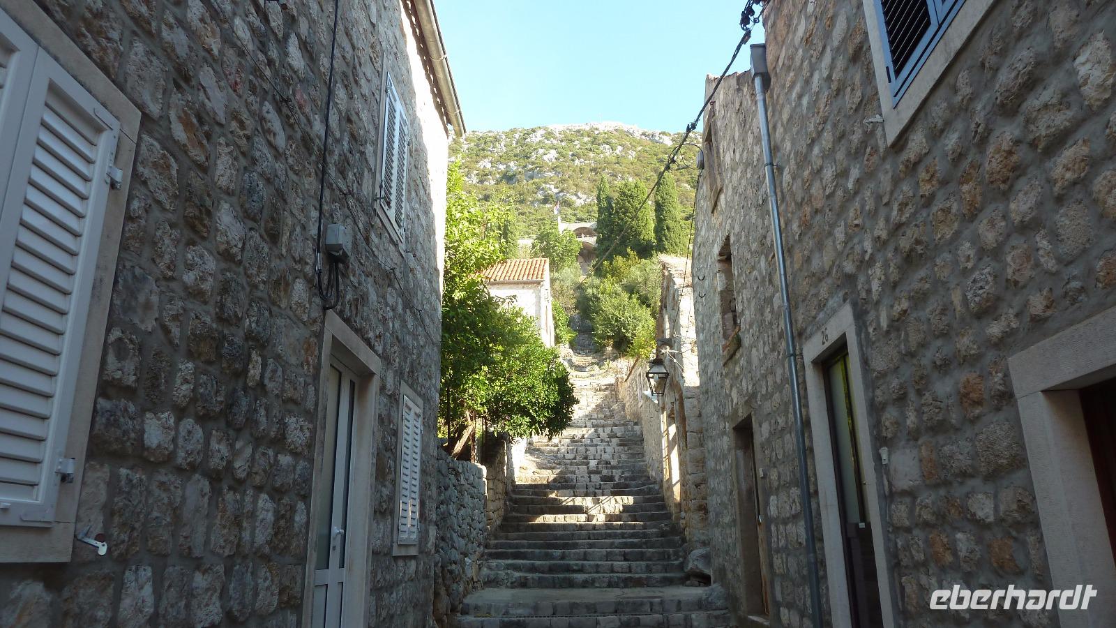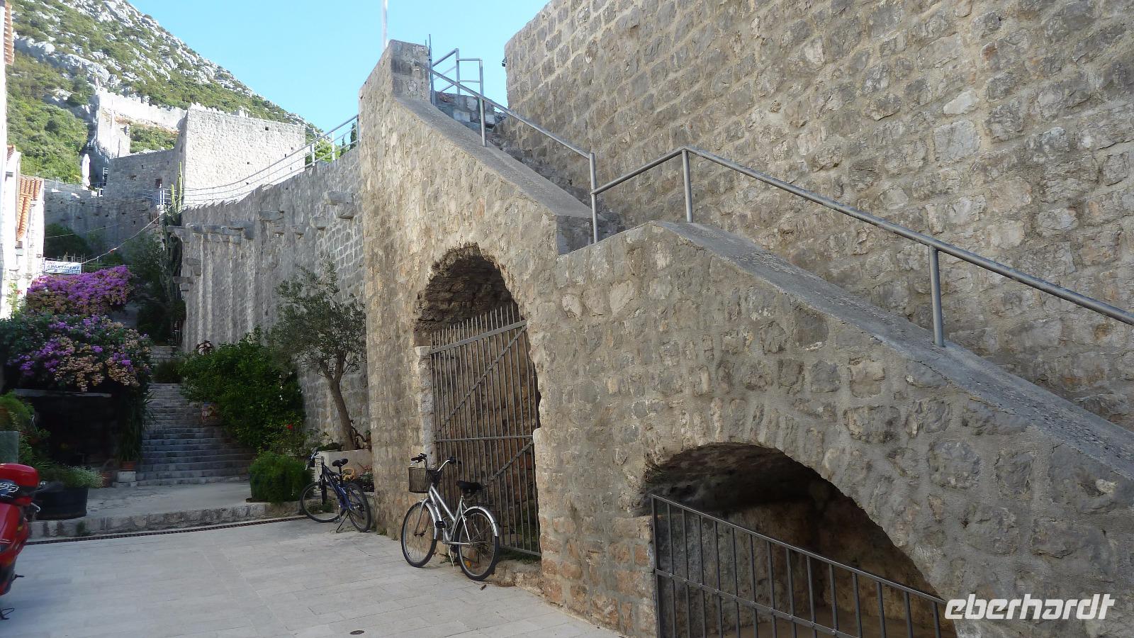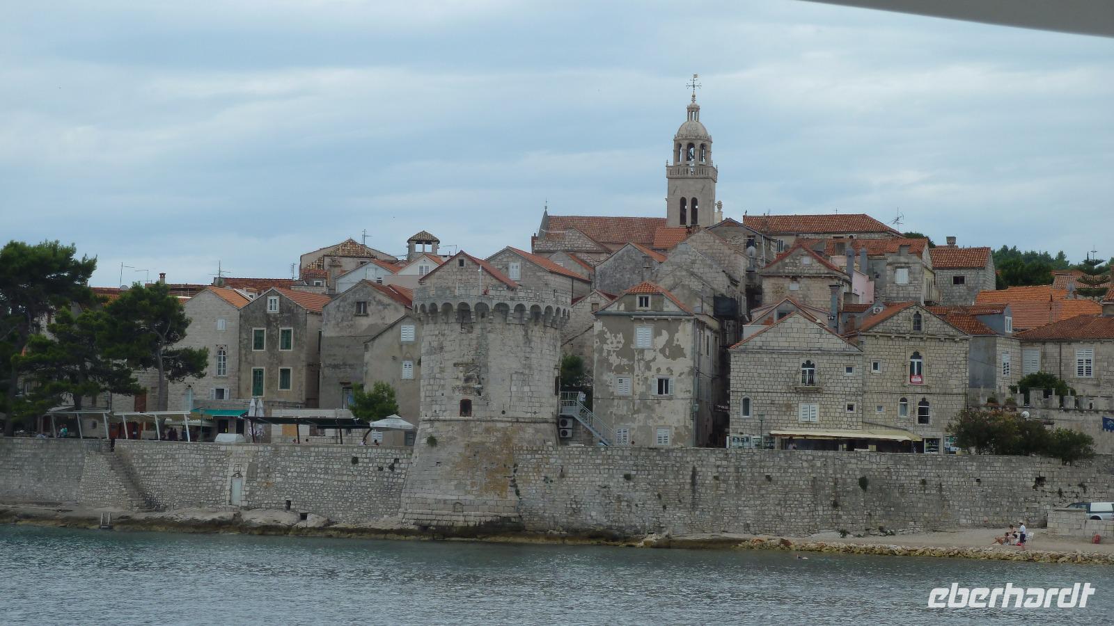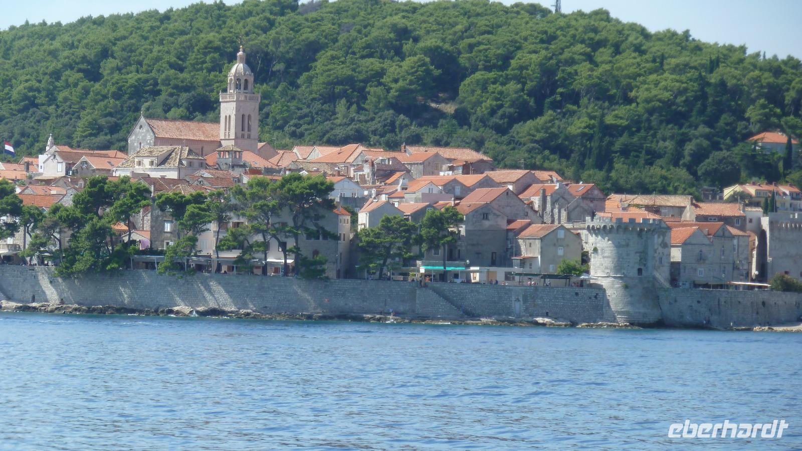 Heute ging es auf der Jadranska Magistrala zurück bis Doli. Auf der linken Seite sahen wir die südlichste Inselgruppe Dalmatiens: die Elaphiten. Nach einer Stunde hatten wir Veliki Ston erreicht und bestaunten die längste Mauer Europas. Seit 1333 schützt die 5km lange Mauer die Salinen der ehemaligen Republik Ragusa. Wir unternahmen einen Rundgang durch den beschaulichen Ort und sahen das Kloster, die Festungsanlagen, den Brunnen, den ehemaligen Rektorenpalast und die Salinen. Die Schäden des letzten Erdbebens von 1996 waren dabei nicht zu übersehen. Weiter ging es auf der Halbinsel Peljesac durch Weinberge, kleine Ortschaften bis wir endlich Orebic am Fuße des Sveti Elias erreichten. Mit der Fähre fuhren wir um 11:30 Uhr auf die Insel Korcula und in die Stadt gleichen Namens. Stanka erwartete uns am Fähranleger und führte uns durch dieses Museumsstädtchen. Die Stadt ist ein lebendiges Stück Mittelalter und hinterlässt bei den Besuchern bleibende Eindrücke. Am Nachmittag ging es auf das Festland zurück. Nach einer erlebnisreichen Stadt Korcula fuhren wir mit dem Bus wieder zurück nach Srebreno.