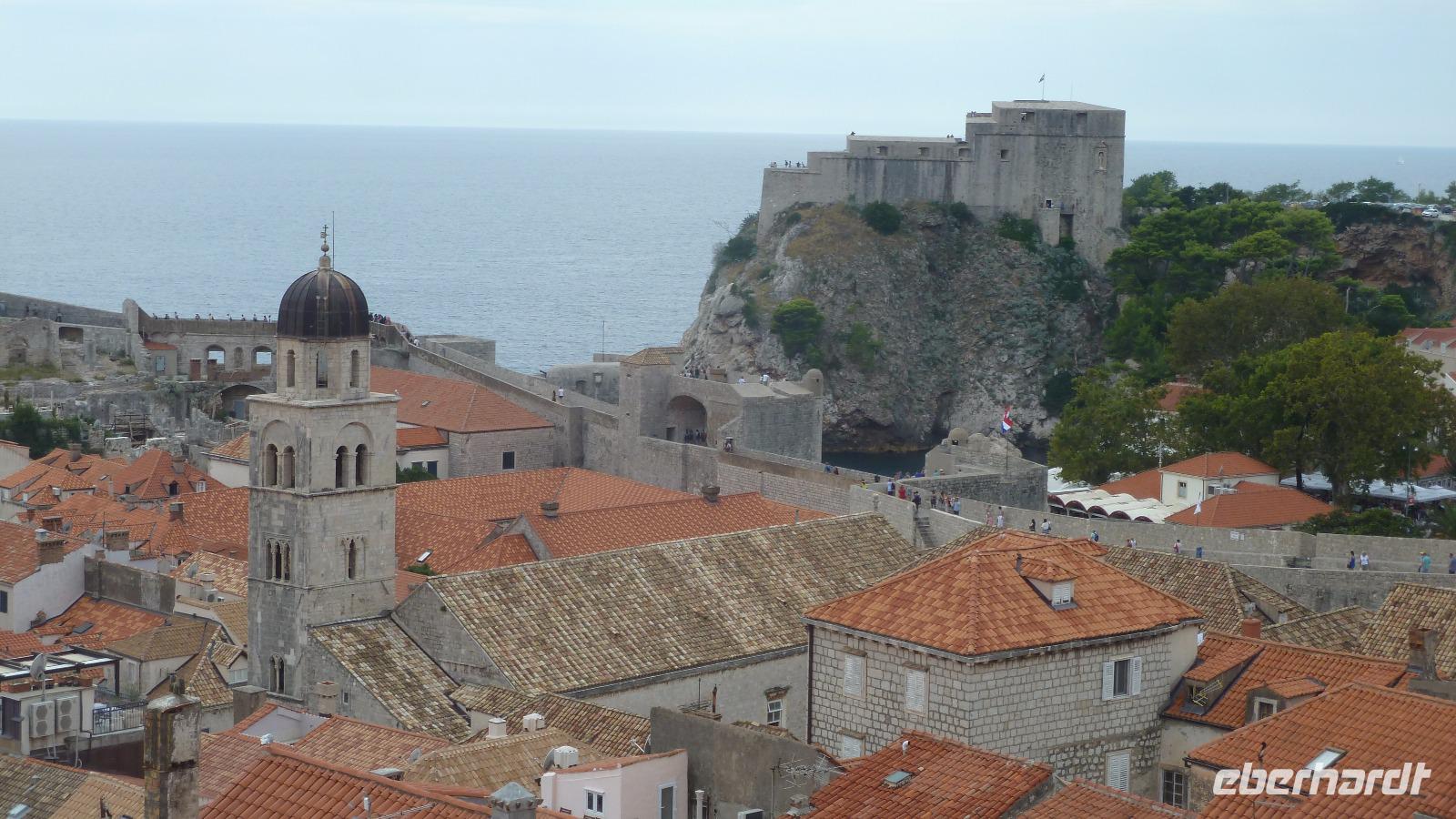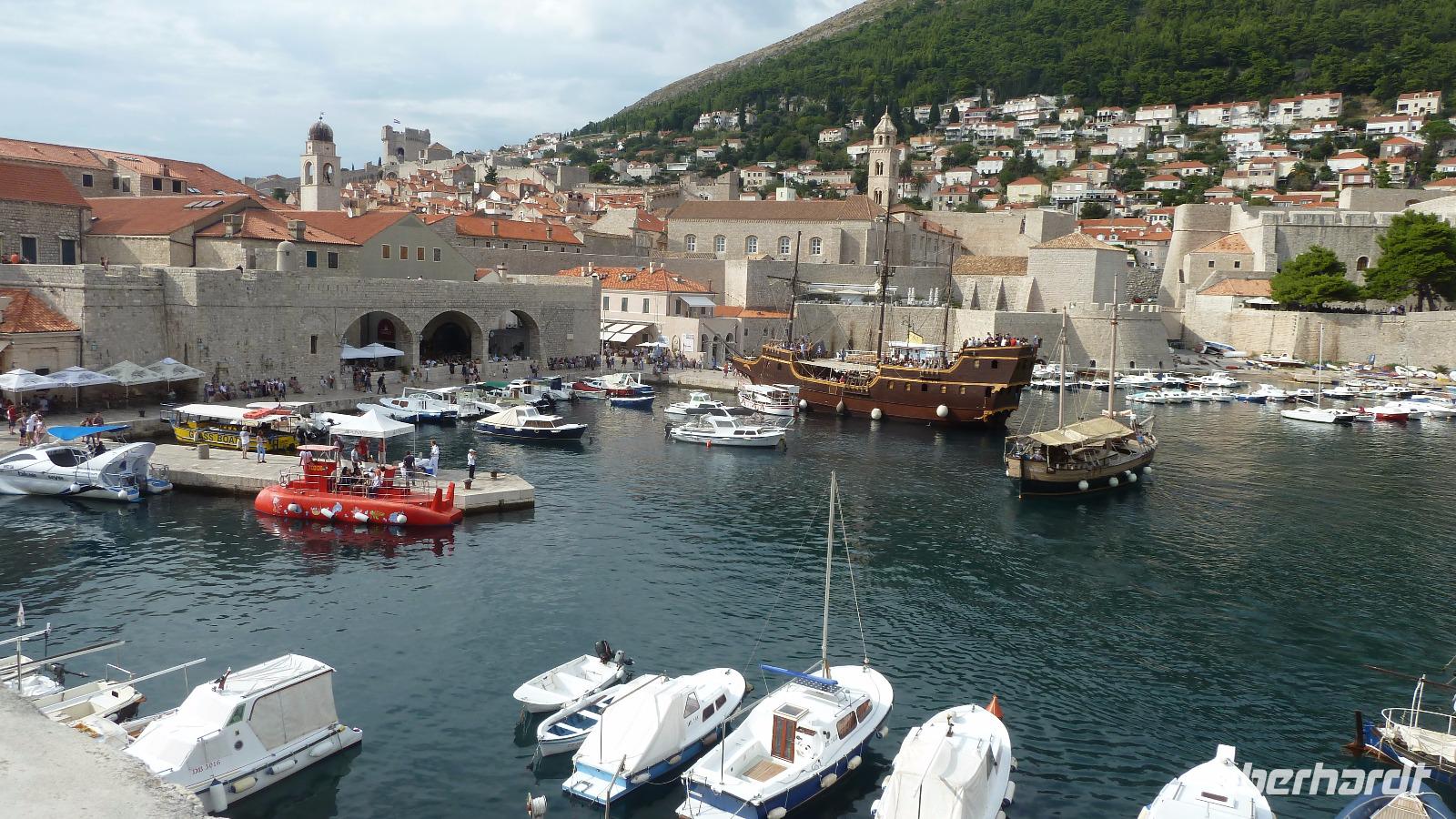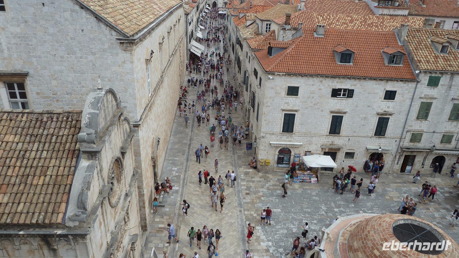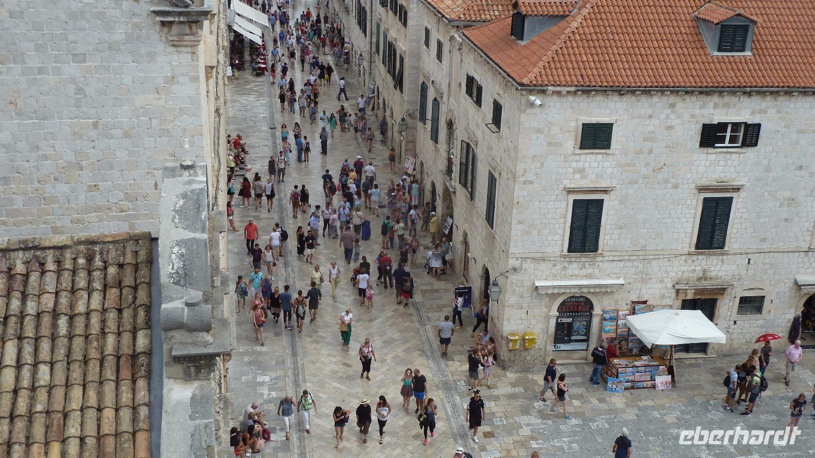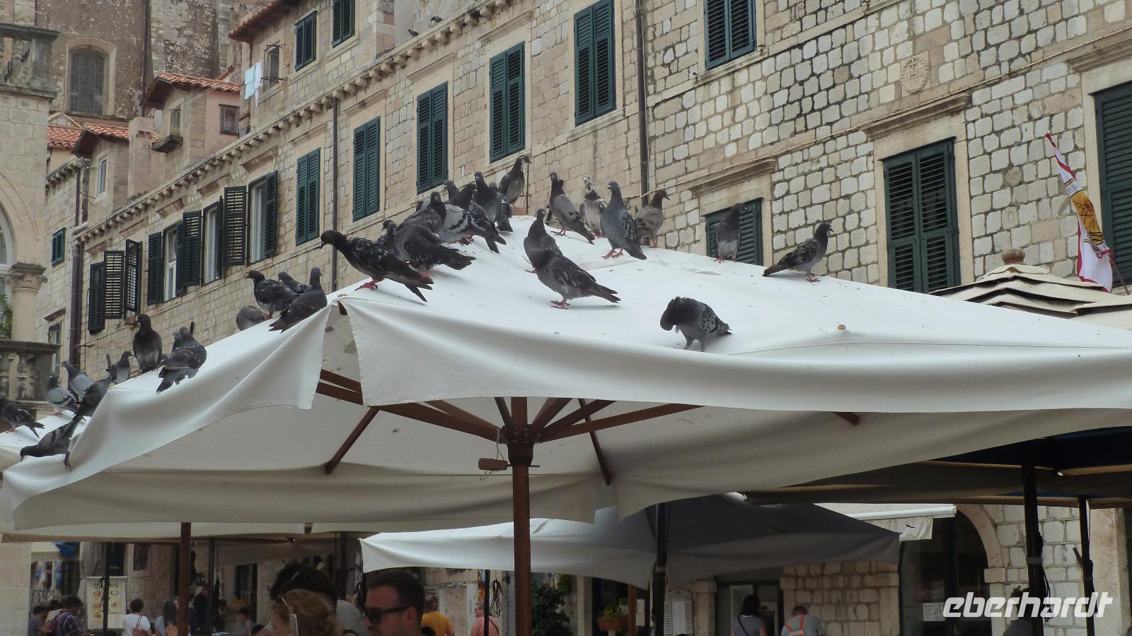 George Bernhard Shaw nannte Dubrovnik das „Paradies auf Erden". Nach 25 Minuten erreichten wir das Pile Tor. Es hatte den Anschein, als wollten Hunderte gleichzeitig ins „Paradies". Unsere Stadtführerin Violeta erklärte uns viele wichtige Sehenswürdigkeiten der Stadt und gab uns interessante Einblicke in das Leben der Menschen. Nach 1,5 Stunden dankten wir der Stadtführerin für ihre Erläuterungen. Alle waren überwältigt von der Schönheit der Stadt. Nach einer Freizeit trafen wir uns alle wieder am Marktplatz, um dem „Taubenspektakel" beizuwohnen. Gut beschirmt sahen wir, wie pünktlich 12:00 Uhr die vielen Tauben gefüttert wurden, was schon seit sehr langer Zeit Tradition ist. Bei Mirso hatten wir Plätze reserviert für unser gemeinsames Mittagessen. In einer äußerst angenehmen Atmosphäre ließen wir es uns gut gehen. Gestärkt machten wir uns auf den Weg, um die Stadtmauer zu „erobern". Nach Zahlung von 100 Kuna ging es los. Die 1,8km wurden zu einem unvergesslichen Erlebnis. Nach 2 Stunden hatten wir unseren Ausgangspunkt wieder erreicht. Jetzt hat jeder noch Zeit für eine individuelle Exkursion, bis der Bus uns am Pile Tor wieder abholte.