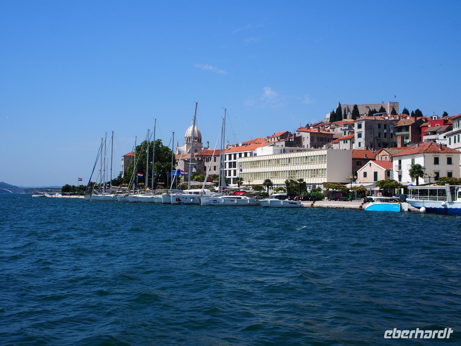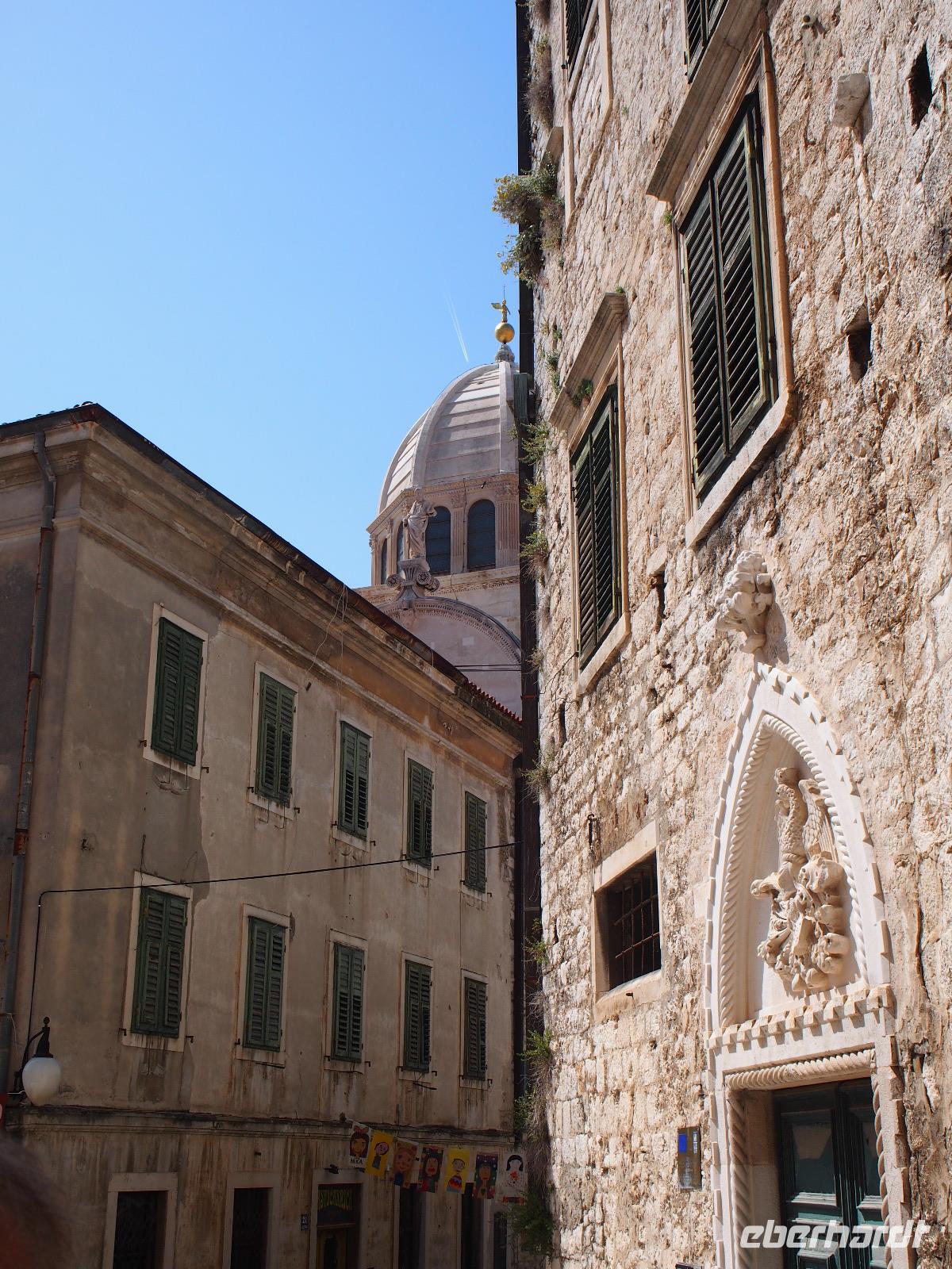 Am Nachmittag brechen wir auf zum Kontrastprogramm, wir besuchen die nahegelegene Stadt Šibenik. Am Busbahnhof treffen wir auf unsere Stadtführerin Jasna, die uns mit sehr viel Witz und Charme durch die Gassen führt und uns Dinge über ihre Stadt erzählt, die man in den meisten Reiseführern vergeblich suchen wird. Der Höhepunkt unserer Führung ist die Kathedrale des Heiligen Jakob, im spätgotischen und Renaissance-Stil gebaut und unter der Leitung des dalmatinischen Bildhauers und Baumeisters Juraj Dalmatinac fertiggestellt. Die Stadtführung verläuft kurzweilig und der leichte Wind, der an der Küste weht, macht die hohen Temperaturen angenehmer. Daher nehmen wir uns nun ein wenig Zeit, Šibenik auf eigene Faust zu erkunden.