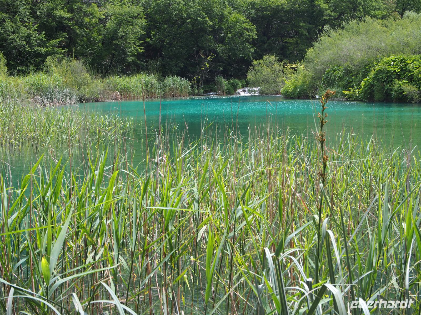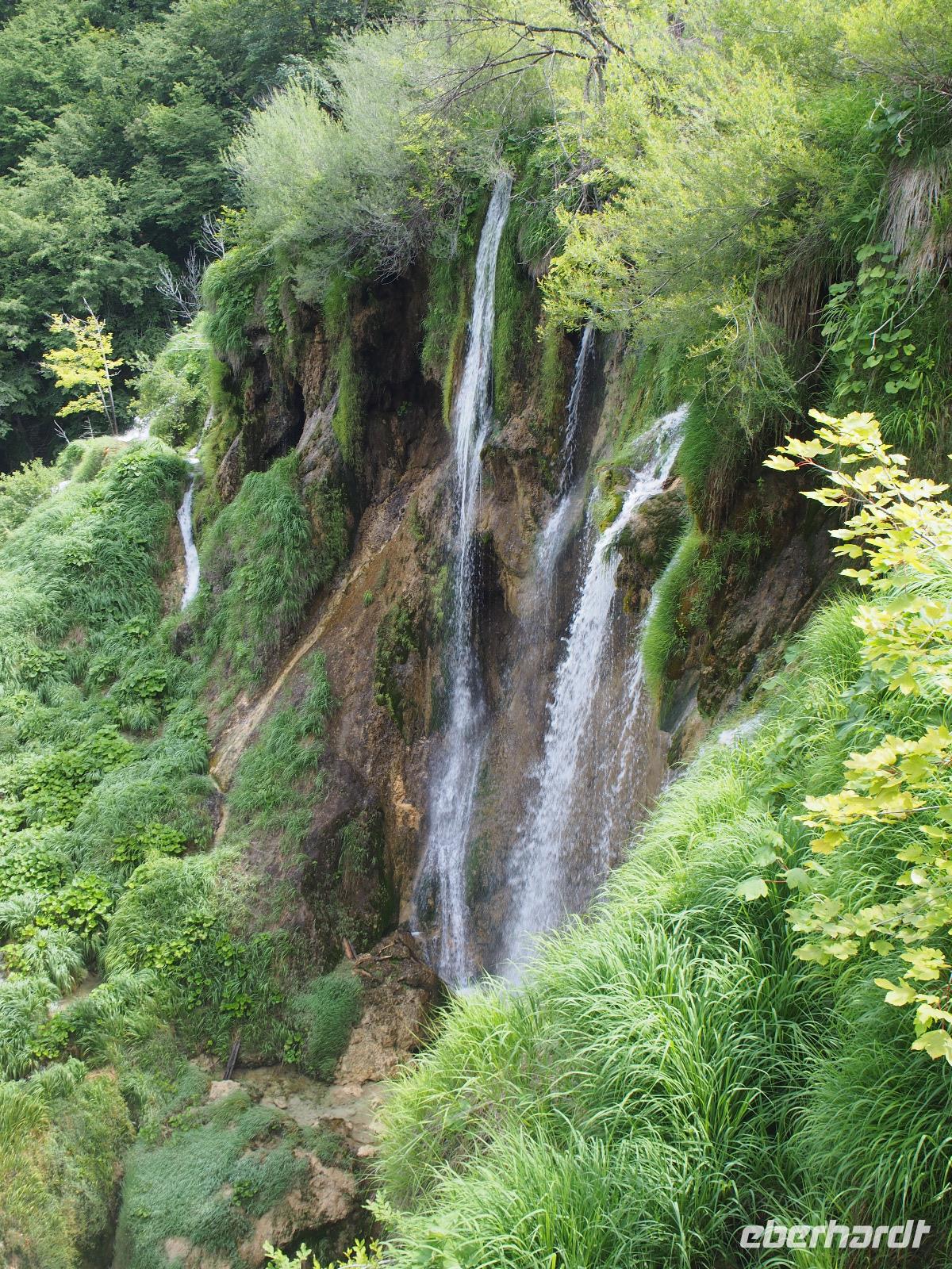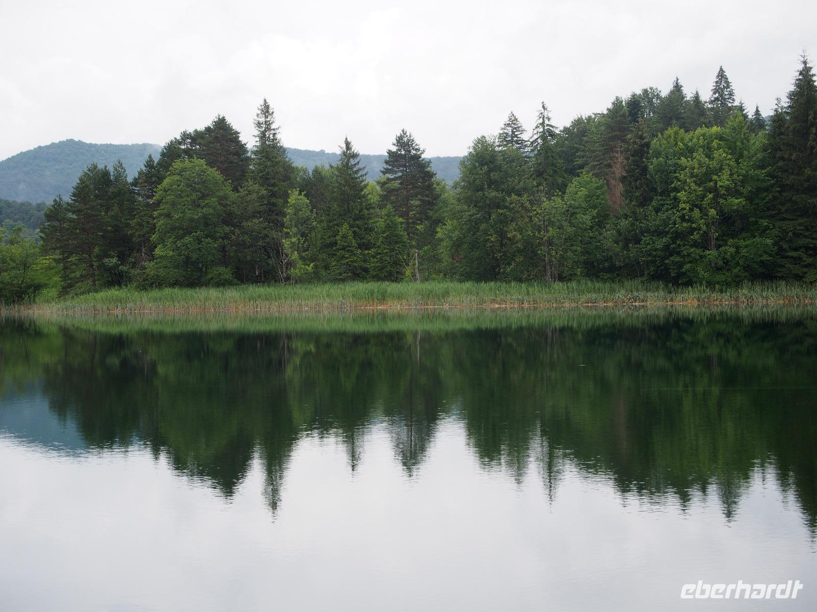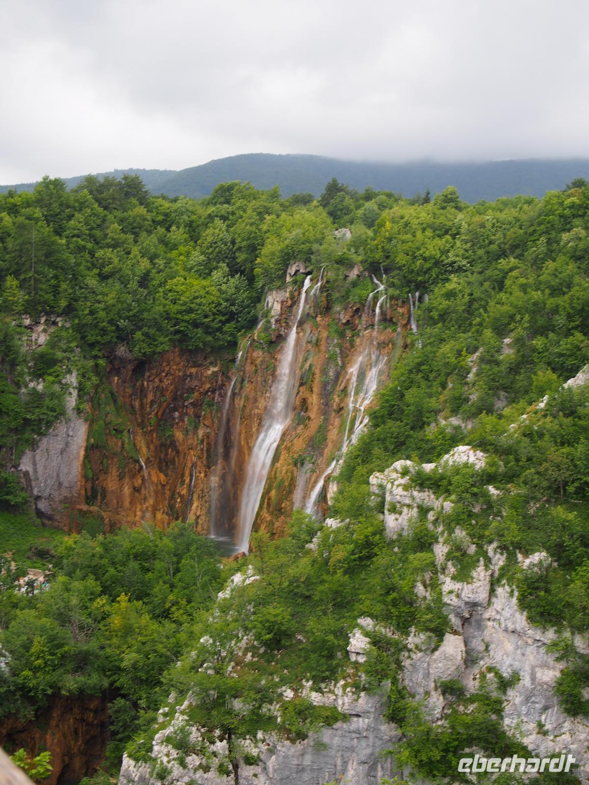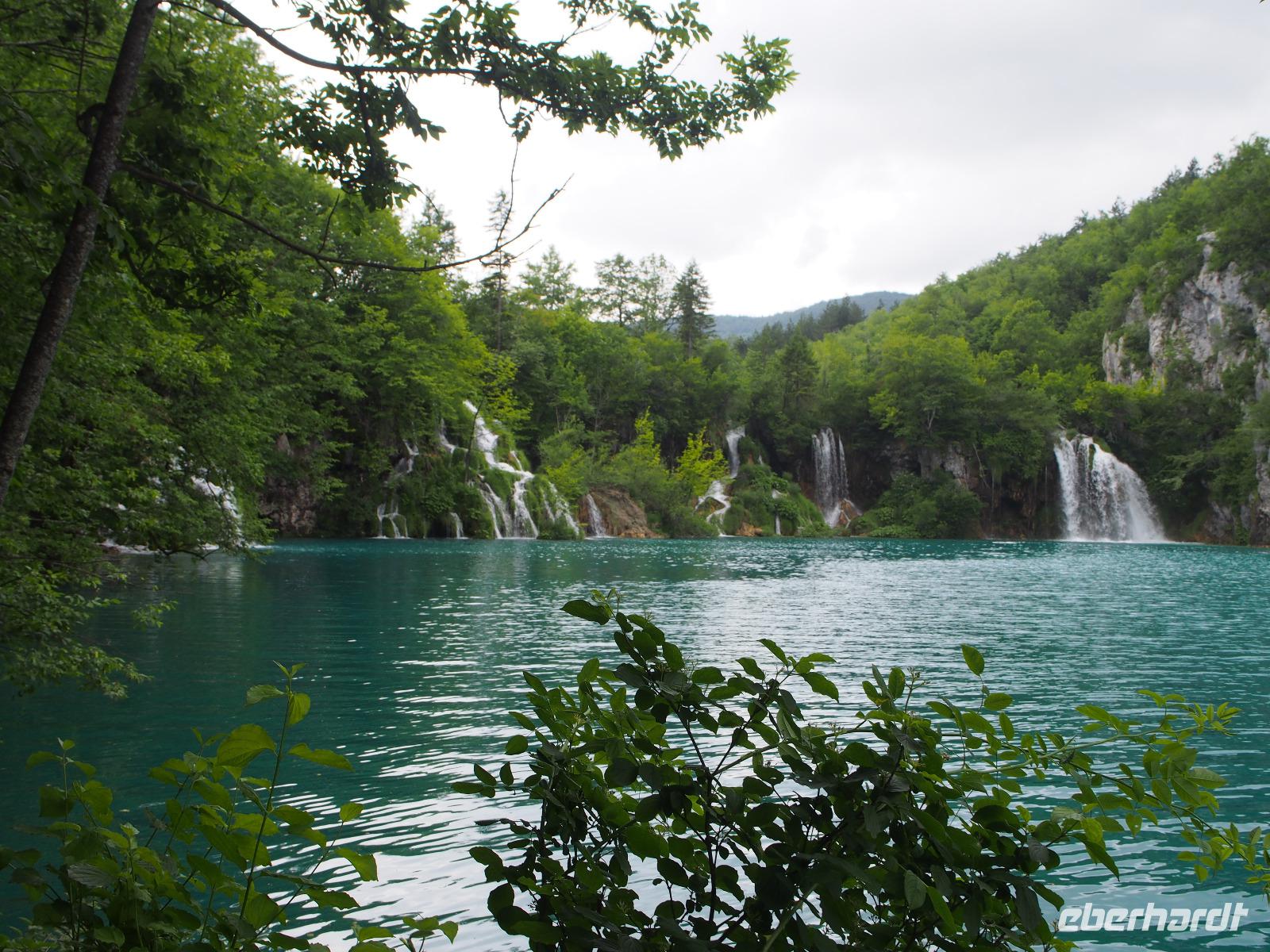 Angekommen am Nationalpark treffen wir bald auf unsere Führerin Jasna, die uns in den kommenden Stunden mit ihrer rheinischen Frohnatur köstlich unterhalten wird. Zunächst erklärt sie uns anhand der großen Übersichtskarte am Einlass, was uns heute erwarten wird, danach marschieren wir los. Wir müssen nur einige Meter zurücklegen und werden schon mit einem herrlichen Ausblick belohnt: uns gegenüber liegt er höchste Wasserfall des Parks, der Veliki slap, mit insgesamt 78 Metern Höhe. Langsam steigen hinab zu den Travertin-Becken der vier unteren Seen. Vorsichtig bewegen wir uns auf den Holzstegen aus Esskastanienholz, denn Jasna warnt uns: „Schwimmen ist hier verboten, wer ins Wasser fällt, der muss ersaufen!" Niemand fällt ins Wasser und nach einer guten Stunde und vielen Fotos kommen wir an unserem Stopp für die Mittagsrast an. Langsam türmen sich bedrohlich dunkle Wolken auf und ehe wir uns versehen können, prasselt ein unvergleichlicher Platzregen, gefolgt von großen Hagelkörnern, auf uns herab. Wir sind heilfroh, dass wir den Rastplatz rechtzeitig erreicht haben, als wir die durchnässten Gruppen sehen, die es leider nicht mehr geschafft haben. Eine halbe Stunde später hat sich alles gelegt und der Himmel reißt an einigen Stellen schon wieder auf. Mit dem Elektroboot geht es nun quer über den Kozjak, den größten See, und wenig später erreichen wir den Rundweg um die oberen Seen. Hier bekommen wir auch die Chance zu sehen, wie das Wasser plötzlich seine Flussrichtung ändern kann - eines der Travertin-Becken ist komplett ausgetrocknet, deshalb spricht man bei der Anzahl der Seen immer von der aktuellen Anzahl. Im Moment sind es 16. Nach weiteren eineinhalb Stunden erreichen wir mit Jasna den Parkausgang und verabschieden uns herzlich. Nach der doch ein wenig anstrengenden Wanderung freuen sich alle, als Boris uns mit dem Bus abholt und wir uns auf den Rückweg nach Petrcane machen. Das Abendessen haben wir uns heute redlich verdient!